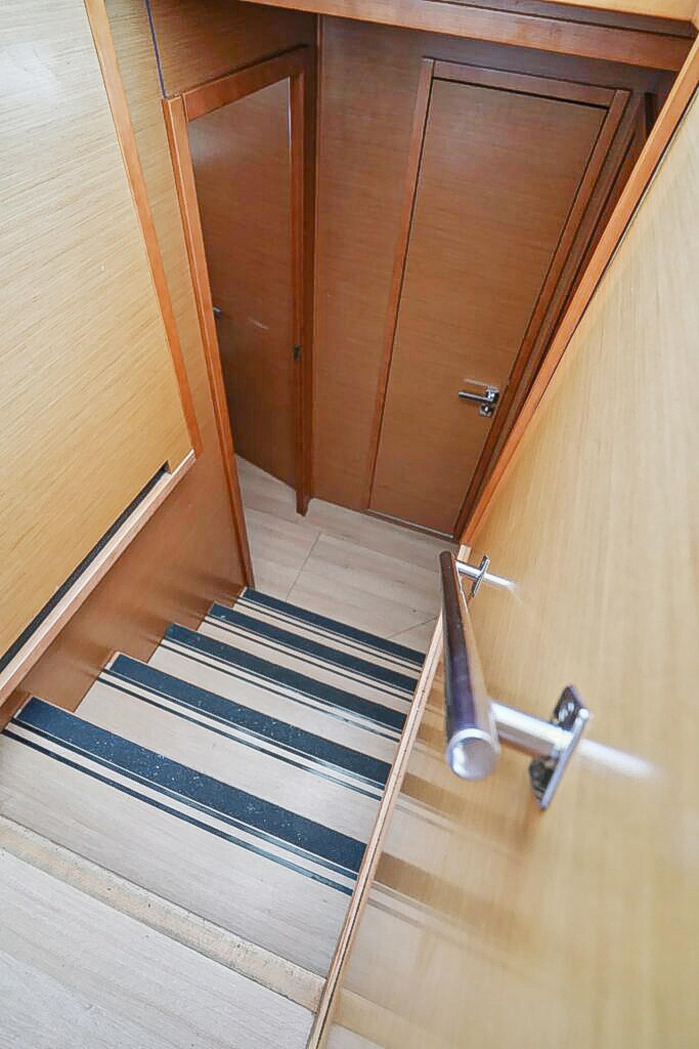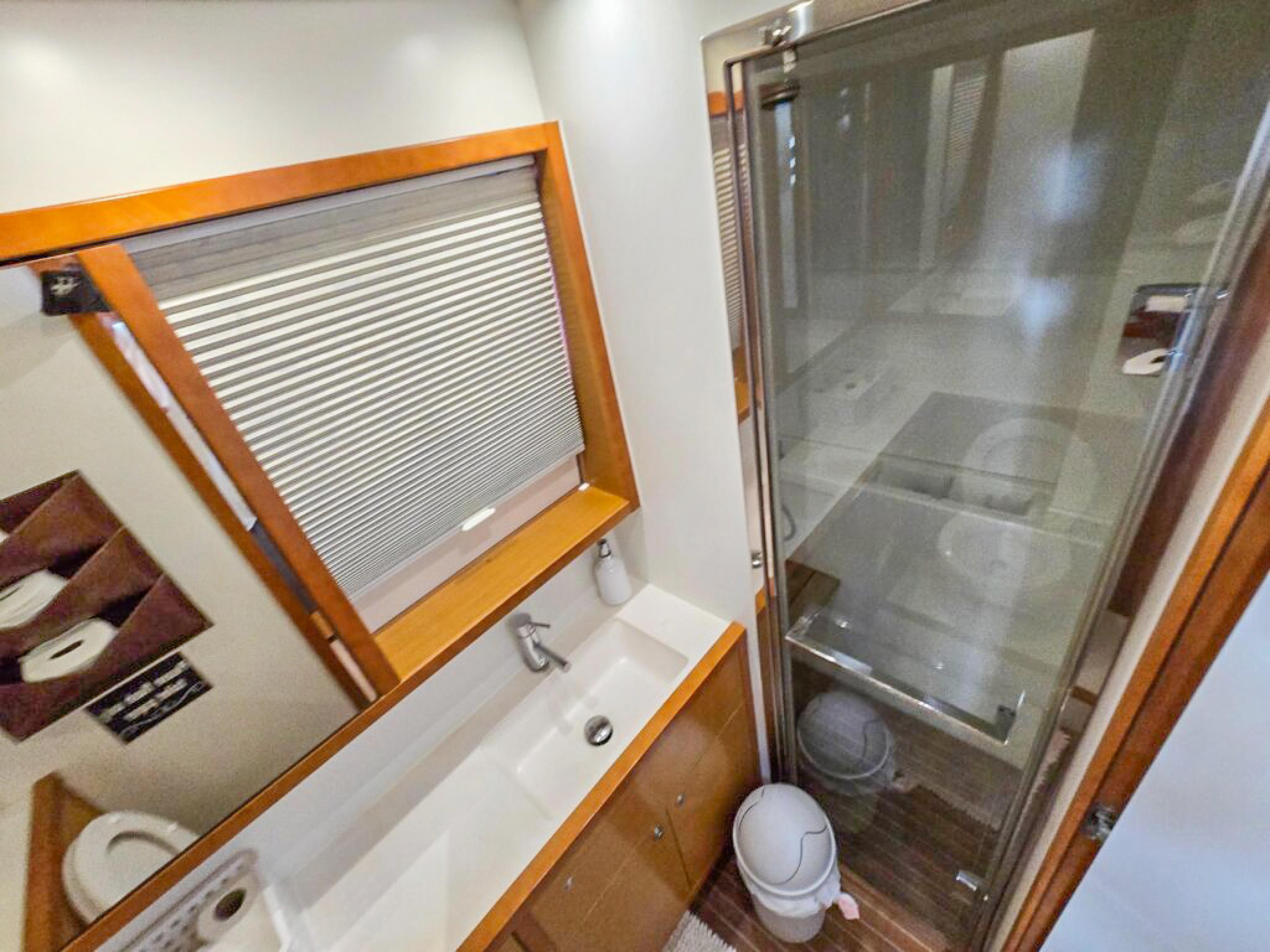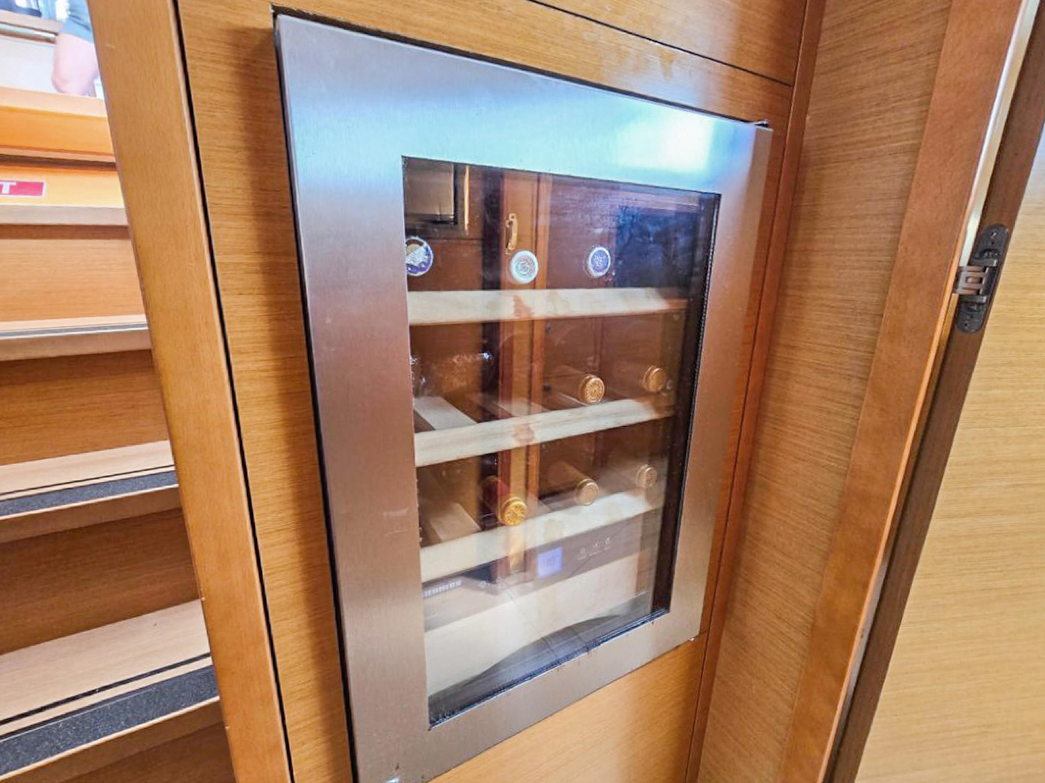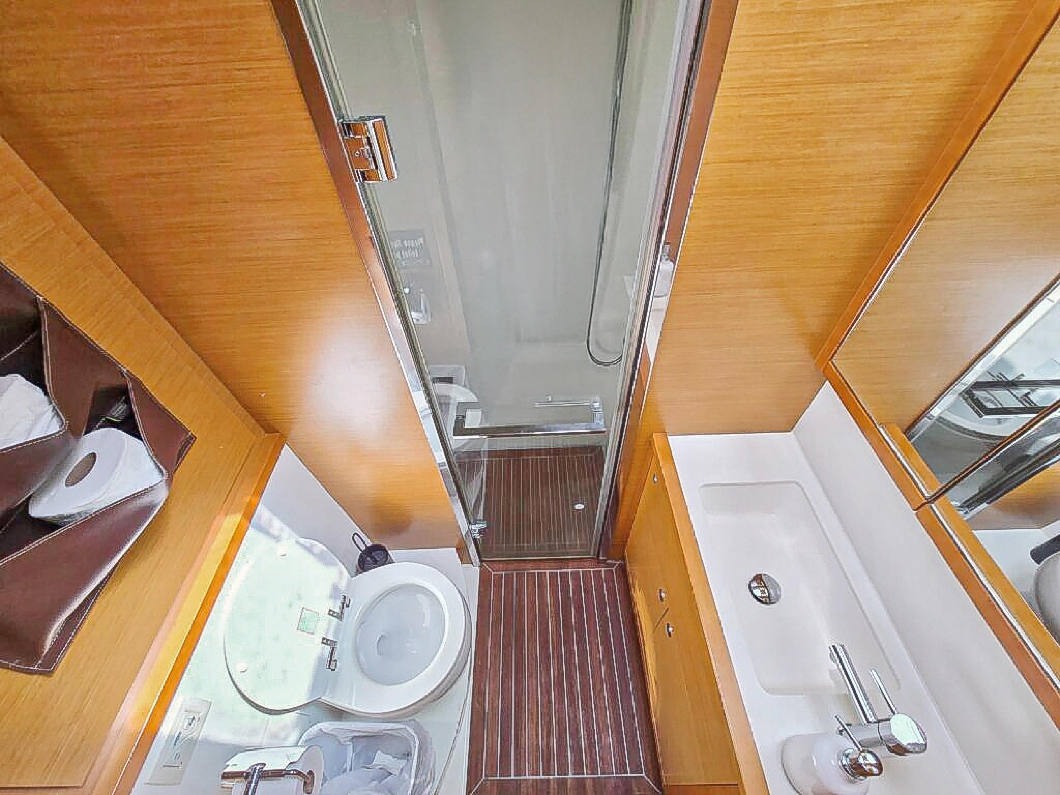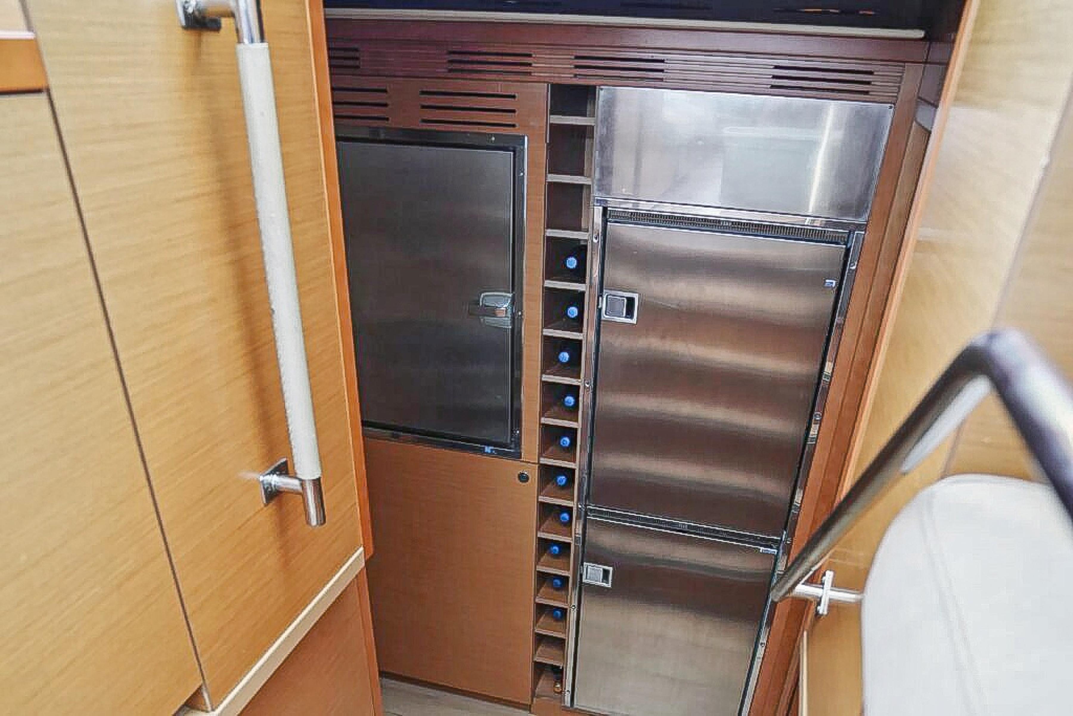 The raised flybridge, forward cockpit lounge, and expansive aft sundeck provide inviting outdoor spaces for entertaining or relaxing at sea. With a full suite of B&G electronics, updated sails, and a powerful Sea Recovery watermaker, shes fully equipped for extended cruising.