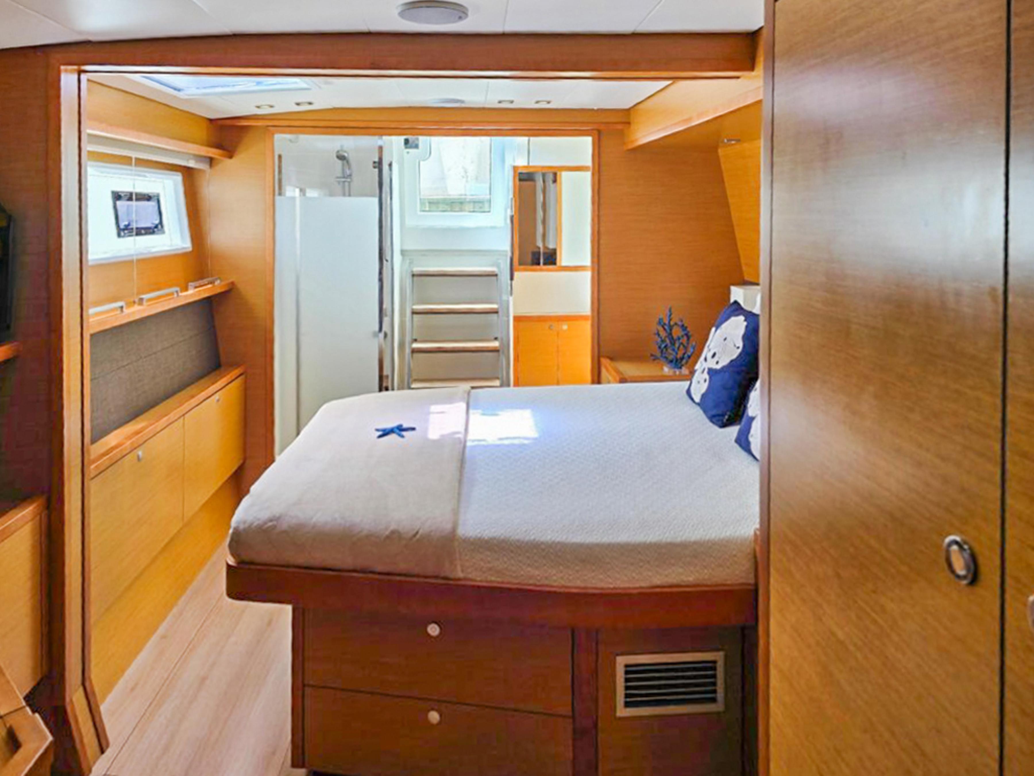 Professionally maintained and operated by a full-time captain, she offers the feel of a private floating oasis. Her spacious layout includes 5 guest cabins, each with its own personality and private head, finished in elegant Alpi wood.