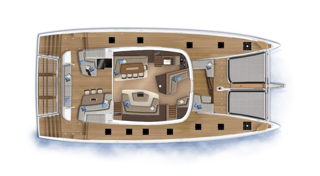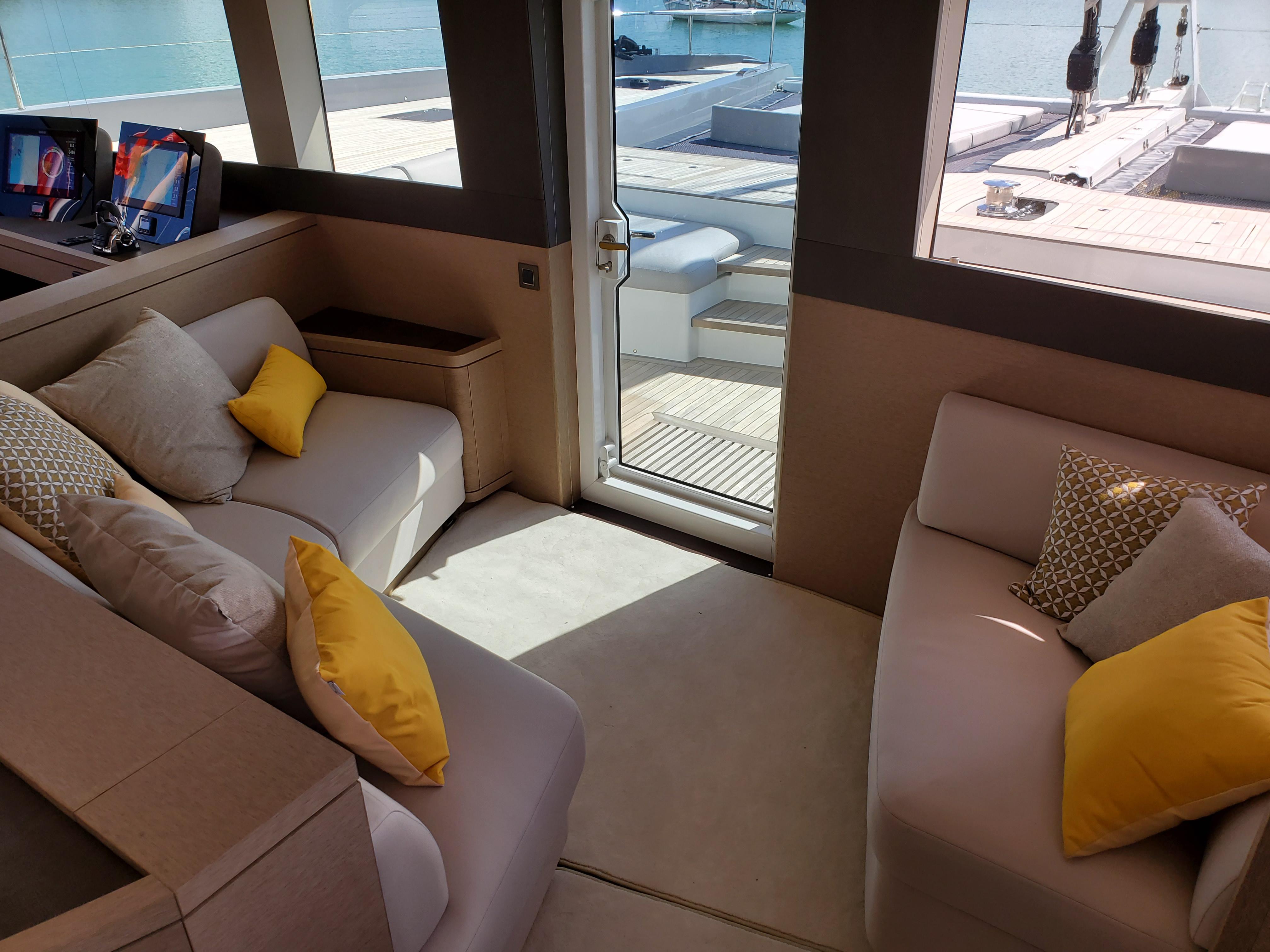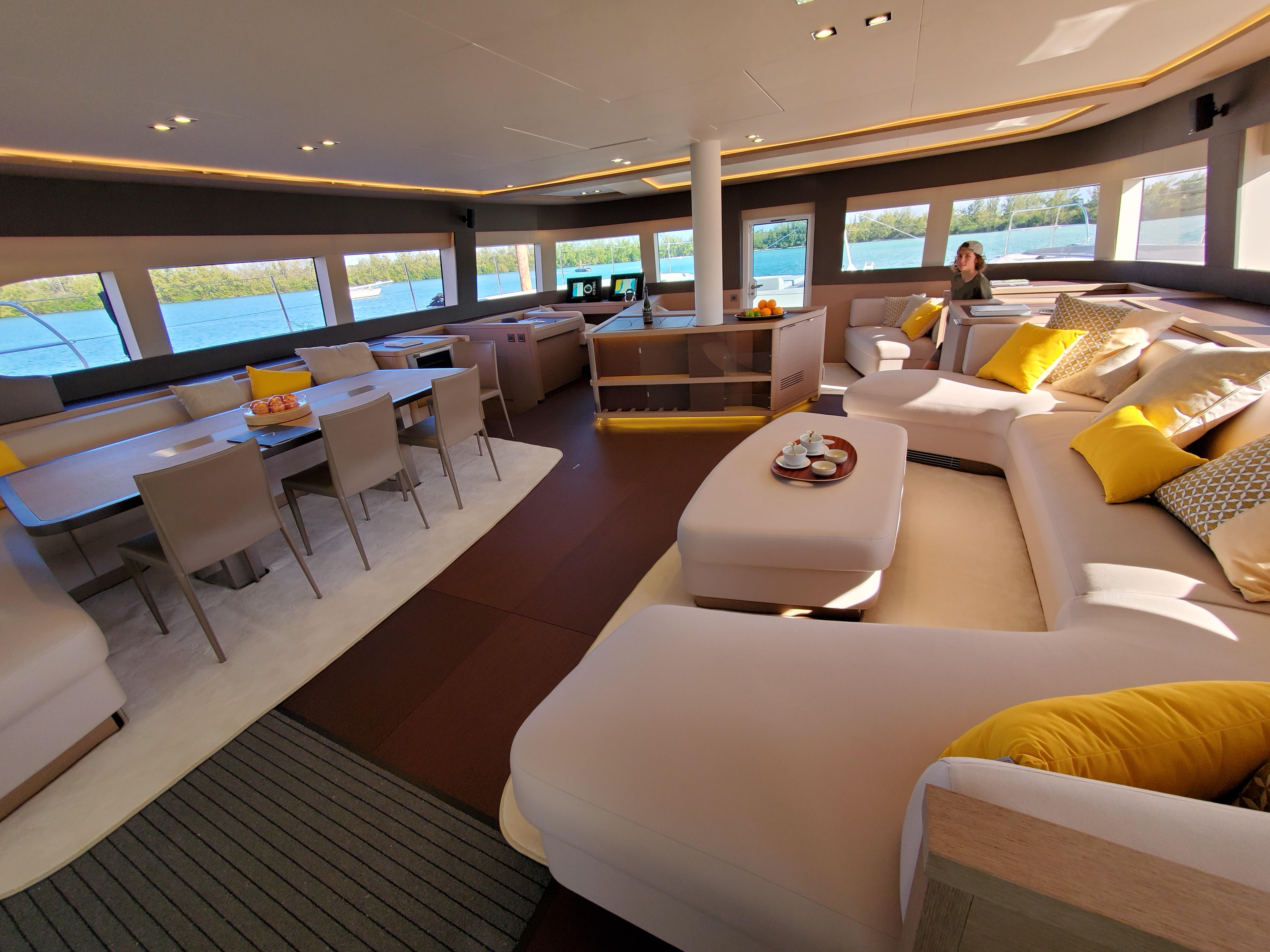 HIFI MEDIA CENTER ATOLL IN THE SALON (Speakers & Subwoofer: 4 +1 Salon, 4 Aft Cockpit, 2 Fwd Cockpit, 2 Fly), CEILING TV 55″ & DLNA NETWORK for cabins, Remote+Touch Screen)