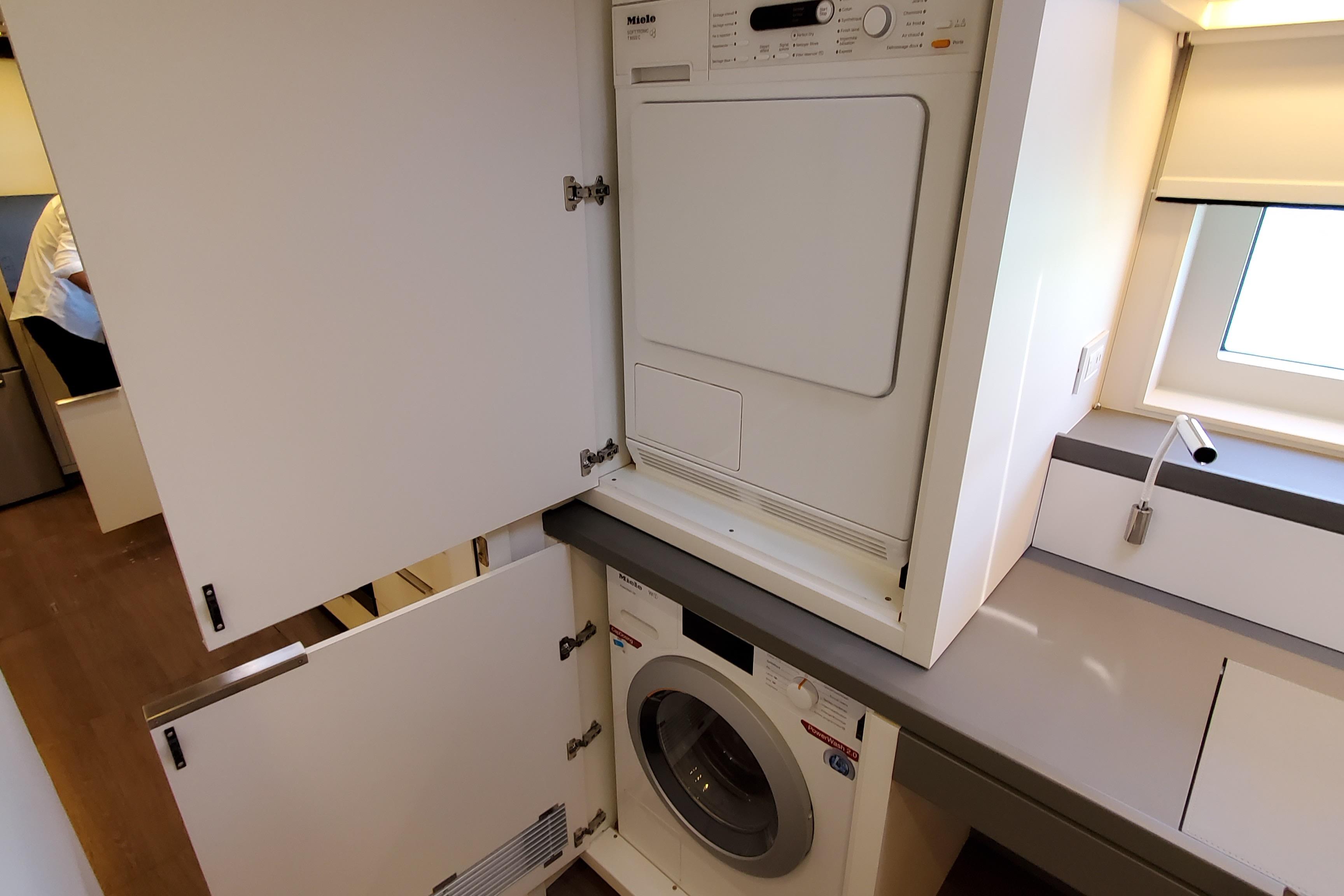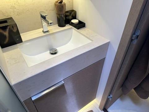 - Corian countertop (Clam Shell) with integrated composite washbasin