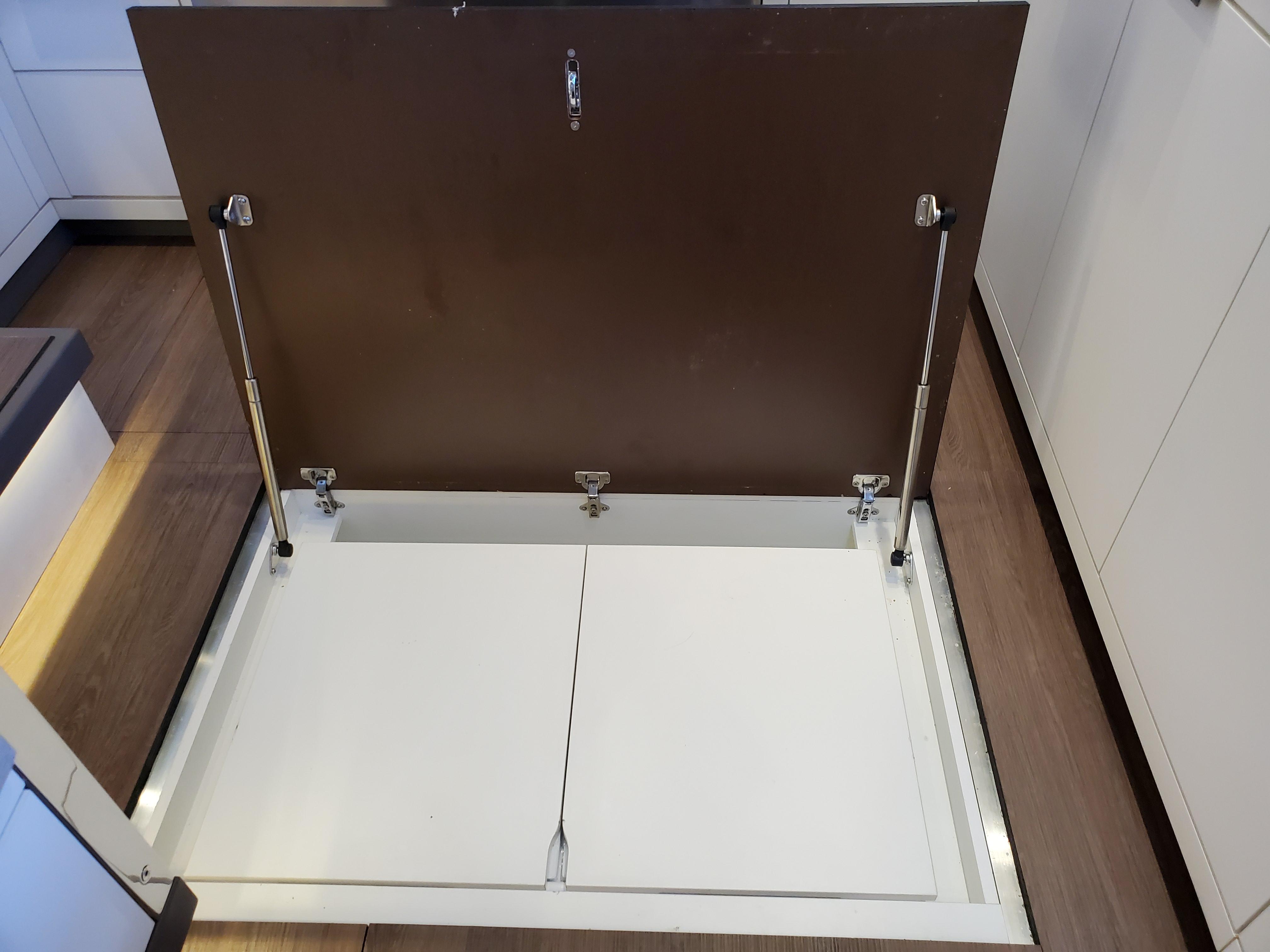 - Unitwithstoragebehindflapanddoublehanginglockerintheuppersectionand2doorswith2shelvesinthelowersection