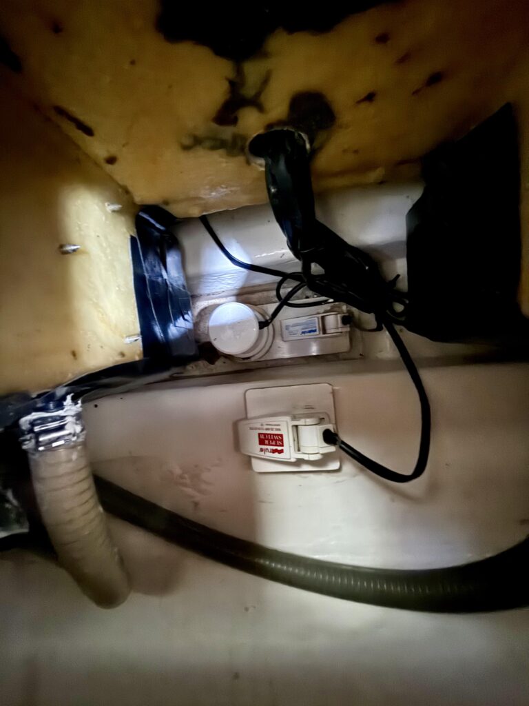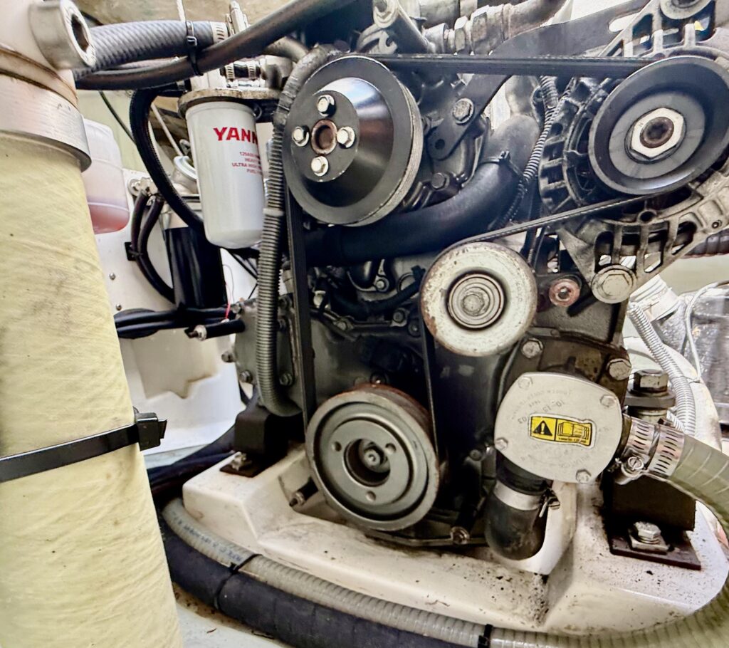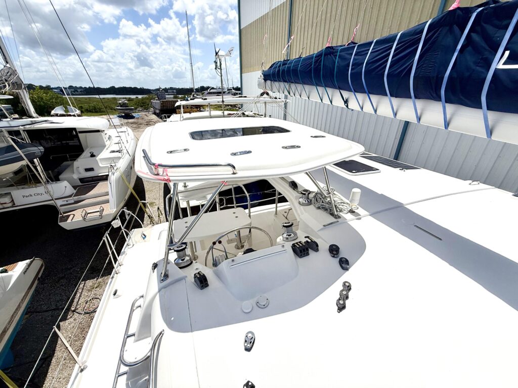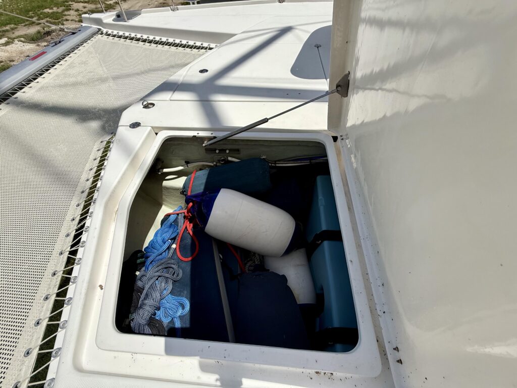 How is the boat currently being stored? – Answer: Exceptionally well on the hard with cushions stored inside, covers over equipment, dehumidifier in the salon, fans throughout, and sealed thru hulls and sinks