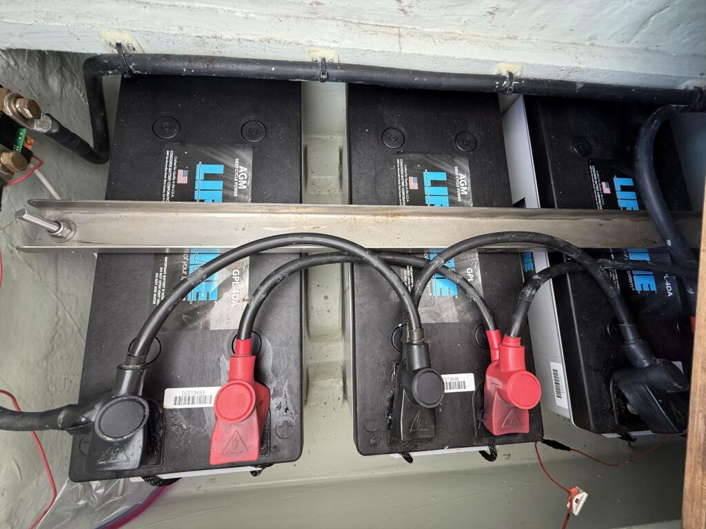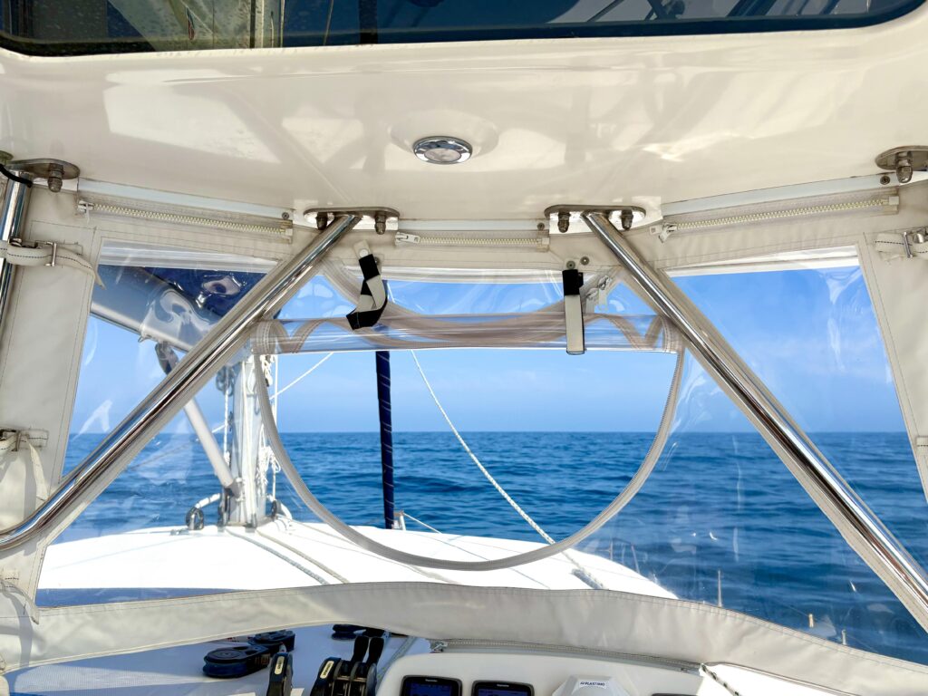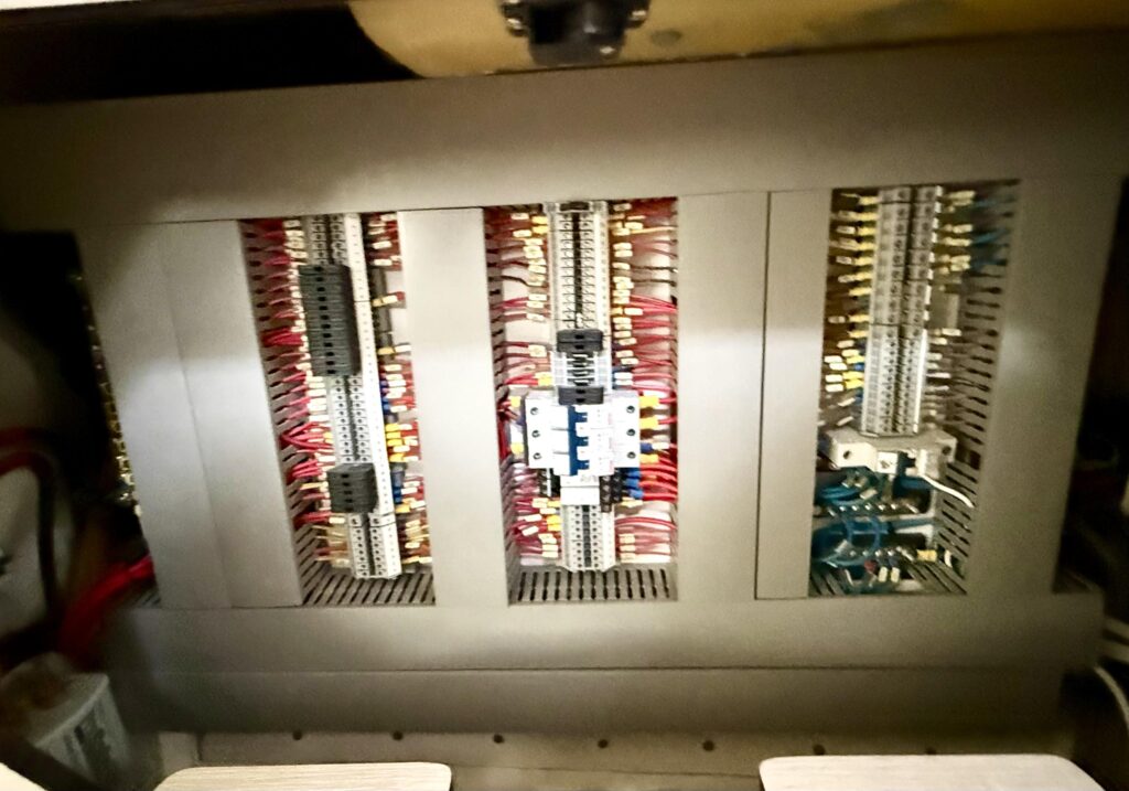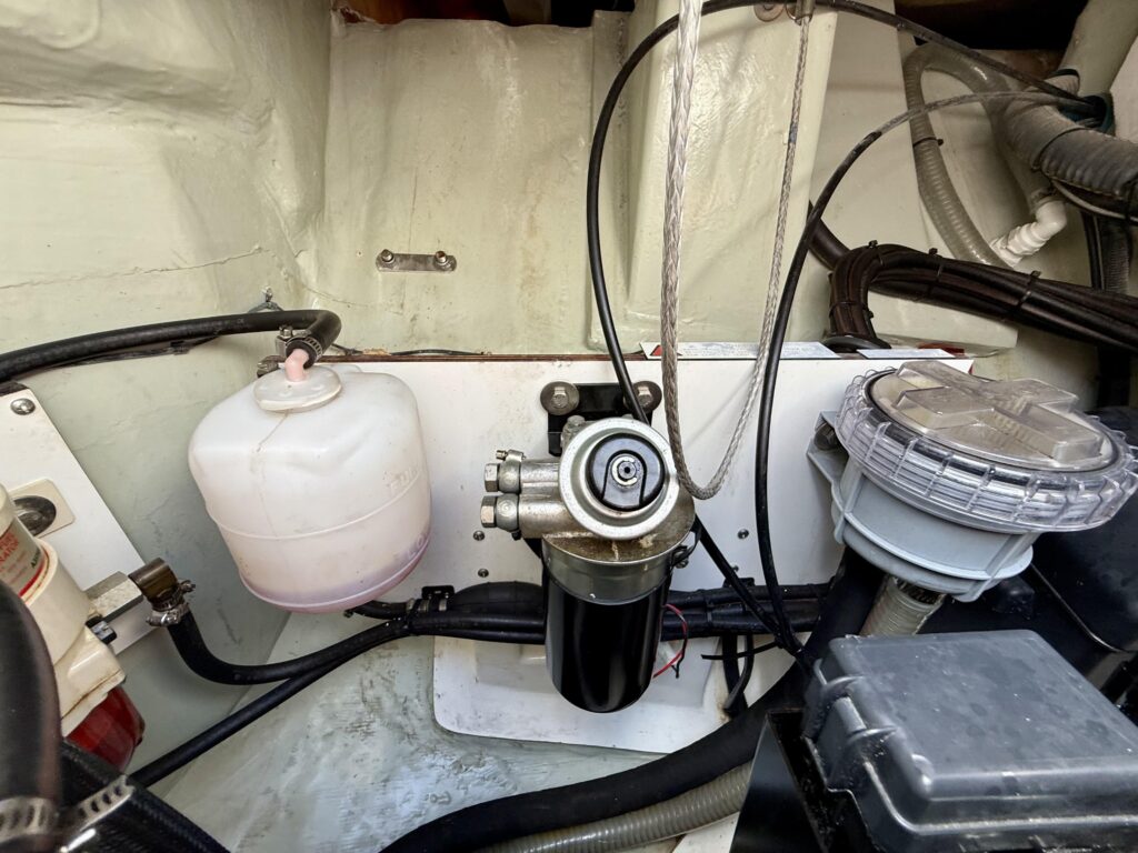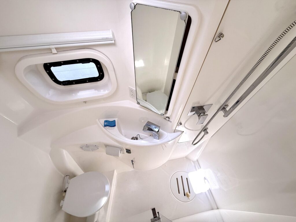 How is the boat currently being stored? – Answer: Exceptionally well on the hard with cushions stored inside, covers over equipment, dehumidifier in the salon, fans throughout, and sealed thru hulls and sinks