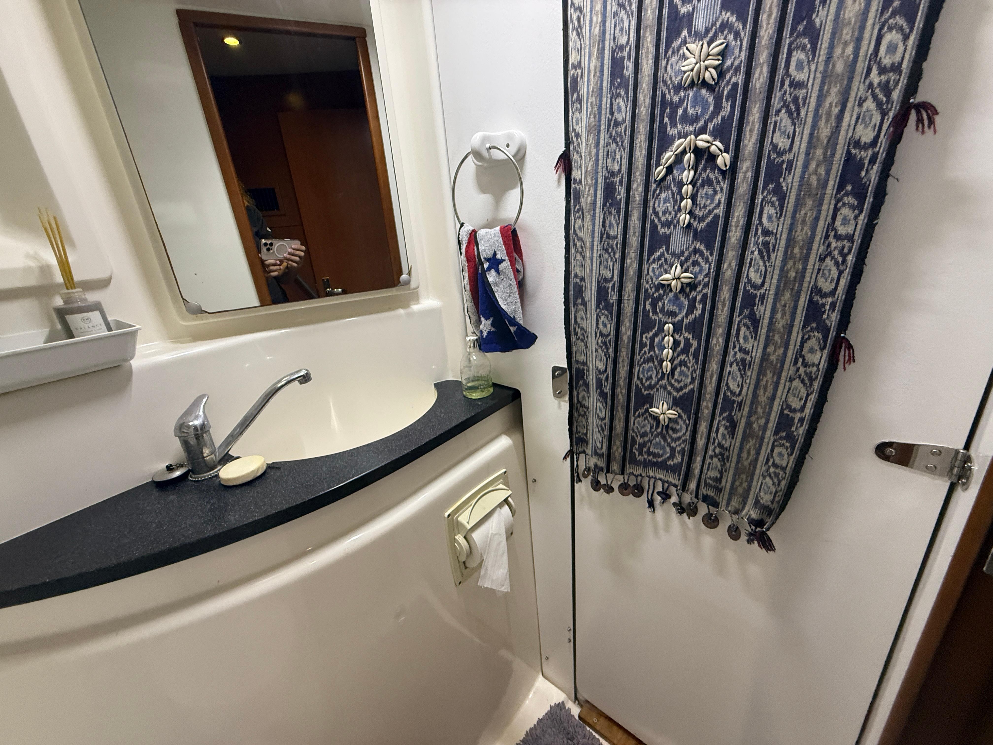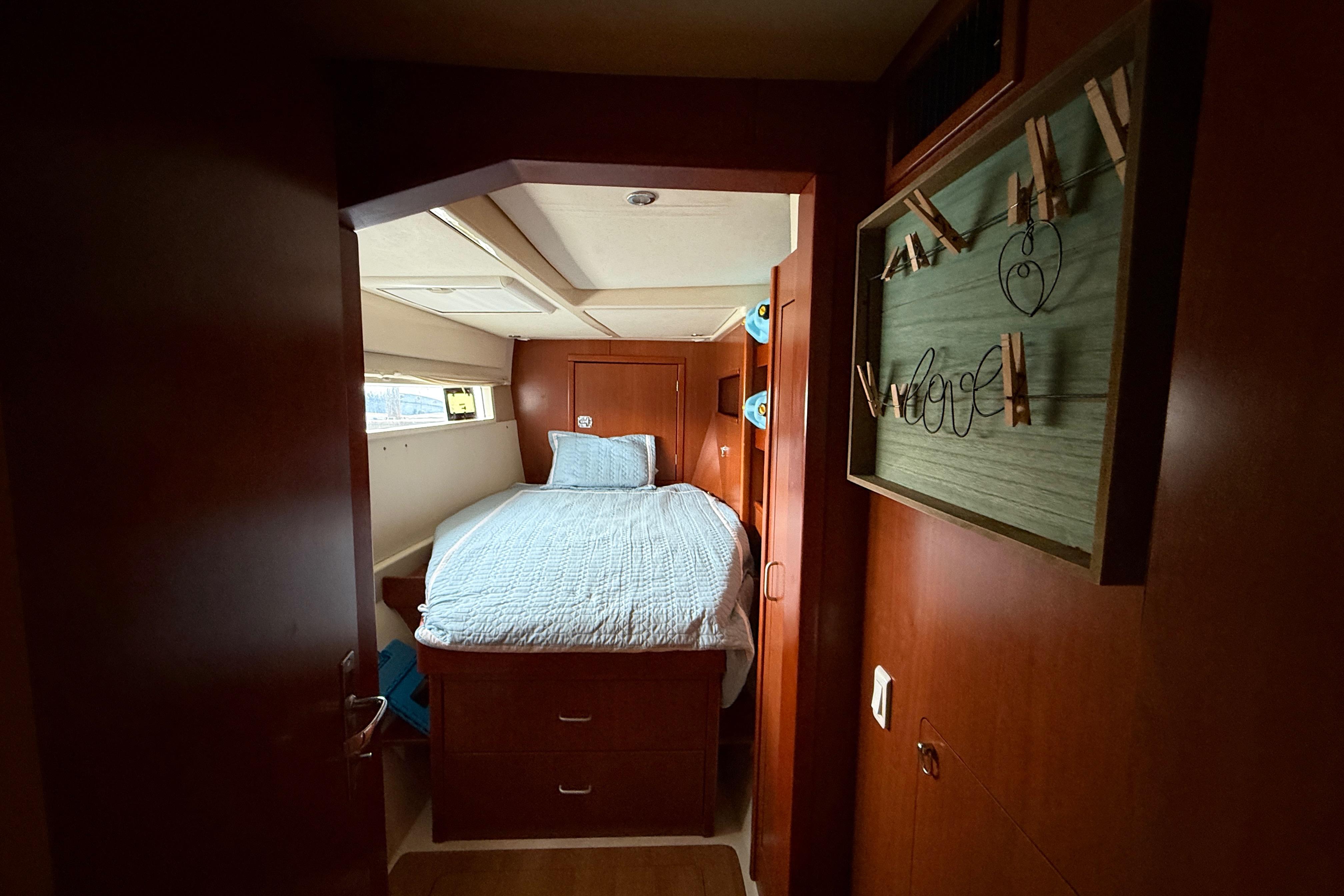 42 TV to port aft cabin with a bracket