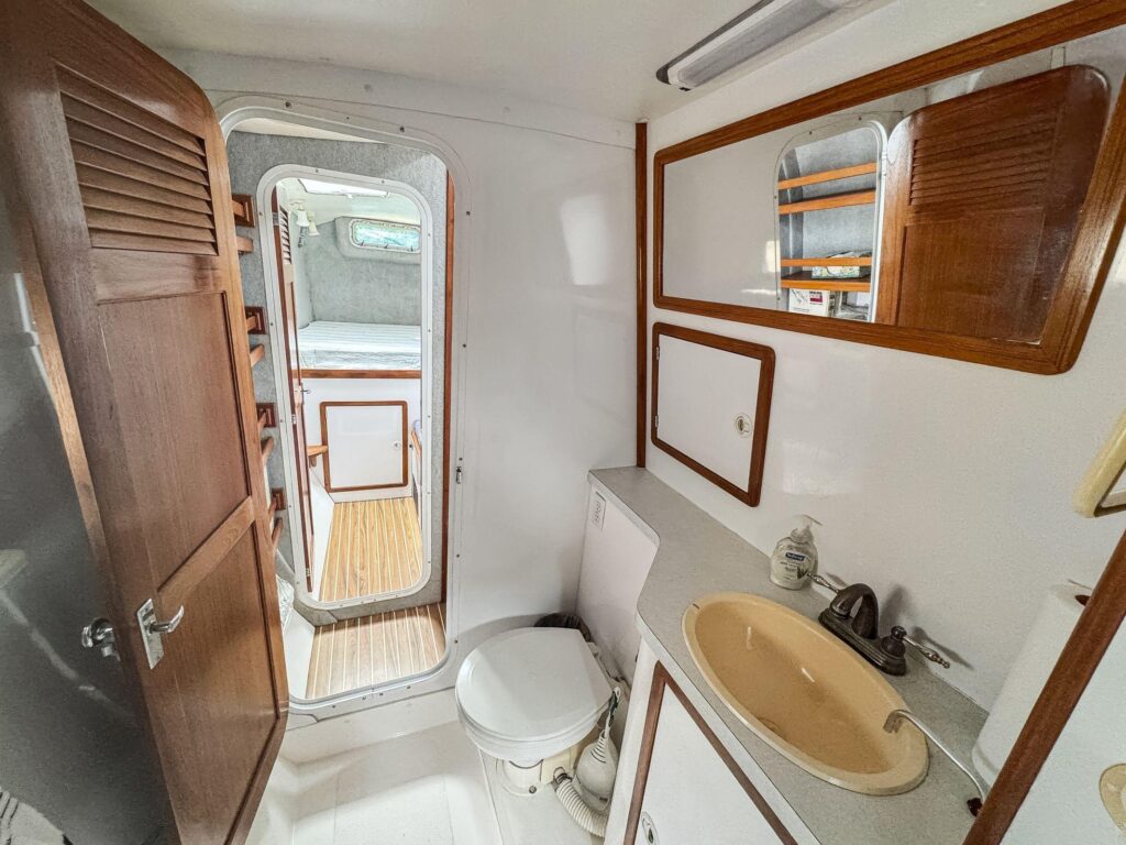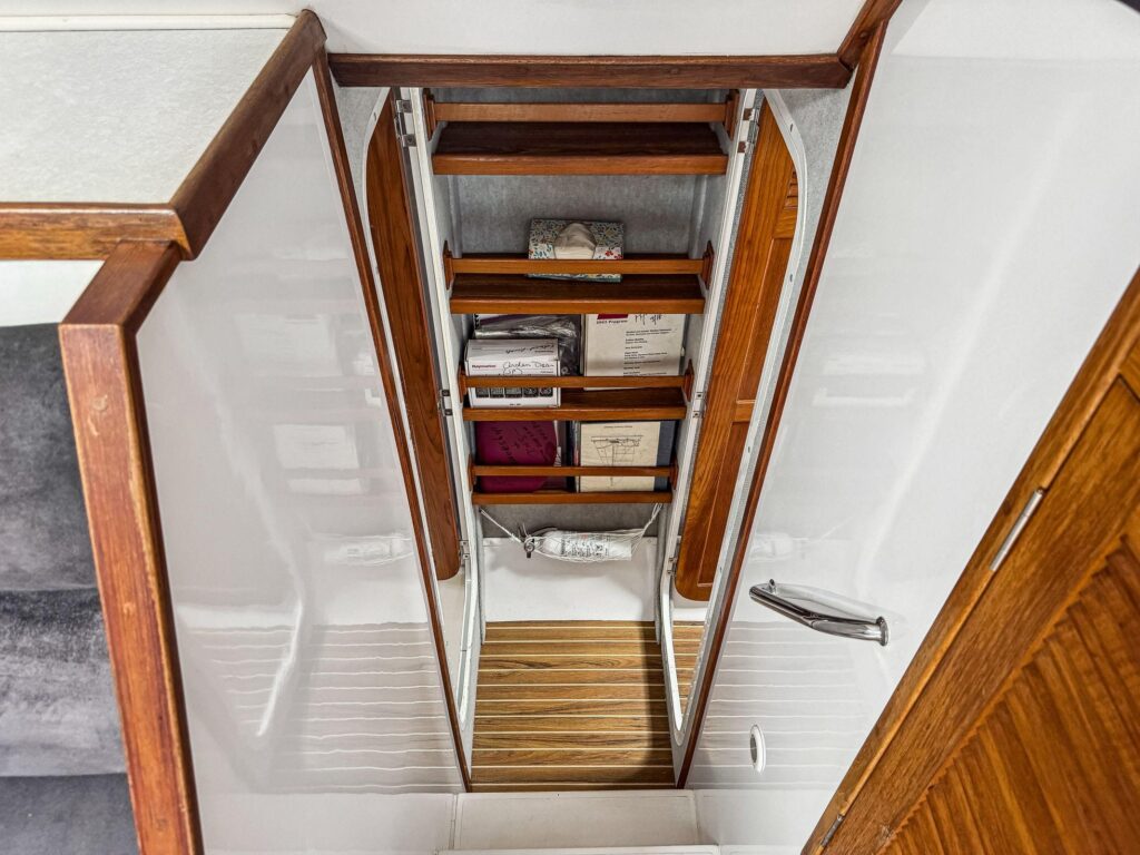 Owner’s Master Stateroom is aft. A pantry closet is in companionway to private head forward.