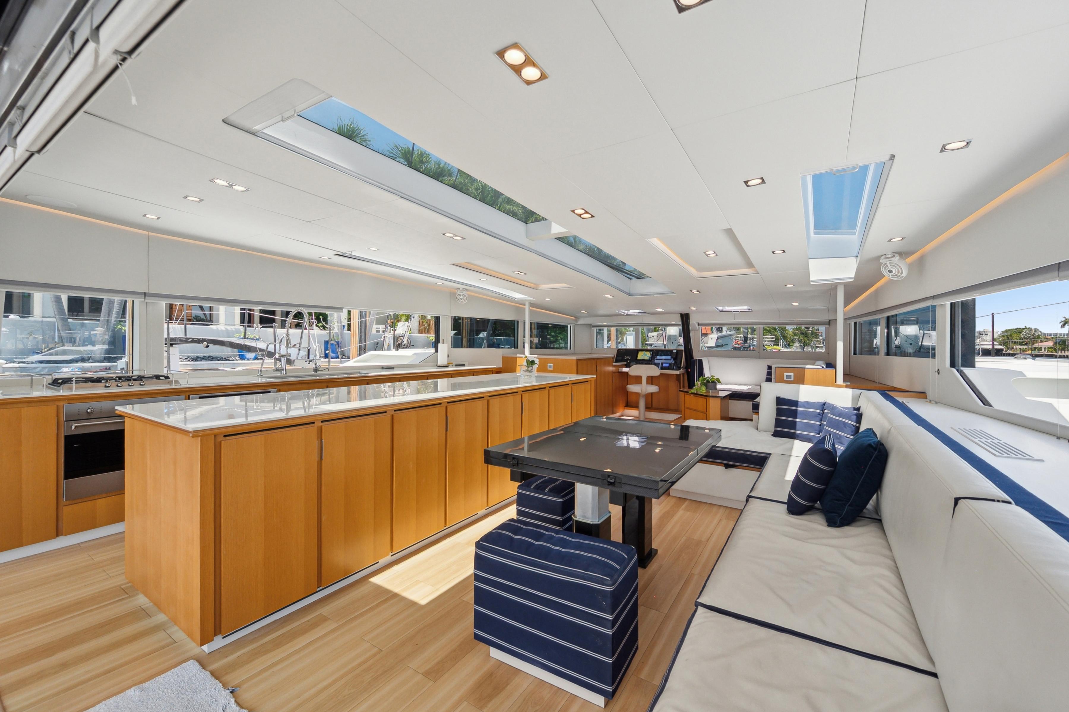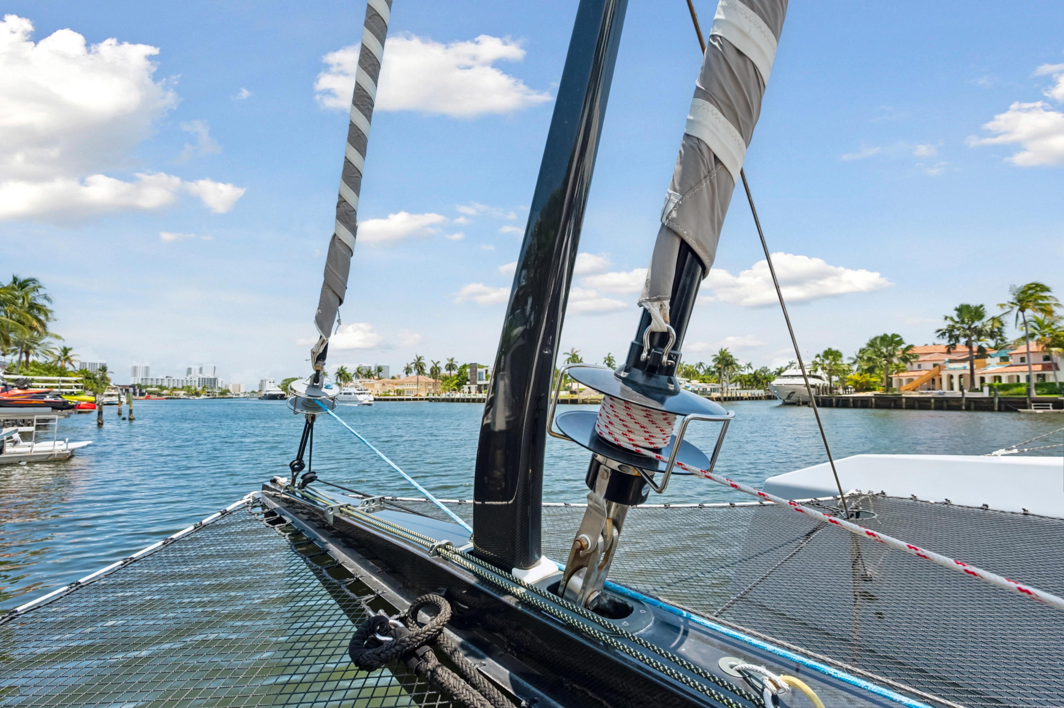 This exceptional cat was built by the world renown McConaghy yard and launched in 2020. It is built in carbon/e-glass, epoxy foam sandwich to achieve minimum weight and maximum stiffness. It sports a Marstrom carbon mast and boom, textile standing rigging and carbon centerboards. A full set of North 3Di sails complete a superb, high-performance sailing package. NOBLE HOUSE is able to sail at windspeed or better in most conditions. This is effortless sailing managed by two crew. Perhaps the ultimate luxury on a yacht of superlatives.