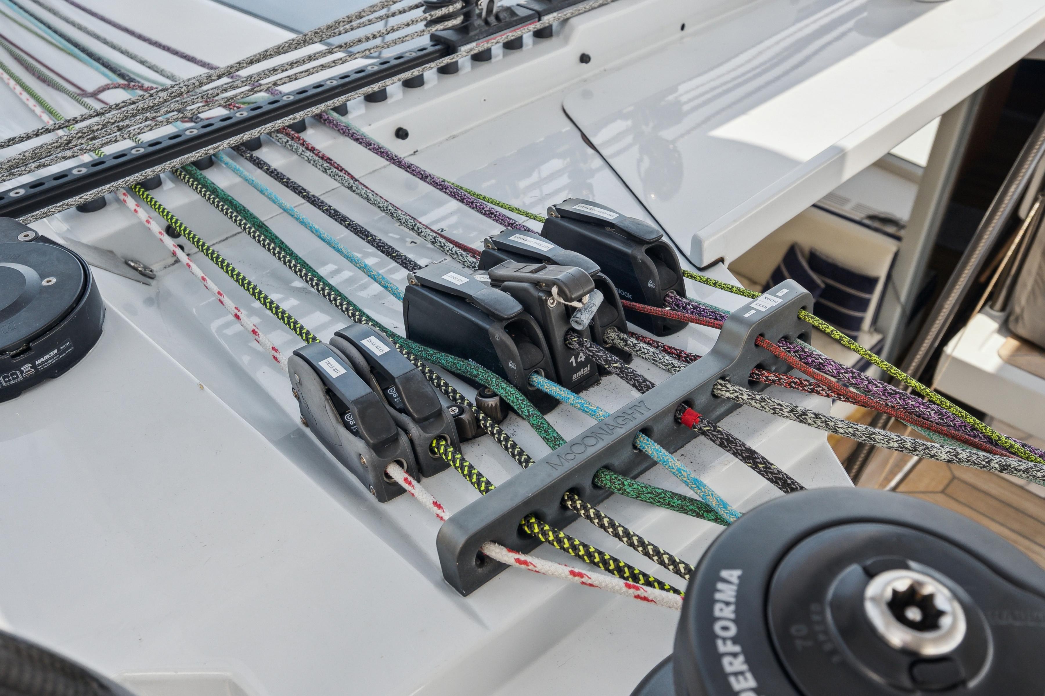 Powered by dual Yanmar 4JH80 inboard engines, each delivering 80 hp to Gori folding props, the MC60 promises reliable and efficient cruising when the breeze is absent. With 800 hours of use, these engines are well-maintained and ready for new adventures.