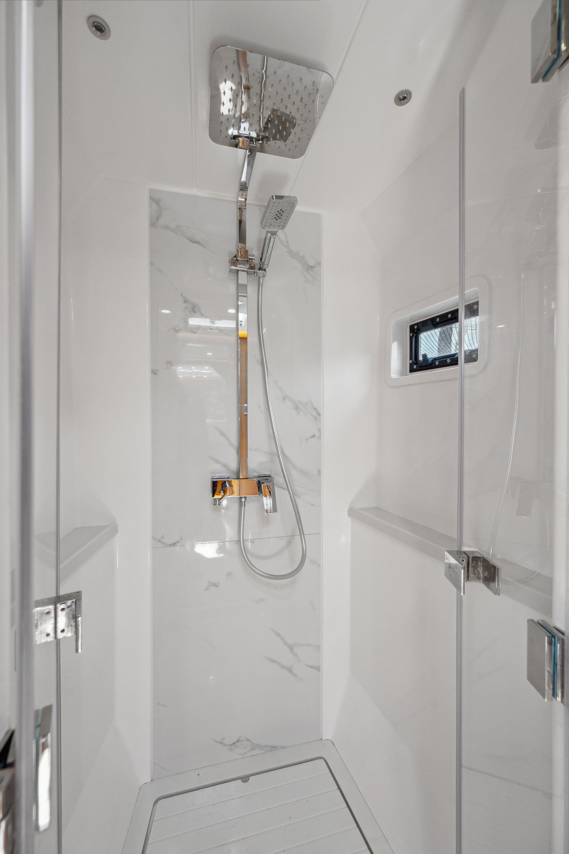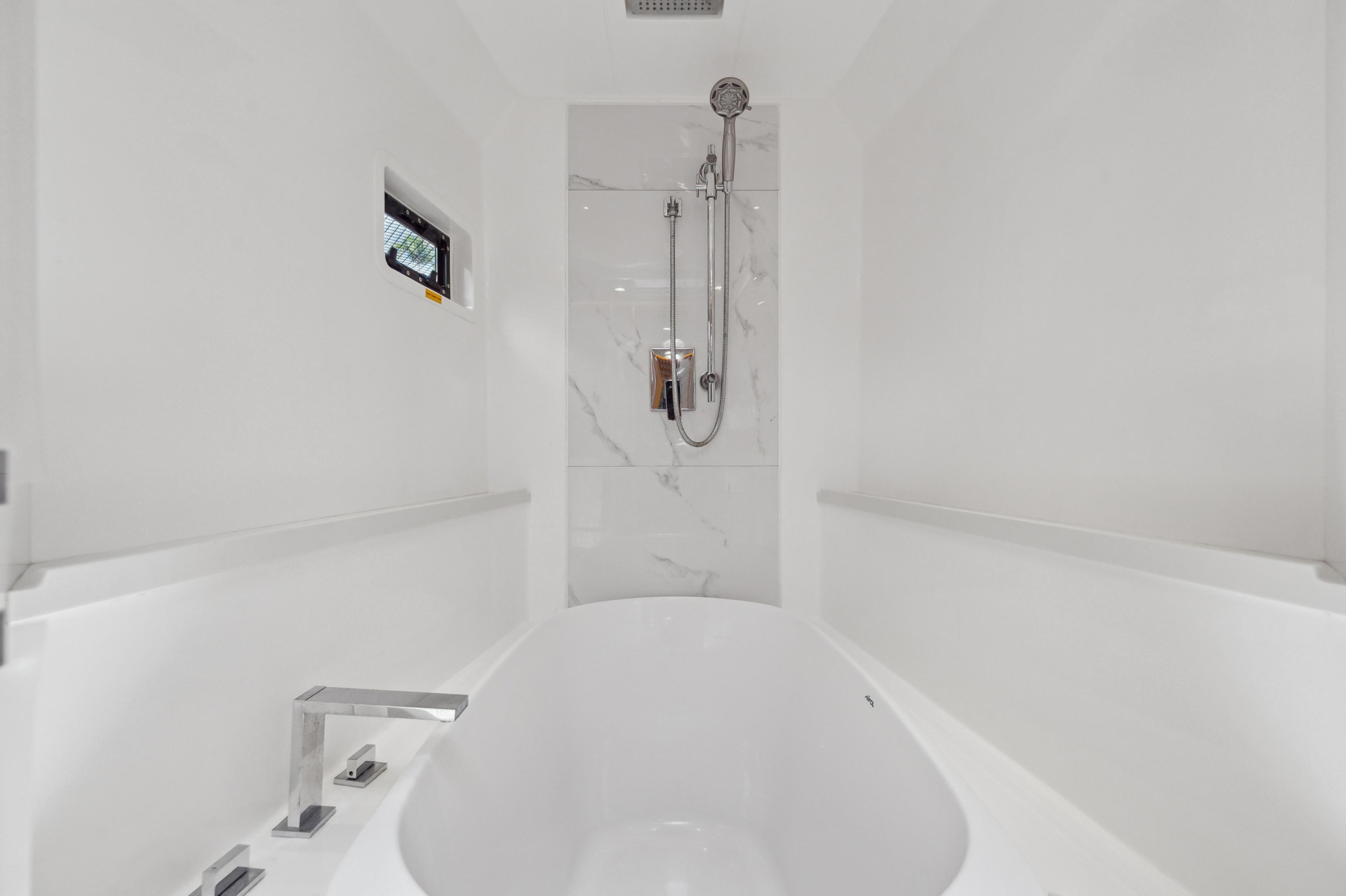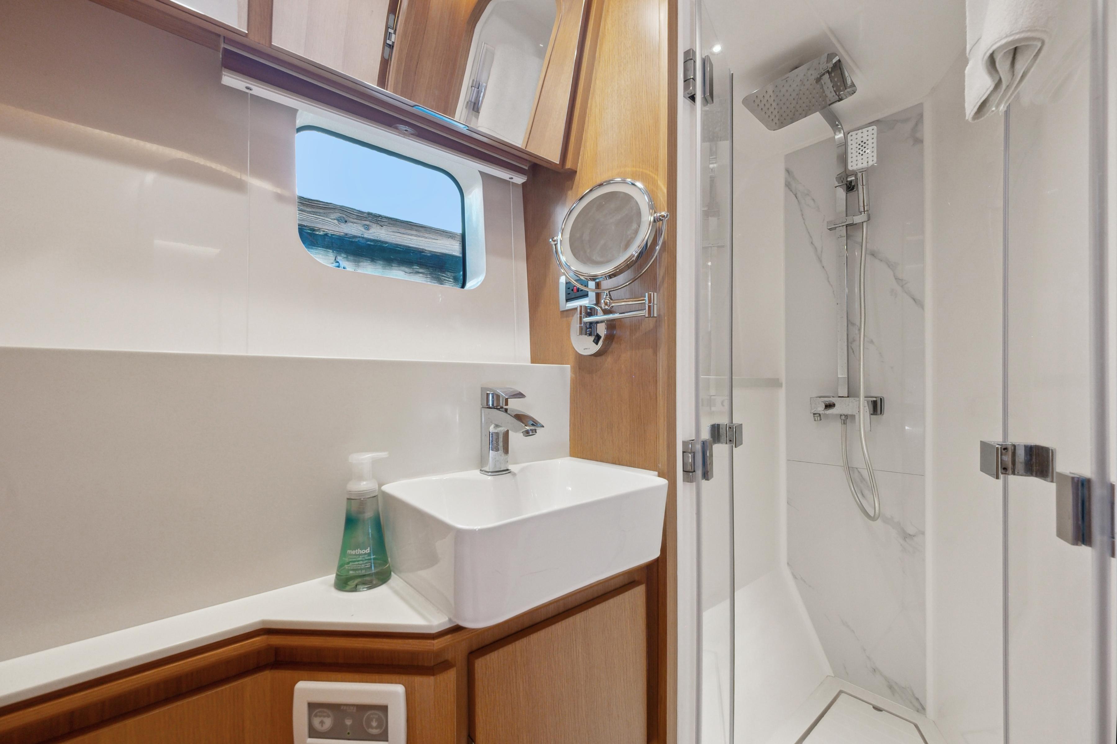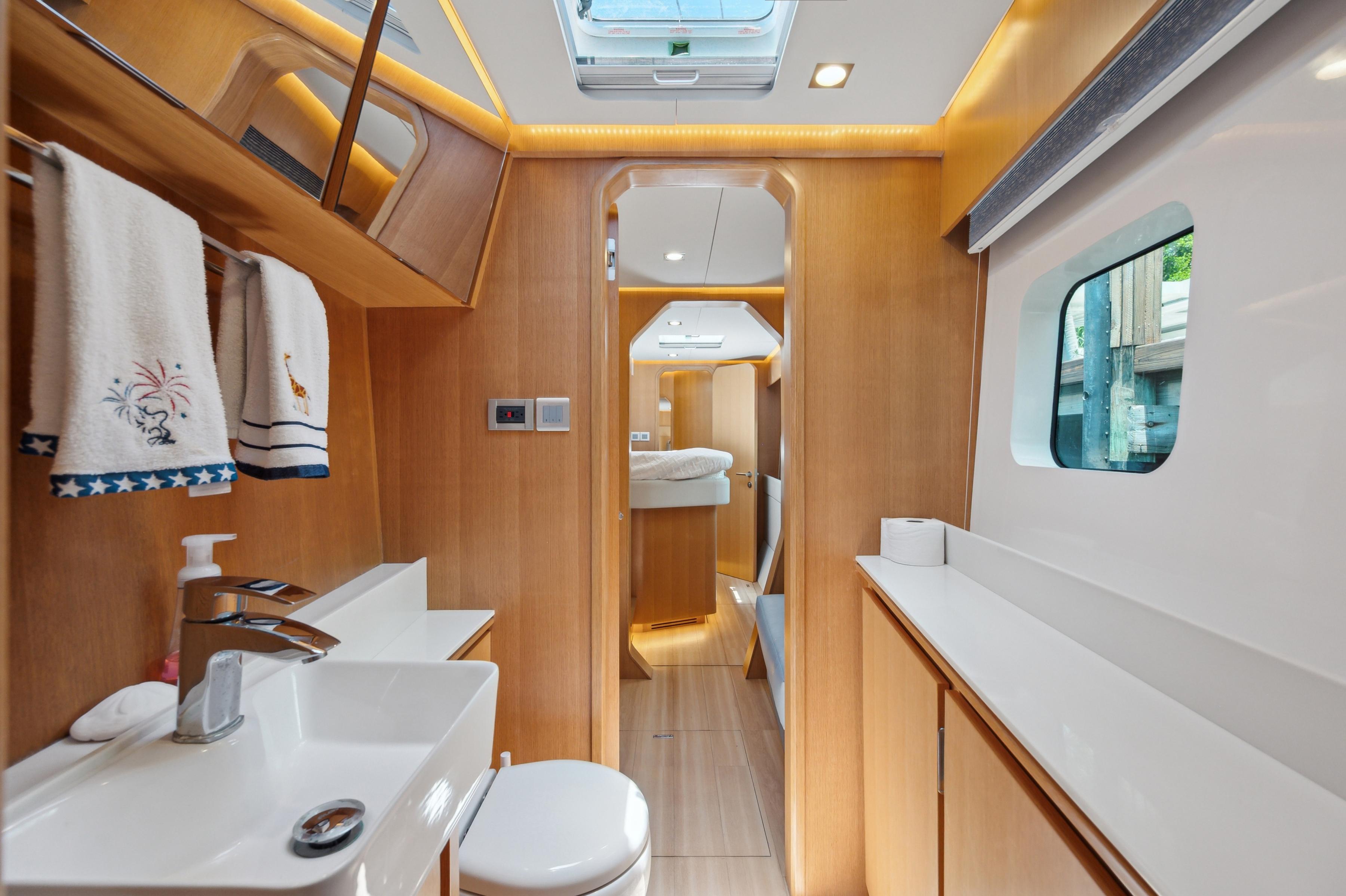 Accommodations include three spacious cabins and three heads, providing ample room for relaxation and privacy. The owner hull to starboard with en-suite shower, bidet and bathtub! Two guest cabins with en-suite are to port.