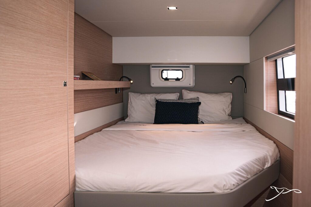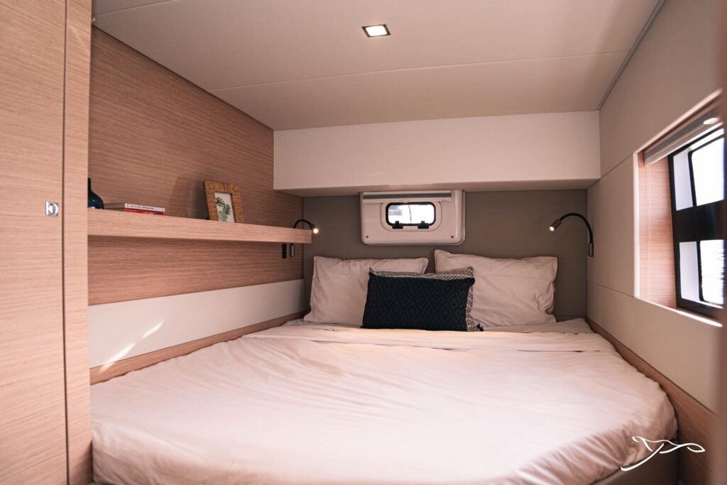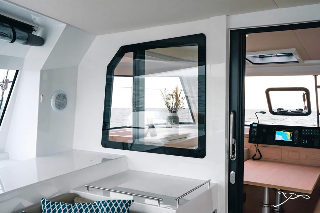 Like the 44 Open, this catamaran has an open living space with the deck, the cockpit and the saloon all being on the same level. A cozy and beautiful atmosphere full of conviviality. This is where the concept of the "Open" lies. Beautiful volumes, natural light and comfort are the main characteristics of this outstanding catamaran which can accommodate up to 8 people. The 40 Open is the perfect illustration of the French expertise in catamarans.