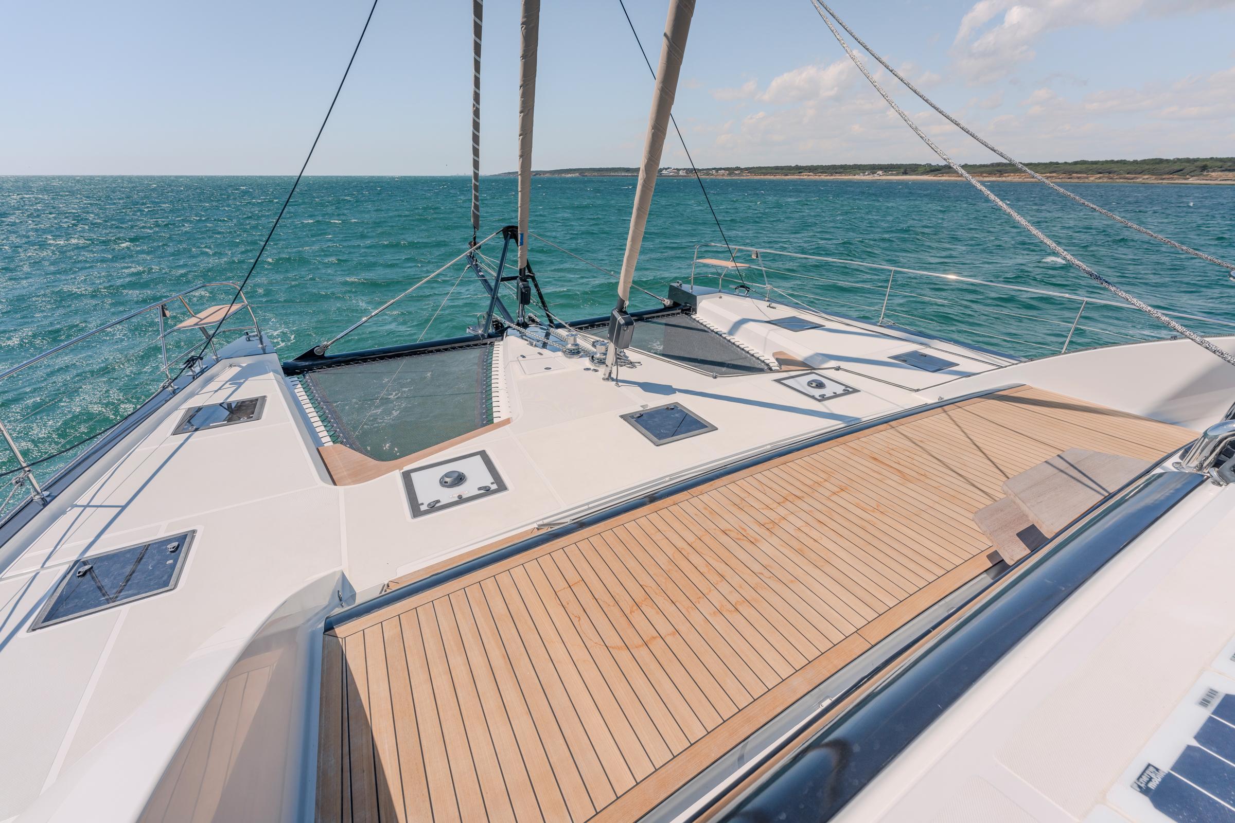 The foredeck has been redesigned to be completely flush, while the trampoline nets have been optimized for safe working, even in rough seas. The wide side decks are also fitted with flush hatches and, together with the high guard rail, ensure a high level of safety at sea.
