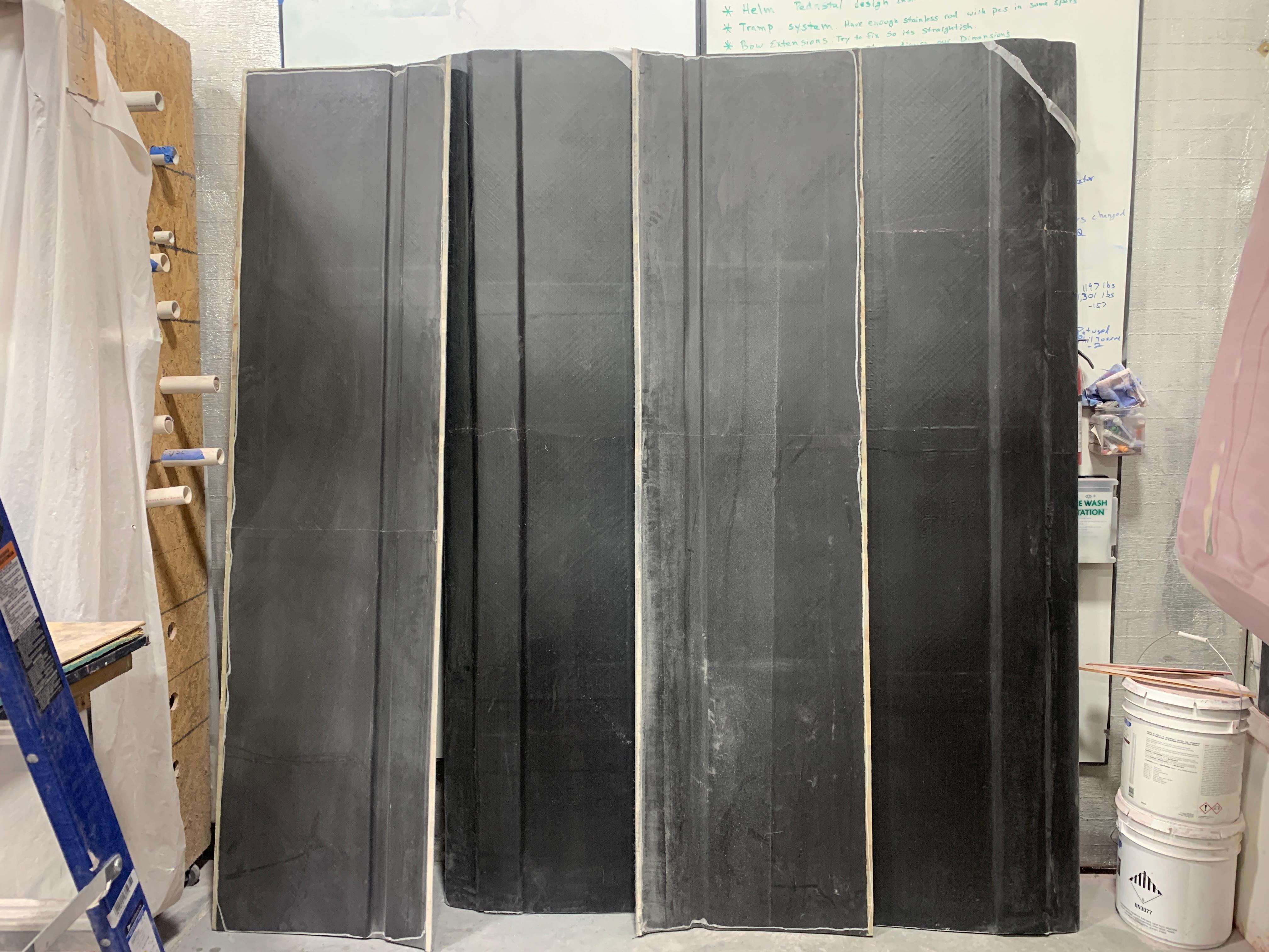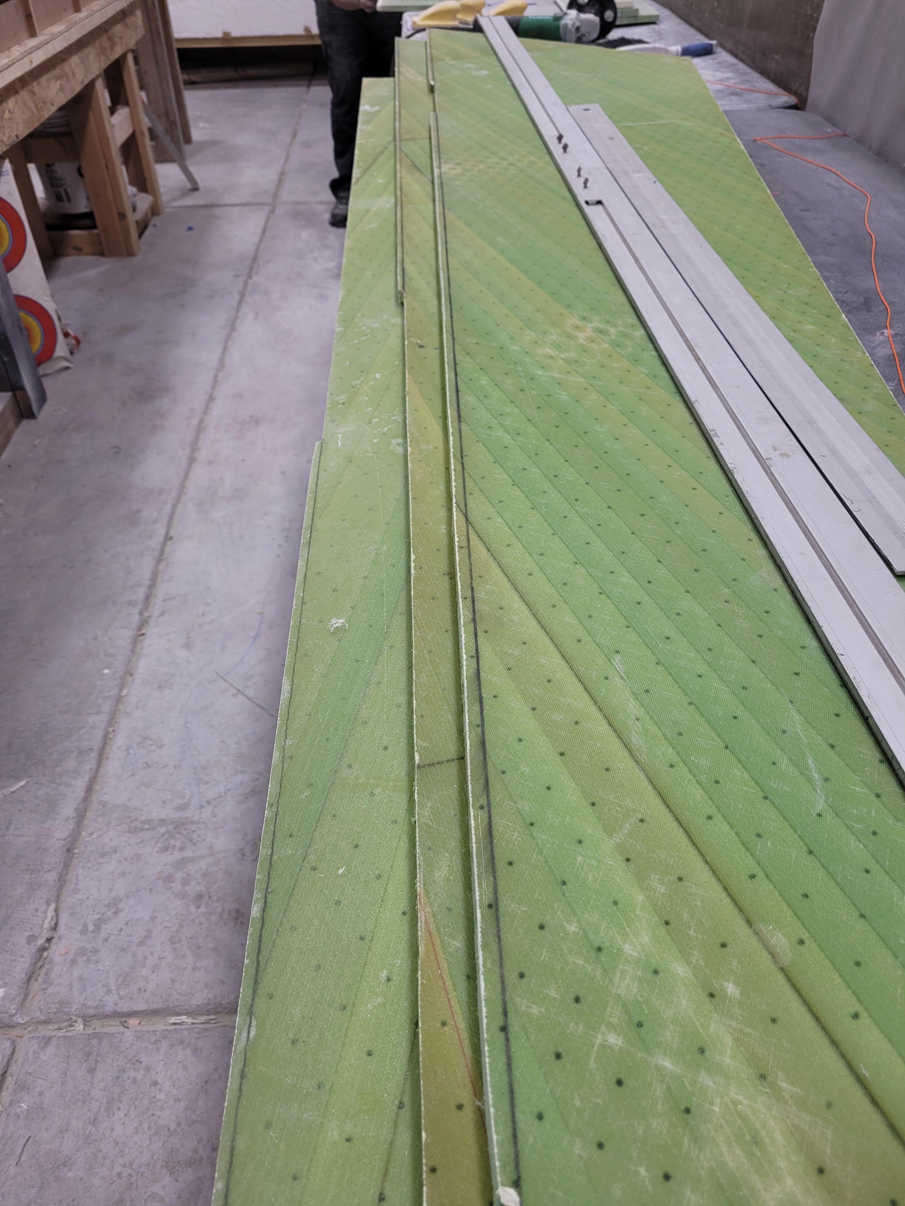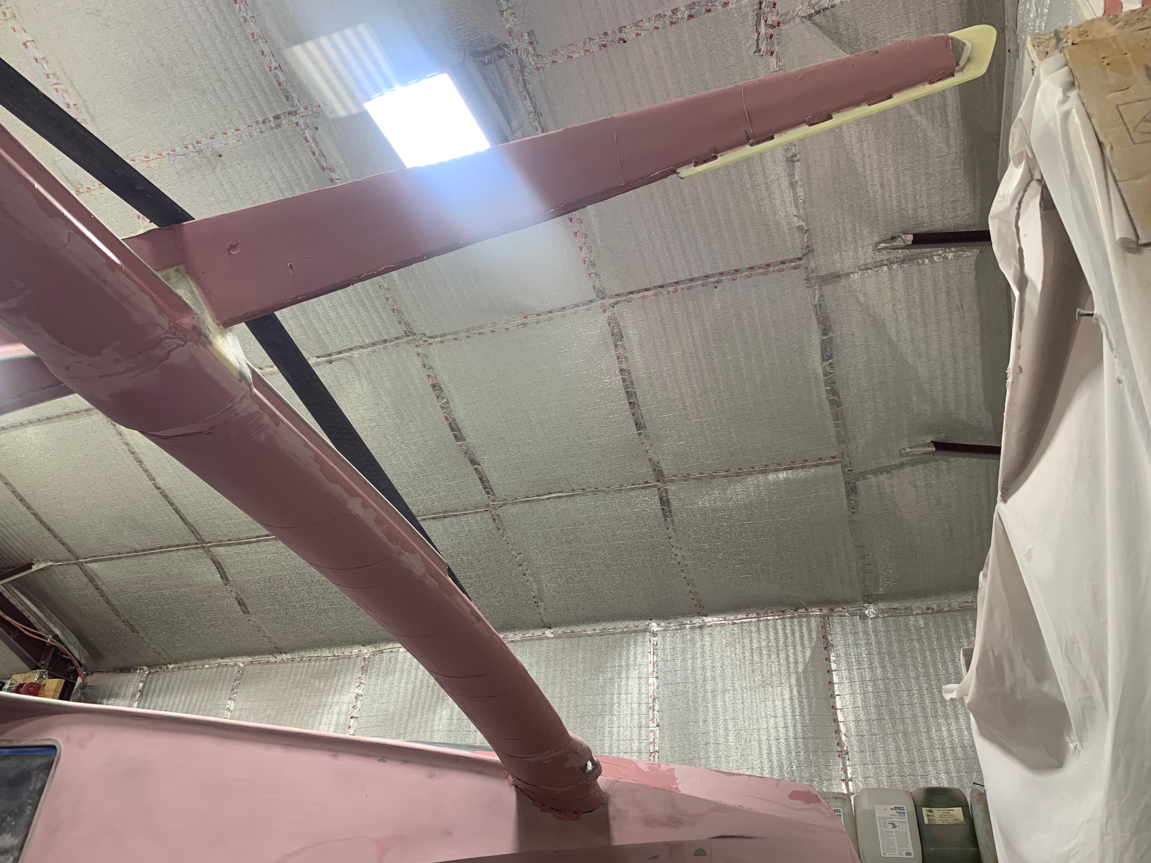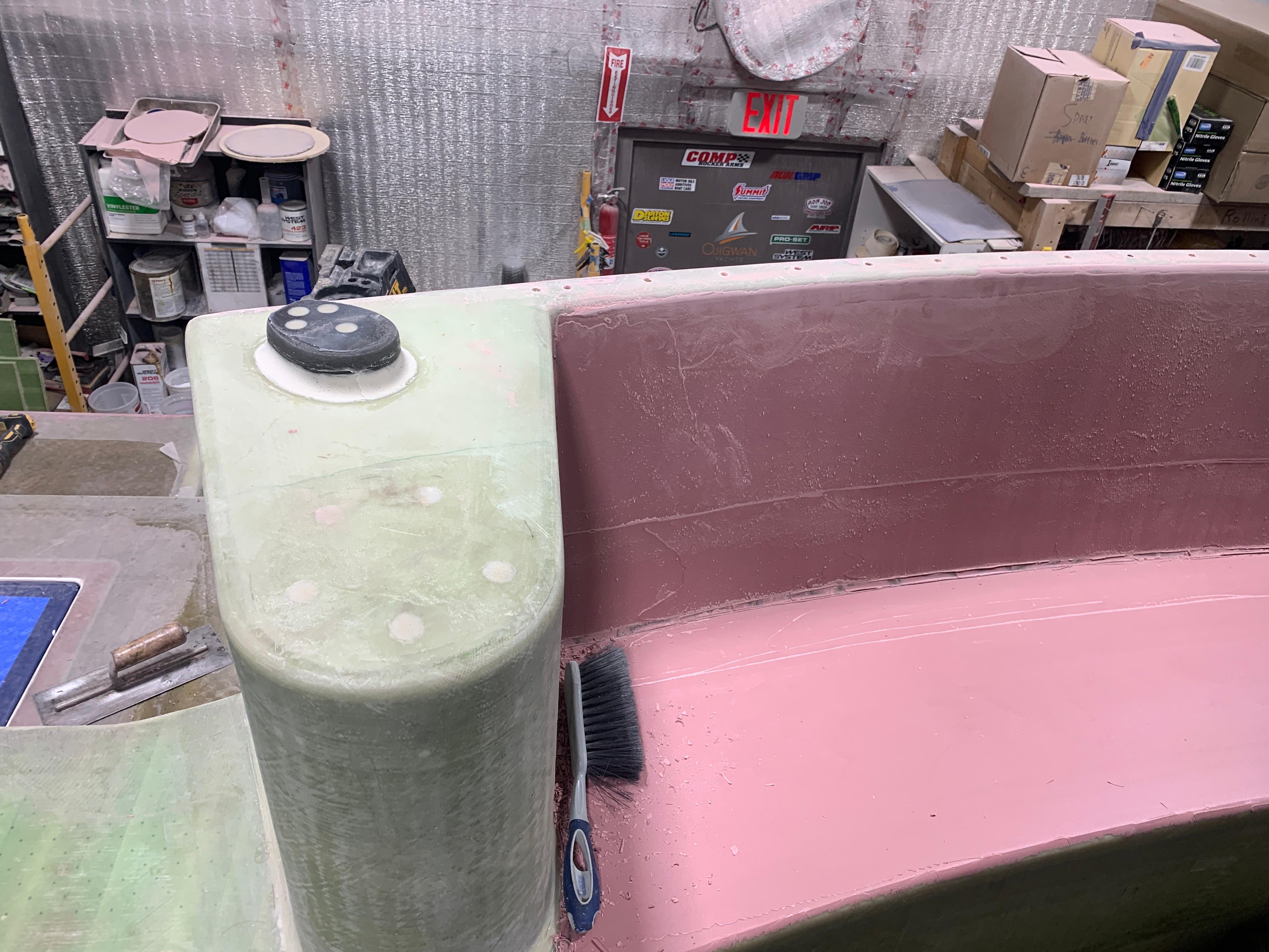 Joined with cabosil/cotton flock high density fillers and epoxy/fiberglass tape lines Faired with epoxy 2 part fairing compound