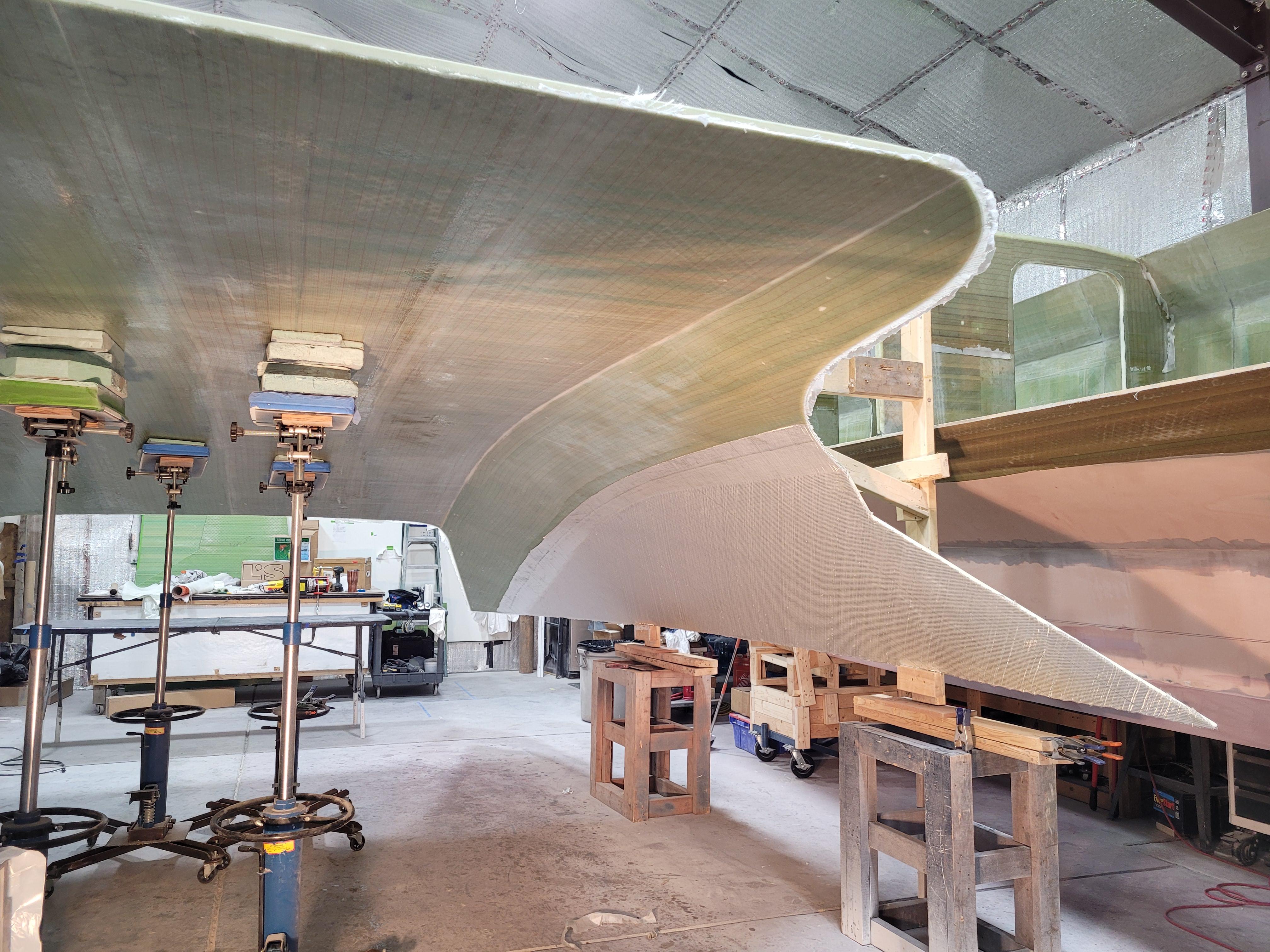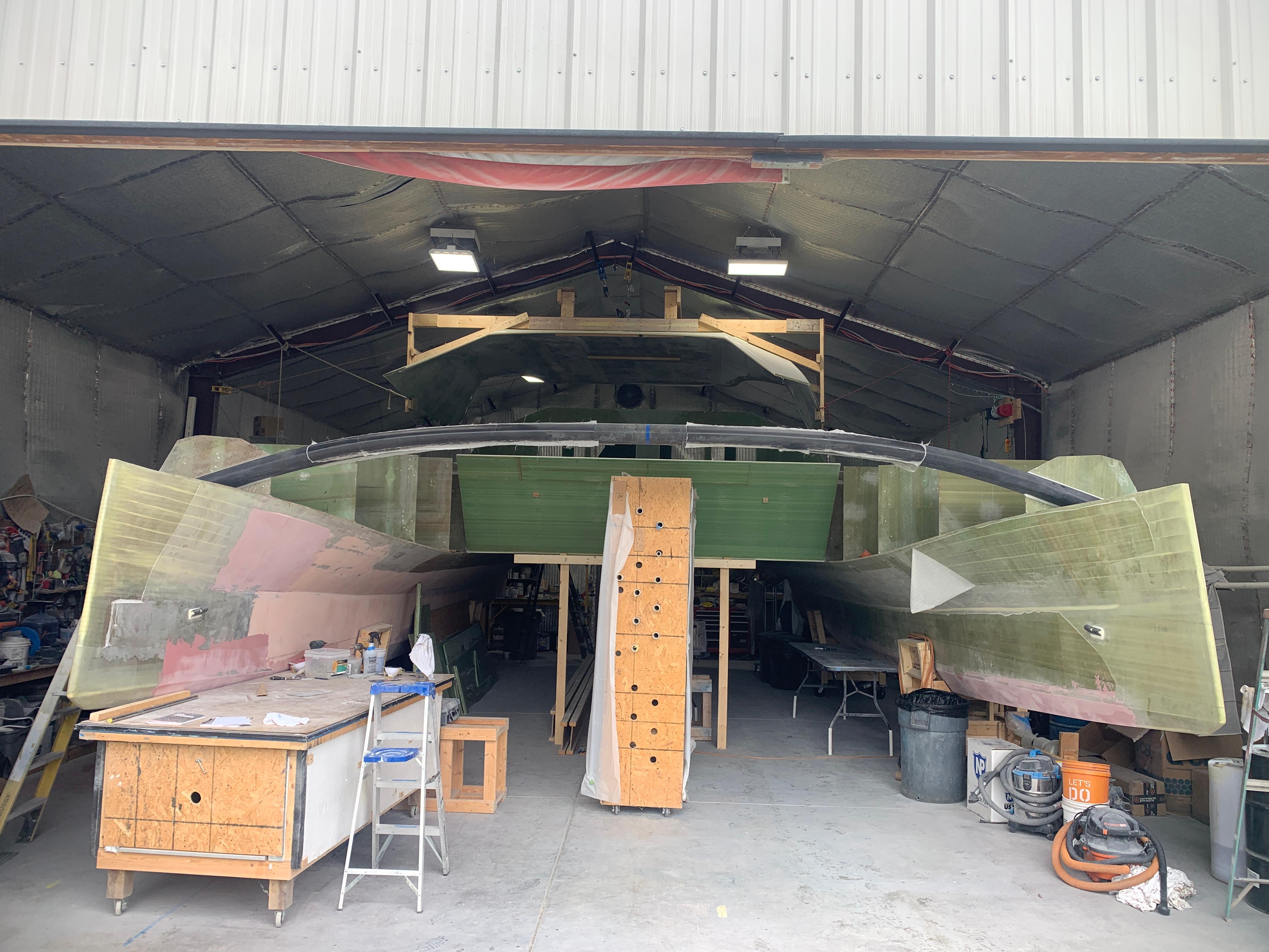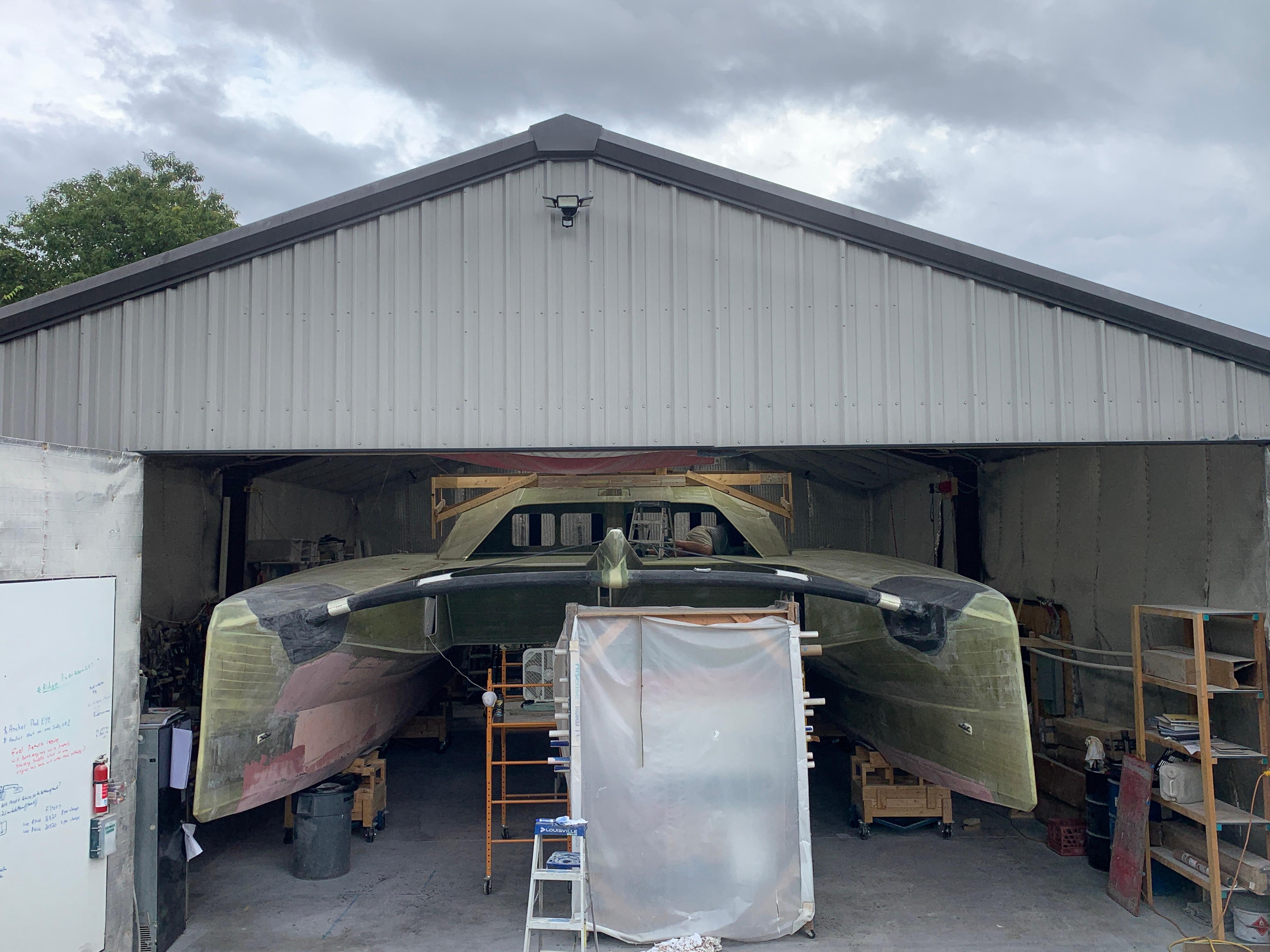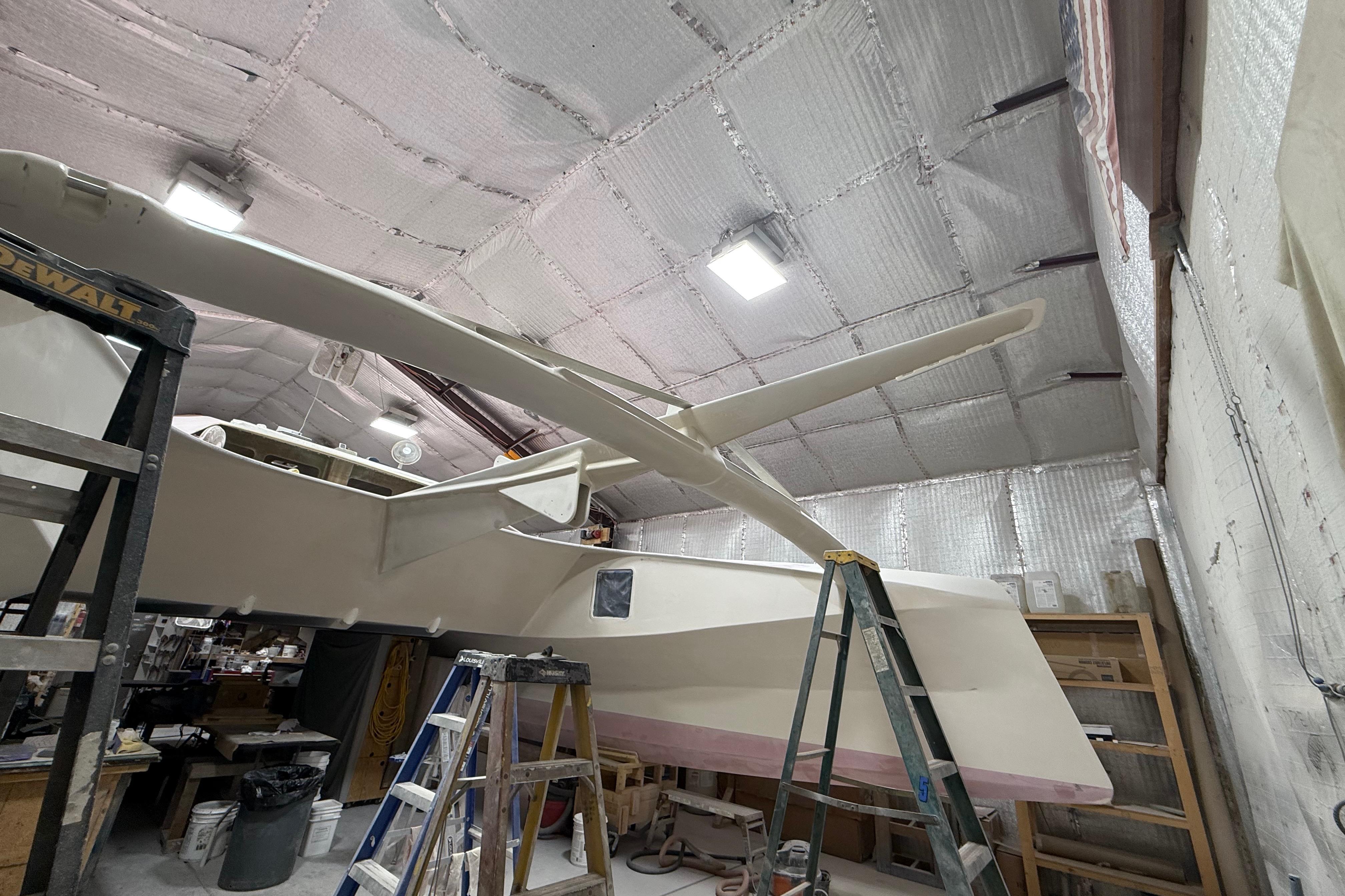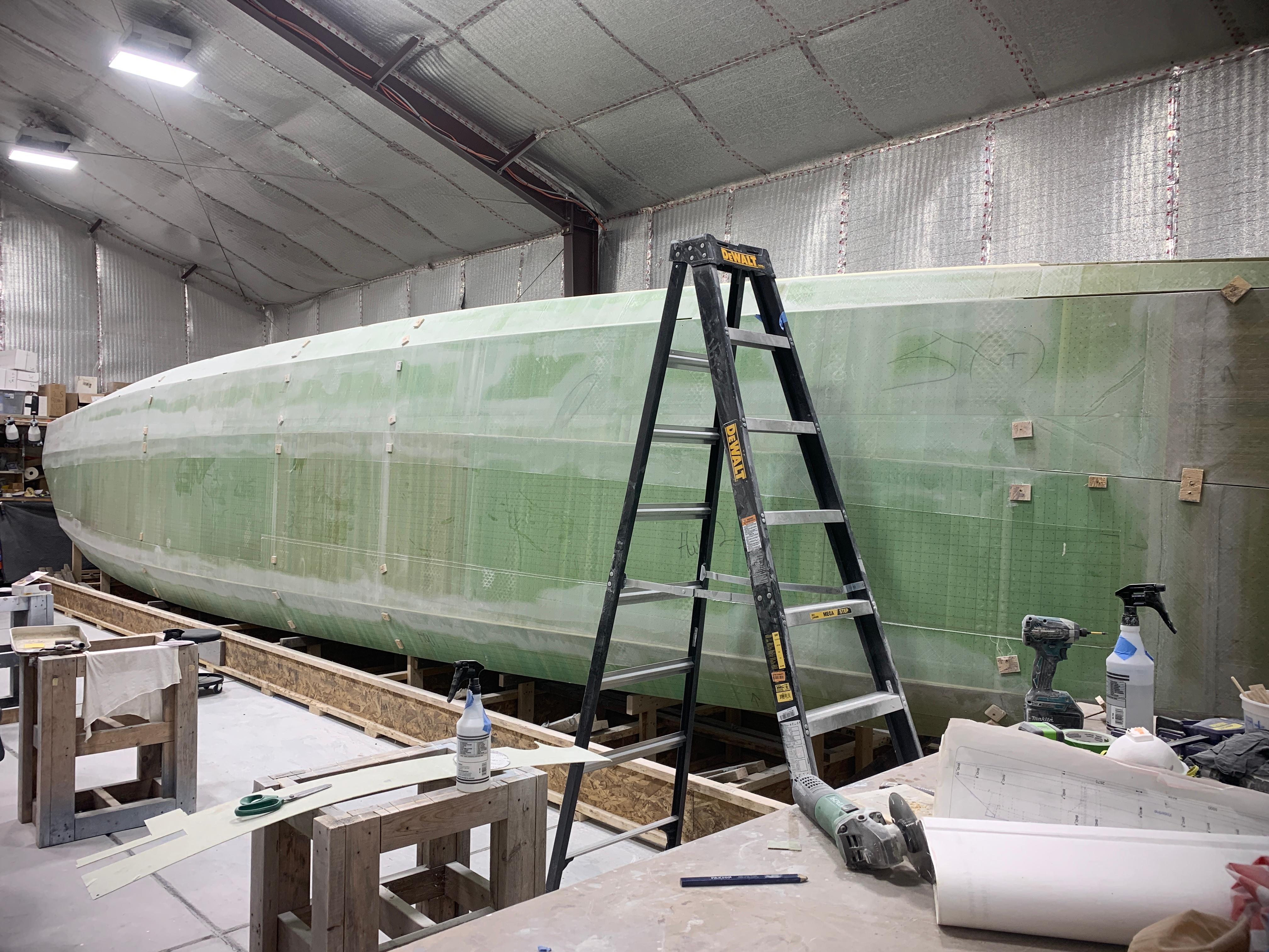 THIS HIGH TECH VESSEL IS CURRENTLY UNDER CONSTRUCTION AND NEARLY COMPLETED. IT CAN BE BOUGHT OUTRIGHT AS A FINISHED VESSEL, OR WE CAN FINISH THE BOAT TO YOUR SPEC. PLEASE CALL FOR CURRENT PRICING AND CHECK OUT THE BUILD PROCESS ON THE WEBSITE OR FOLLOW HERE. Ojigwan Yachts specializes in yacht building featuring custom composite construction and fabrication. We do vacuum infusion, wet lamination under vacuum and typical resin/fiberglass layup. We use carbon fiber and fiberglass construction and primarily use Epoxy resin. We have the facility to perform new construction, high performance upgrades, paint and building of custom parts. Our team has extensive sail and power boating experience and we have a USCG Captain on staff. We support all phases of boat building, and have partnerships with designers to assist in the development of custom components. Pictures of the completed boat are released from the designer.