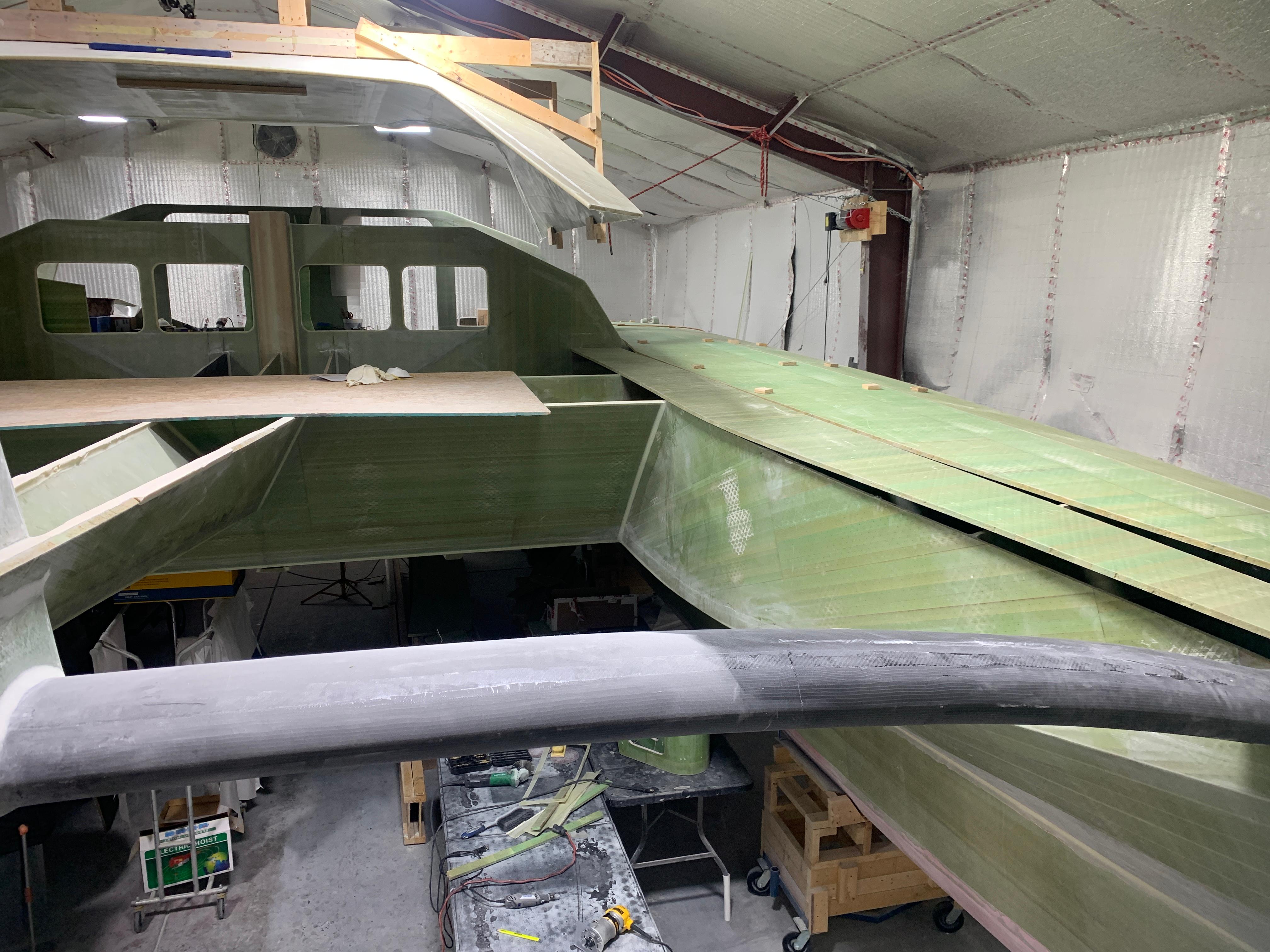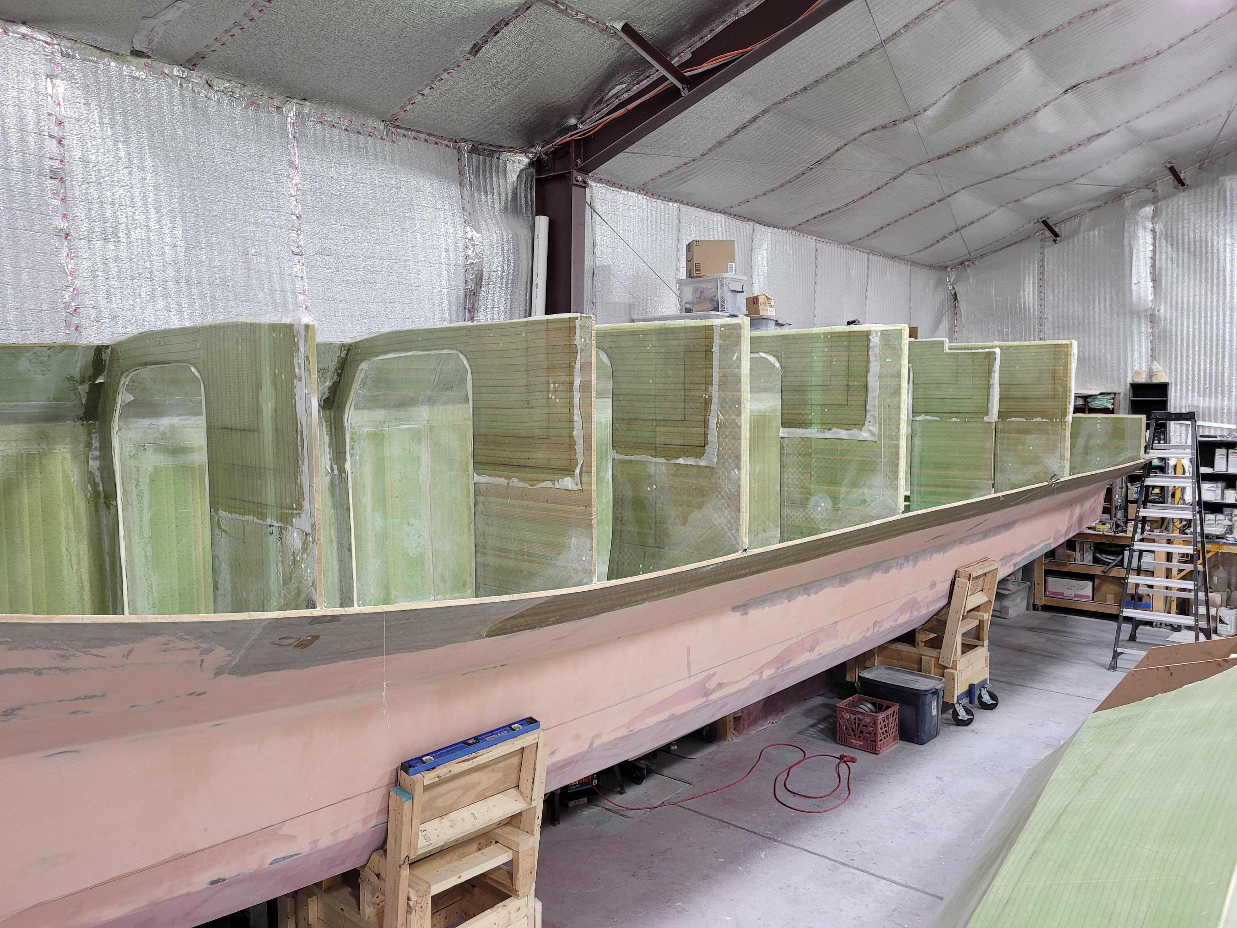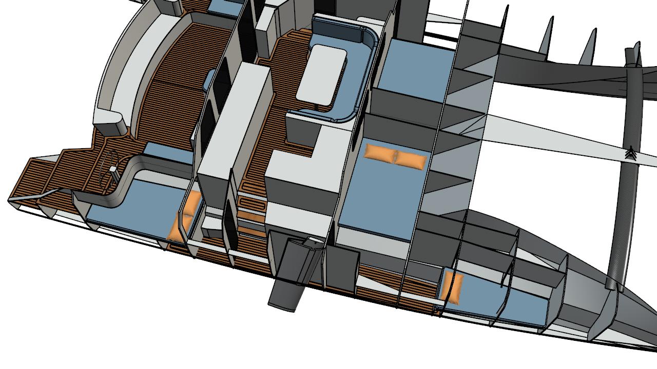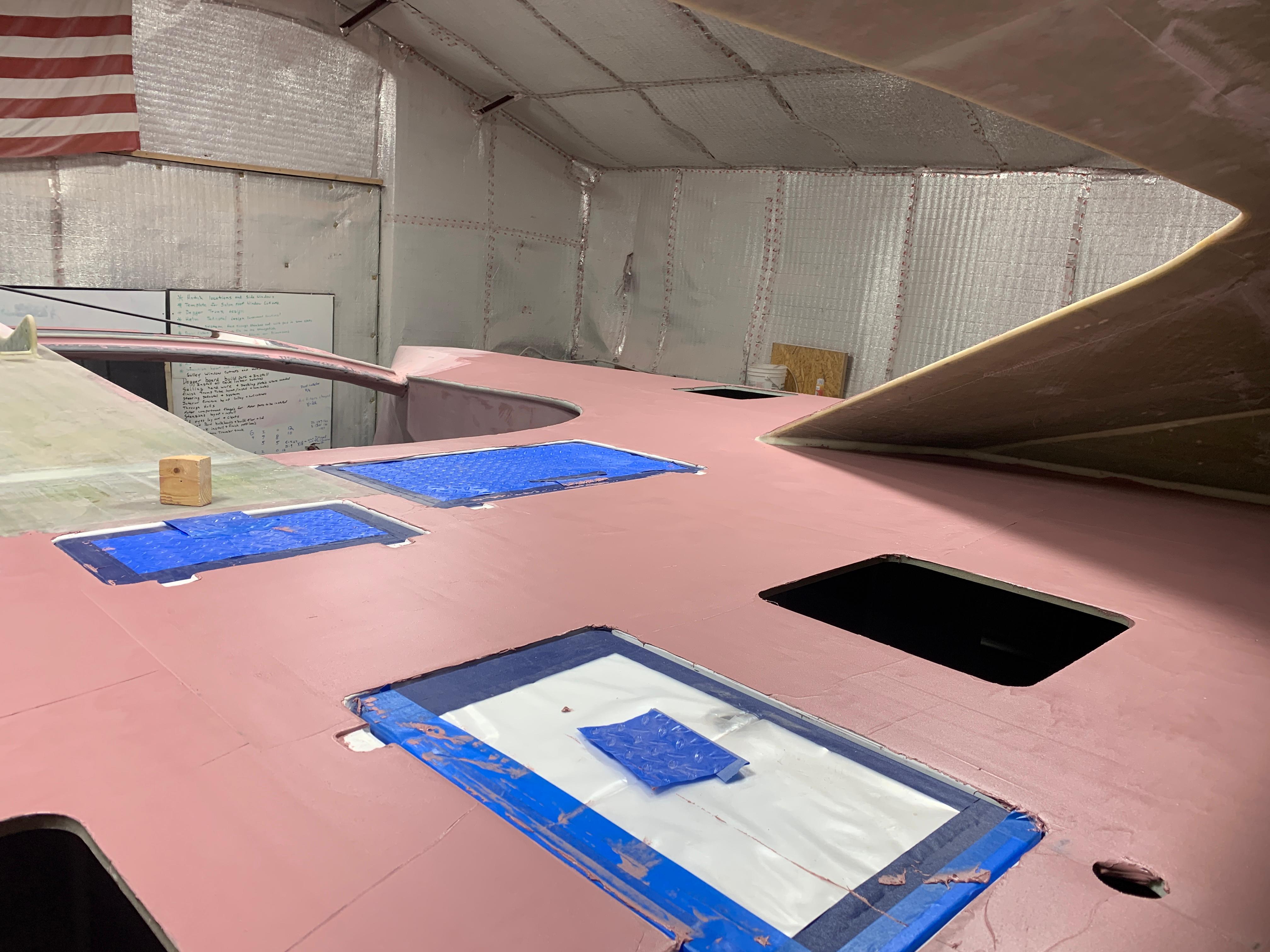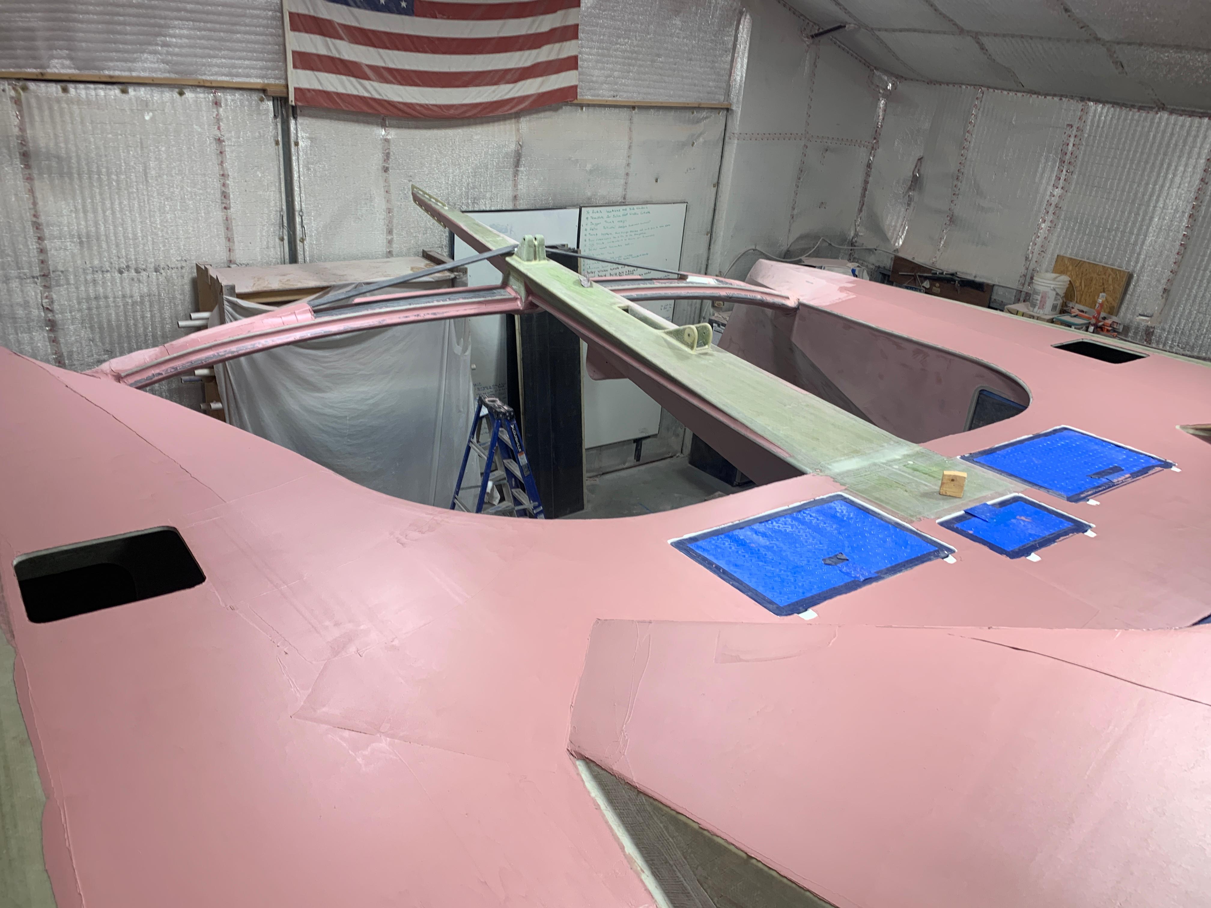THIS HIGH TECH VESSEL IS CURRENTLY UNDER CONSTRUCTION AND NEARLY COMPLETED. IT CAN BE BOUGHT OUTRIGHT AS A FINISHED VESSEL, OR WE CAN FINISH THE BOAT TO YOUR SPEC. PLEASE CALL FOR CURRENT PRICING AND CHECK OUT THE BUILD PROCESS ON THE WEBSITE OR FOLLOW HERE. Ojigwan Yachts specializes in yacht building featuring custom composite construction and fabrication. We do vacuum infusion, wet lamination under vacuum and typical resin/fiberglass layup. We use carbon fiber and fiberglass construction and primarily use Epoxy resin. We have the facility to perform new construction, high performance upgrades, paint and building of custom parts. Our team has extensive sail and power boating experience and we have a USCG Captain on staff. We support all phases of boat building, and have partnerships with designers to assist in the development of custom components. Pictures of the completed boat are released from the designer.
