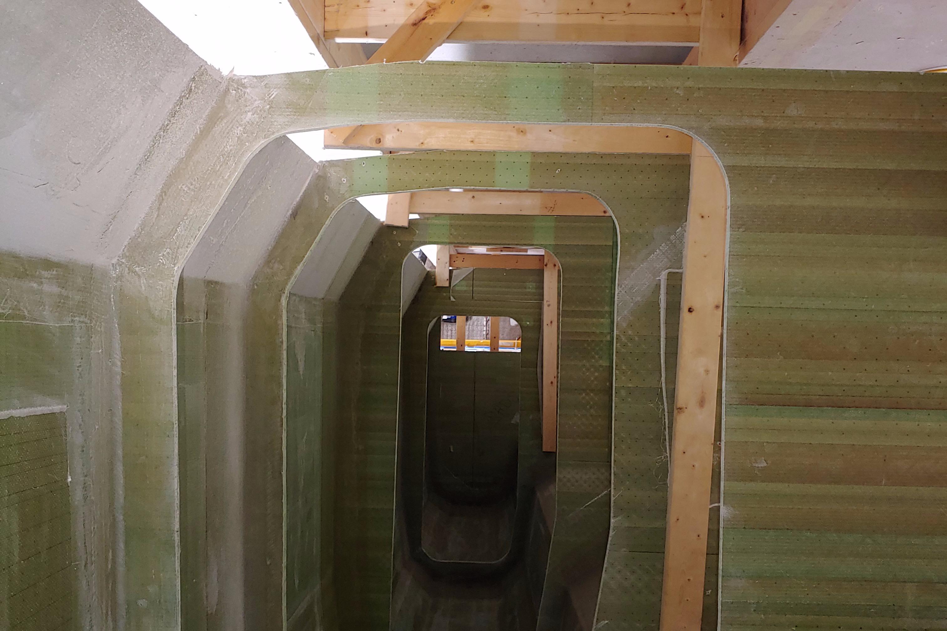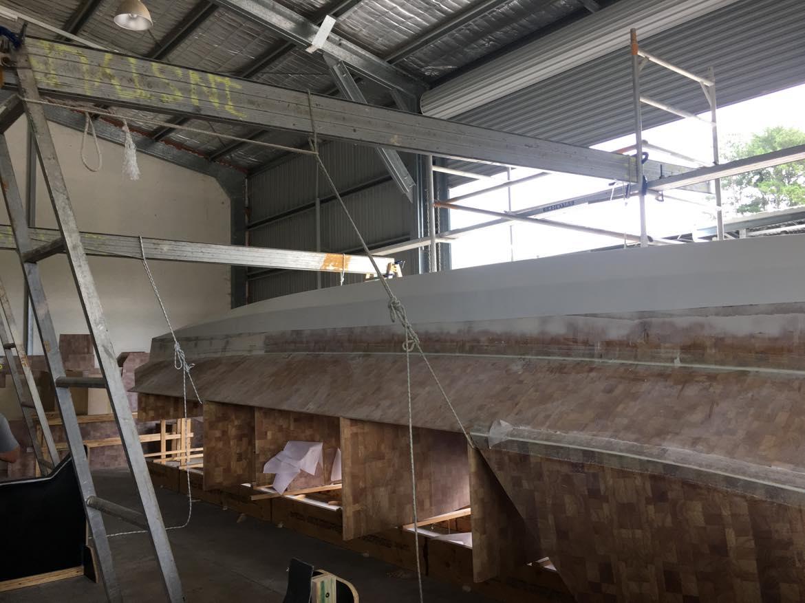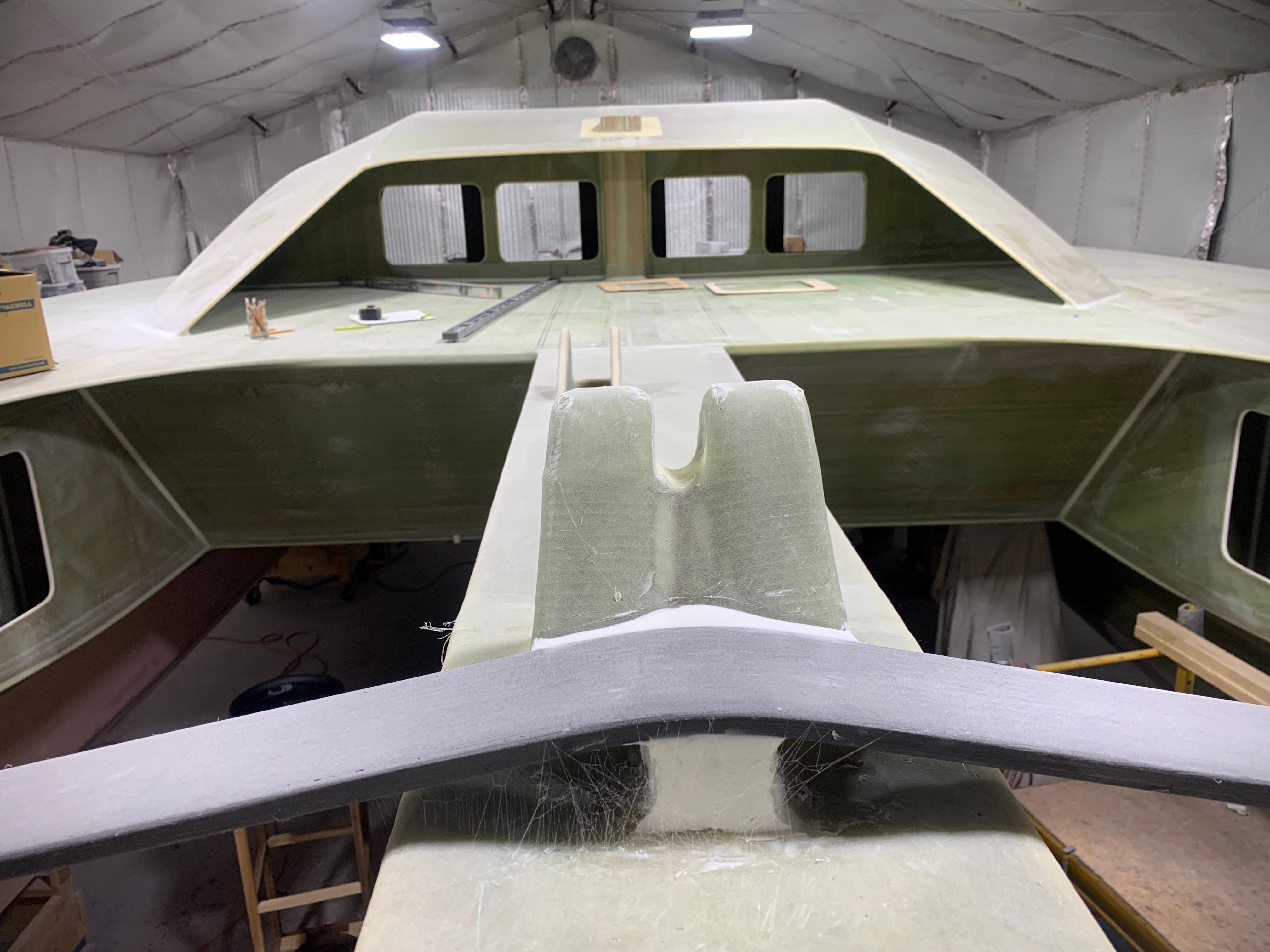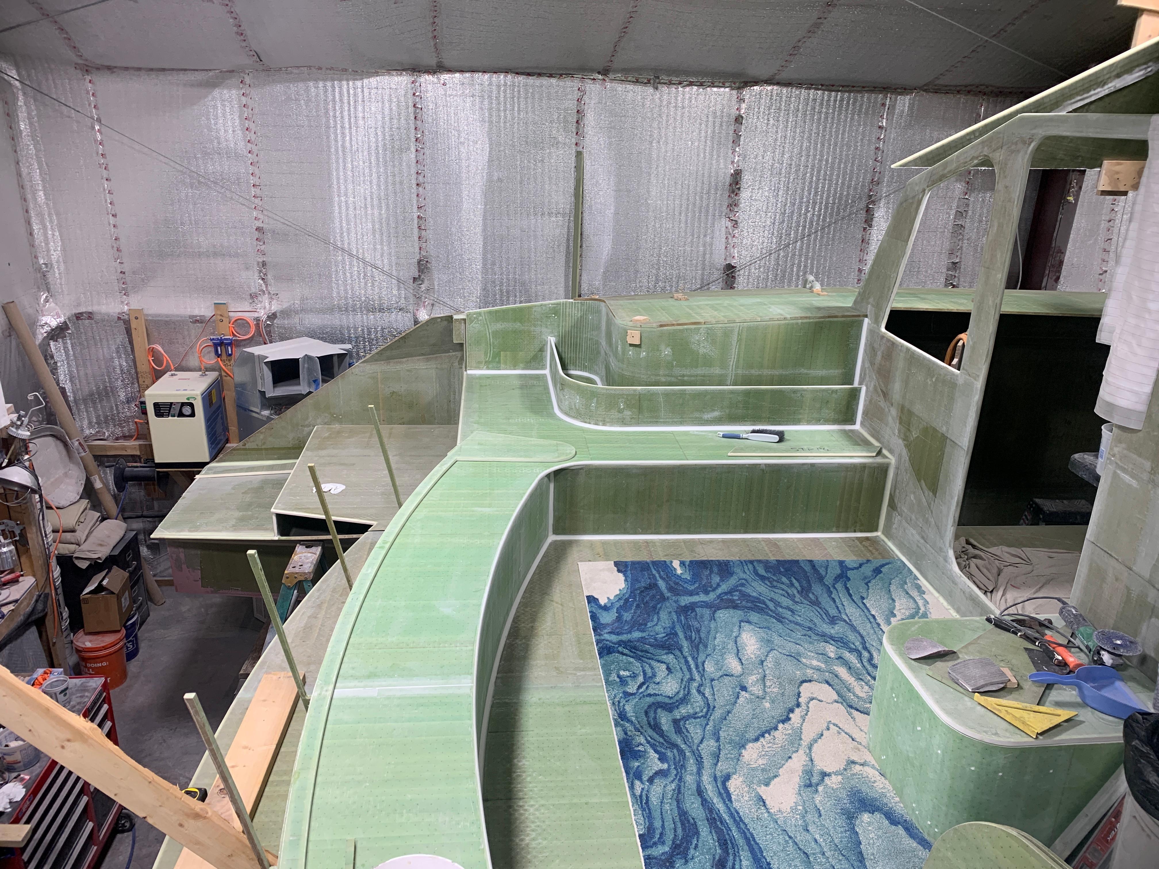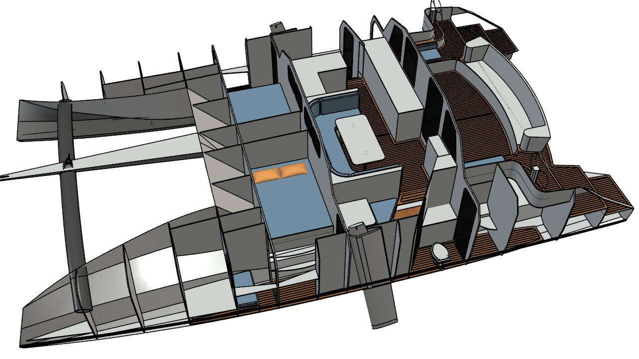 THIS HIGH TECH VESSEL IS CURRENTLY UNDER CONSTRUCTION AND NEARLY COMPLETED. IT CAN BE BOUGHT OUTRIGHT AS A FINISHED VESSEL, OR WE CAN FINISH THE BOAT TO YOUR SPEC. PLEASE CALL FOR CURRENT PRICING AND CHECK OUT THE BUILD PROCESS ON THE WEBSITE OR FOLLOW HERE. Ojigwan Yachts specializes in yacht building featuring custom composite construction and fabrication. We do vacuum infusion, wet lamination under vacuum and typical resin/fiberglass layup. We use carbon fiber and fiberglass construction and primarily use Epoxy resin. We have the facility to perform new construction, high performance upgrades, paint and building of custom parts. Our team has extensive sail and power boating experience and we have a USCG Captain on staff. We support all phases of boat building, and have partnerships with designers to assist in the development of custom components. Pictures of the completed boat are released from the designer.