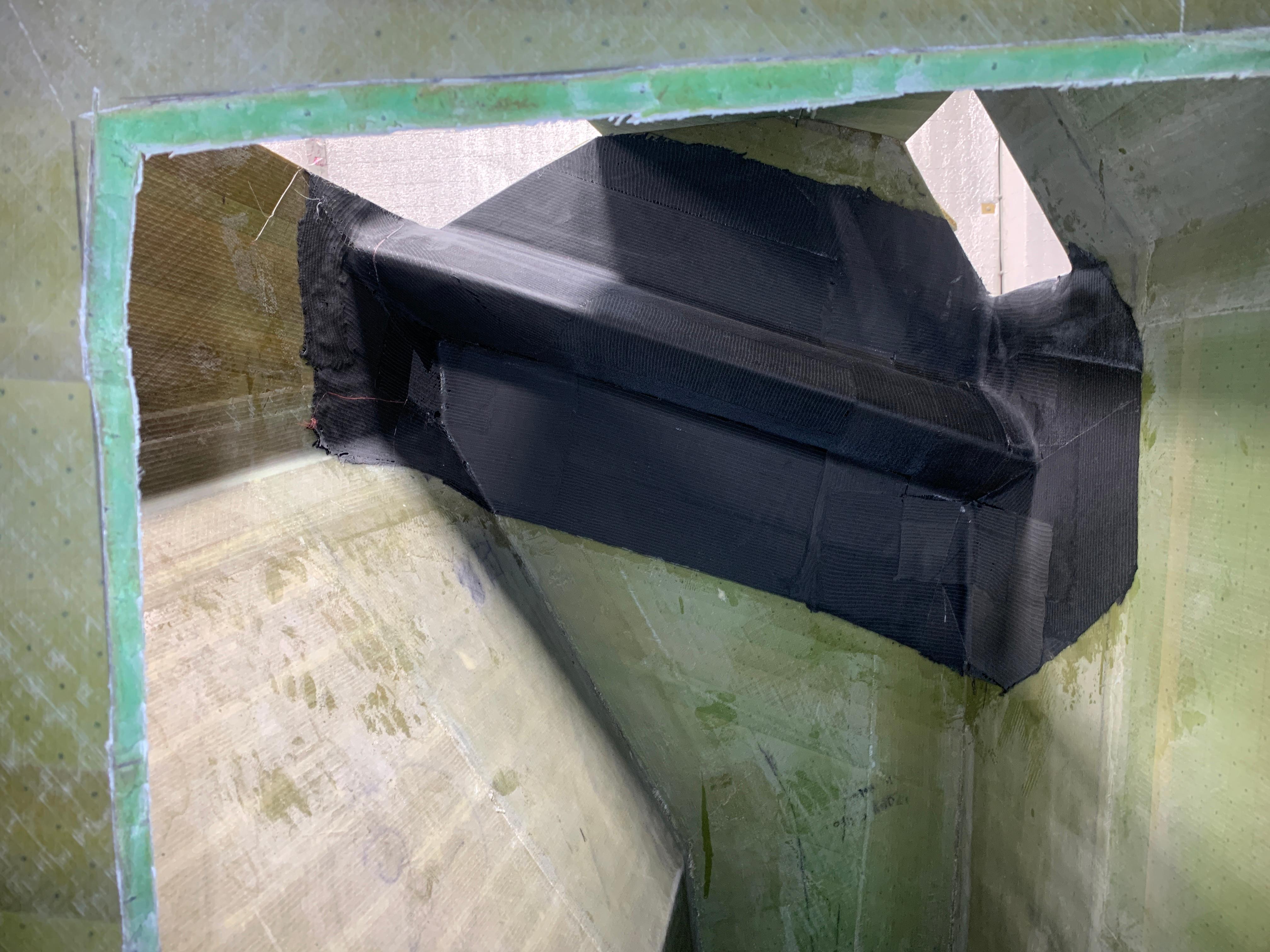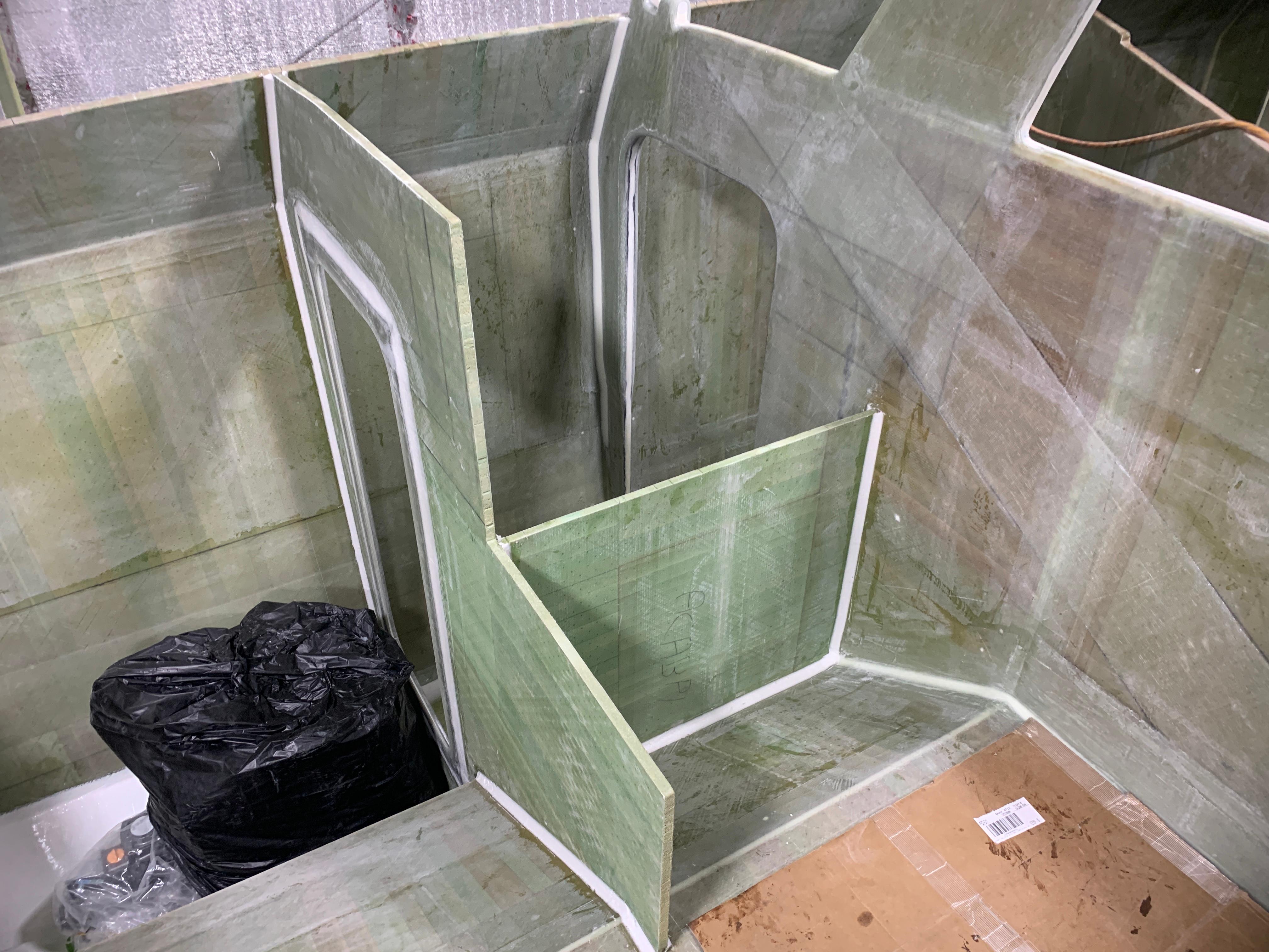 Carbon fiber with carbon fiber tabbing to hull bulkheads