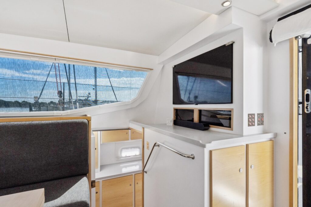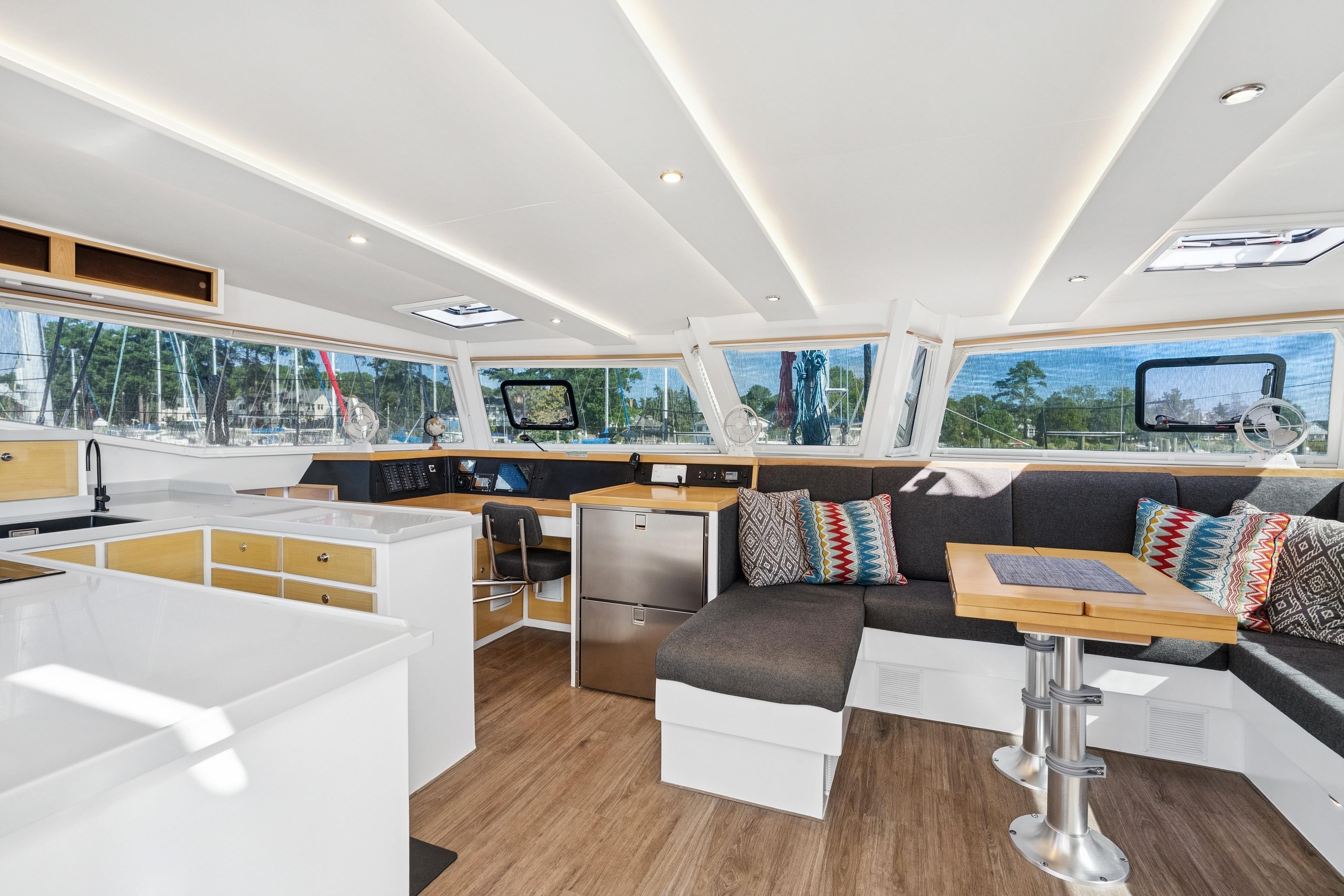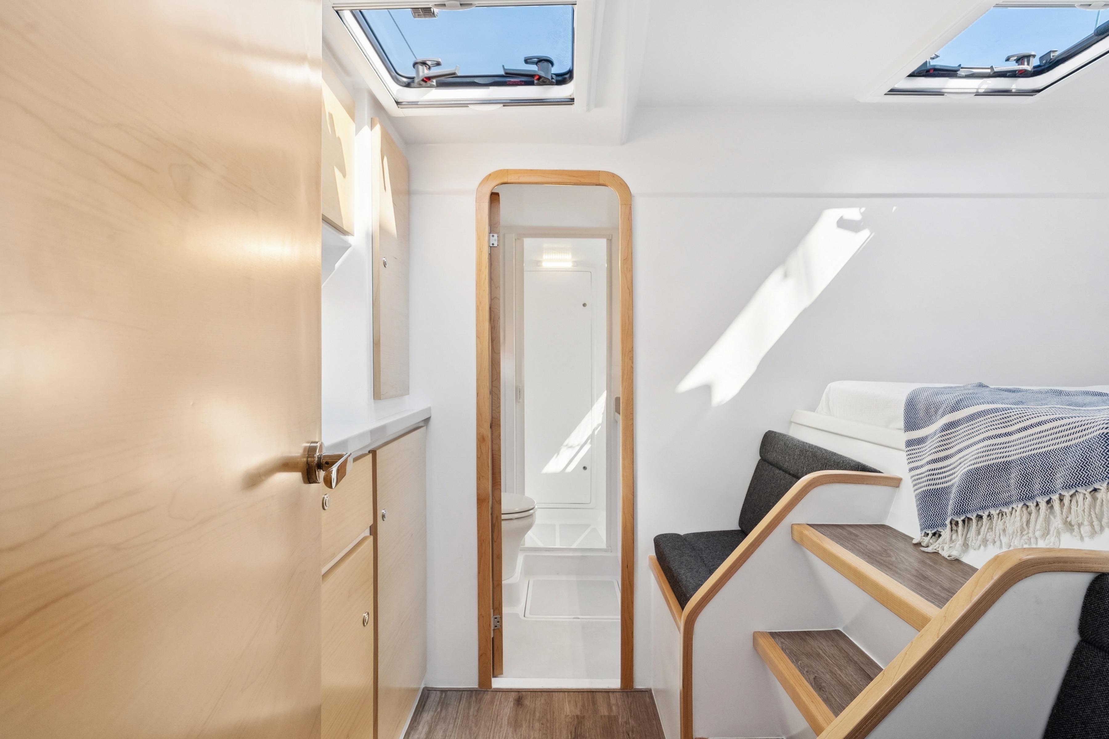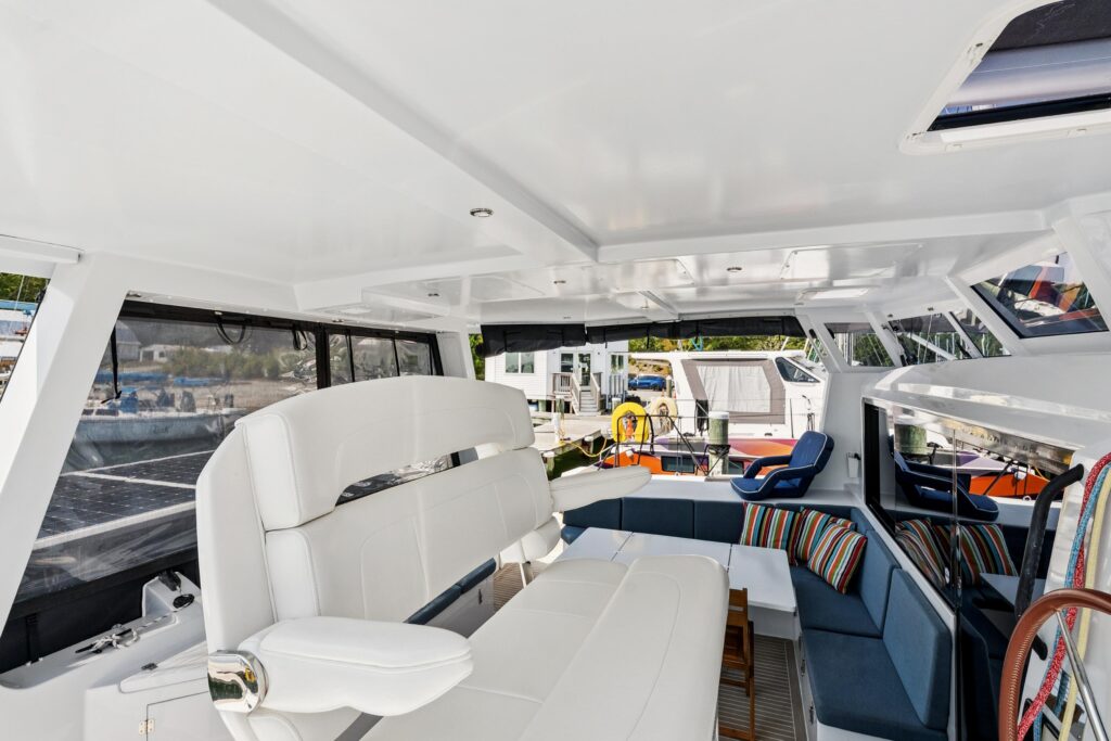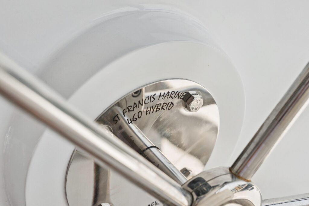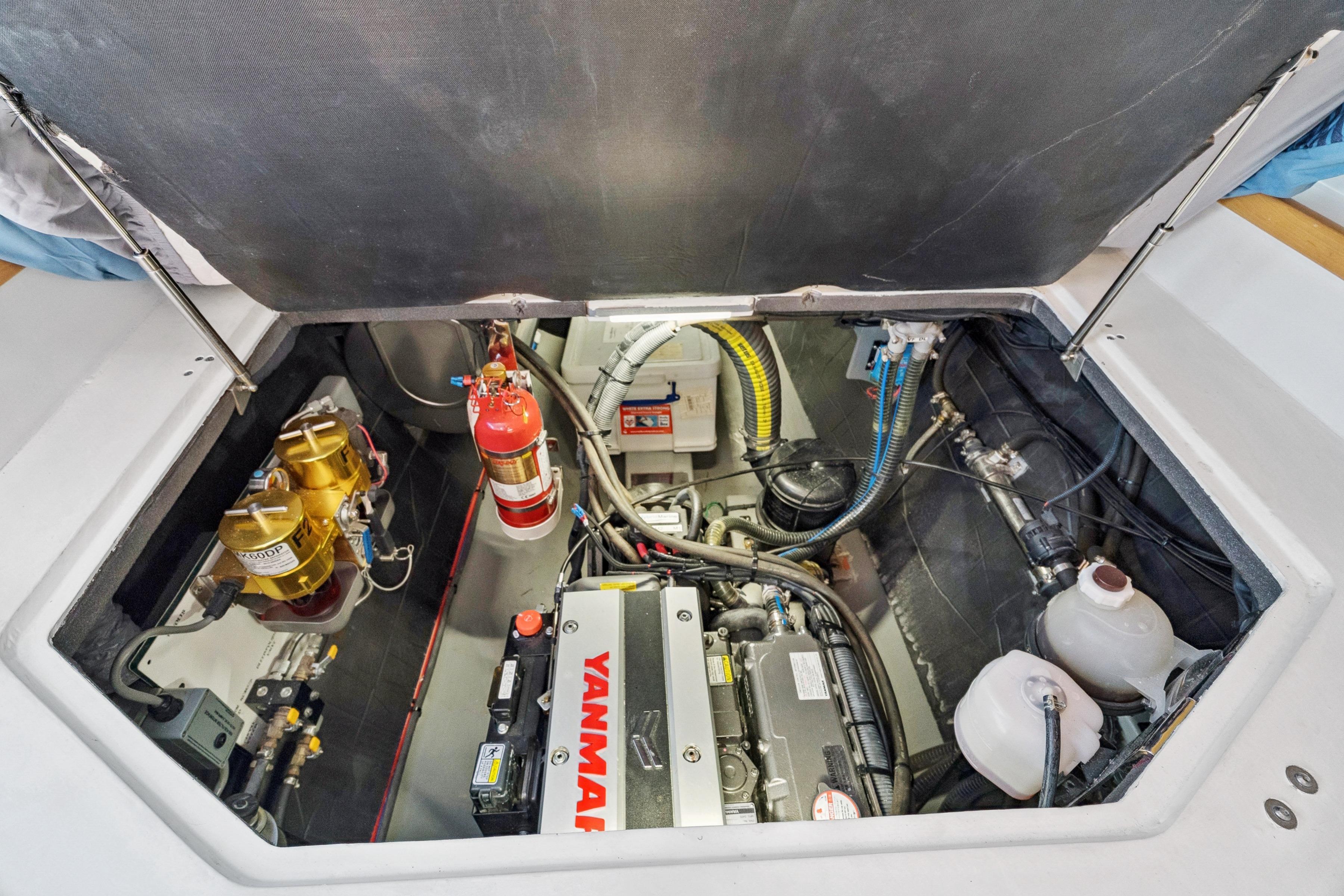 Twin 57hp Yanmar engines with 10kW electric motors for efficient, quiet cruising.
