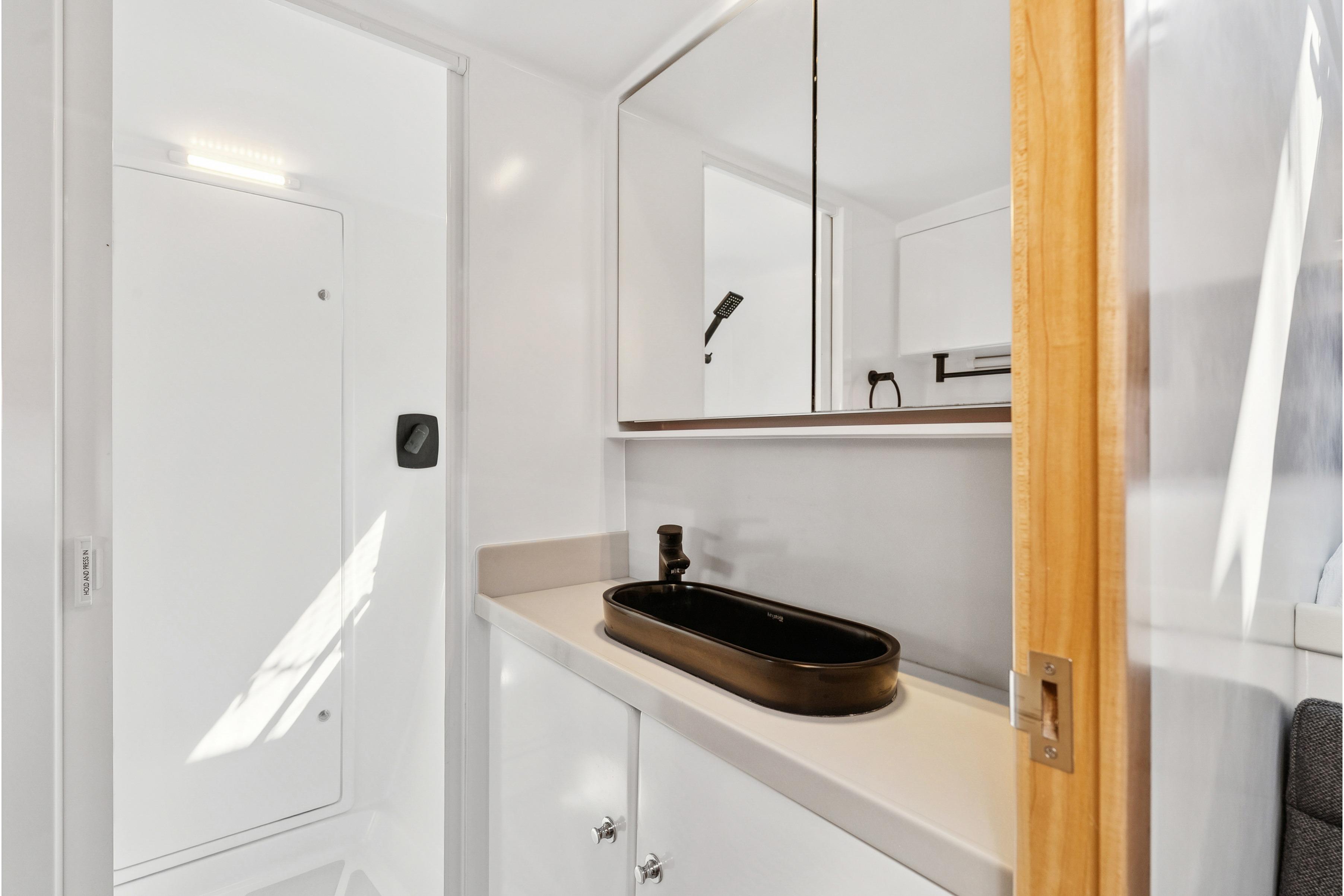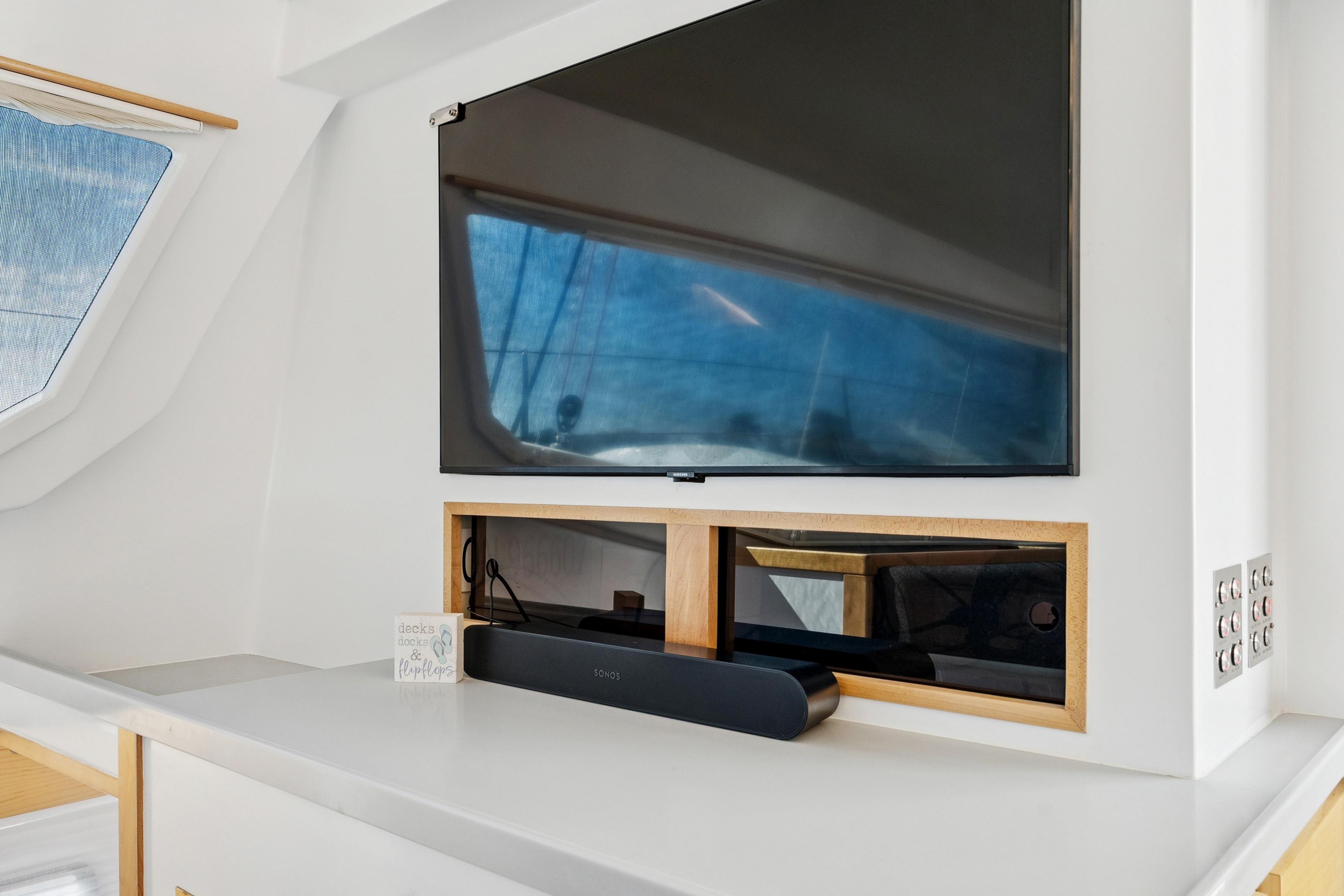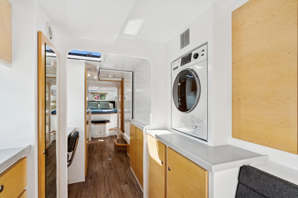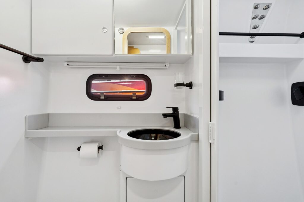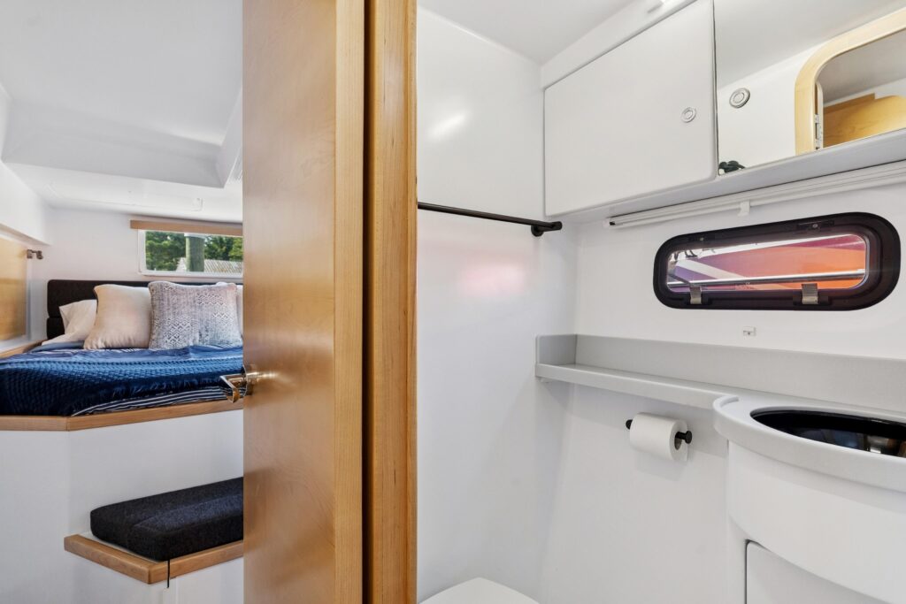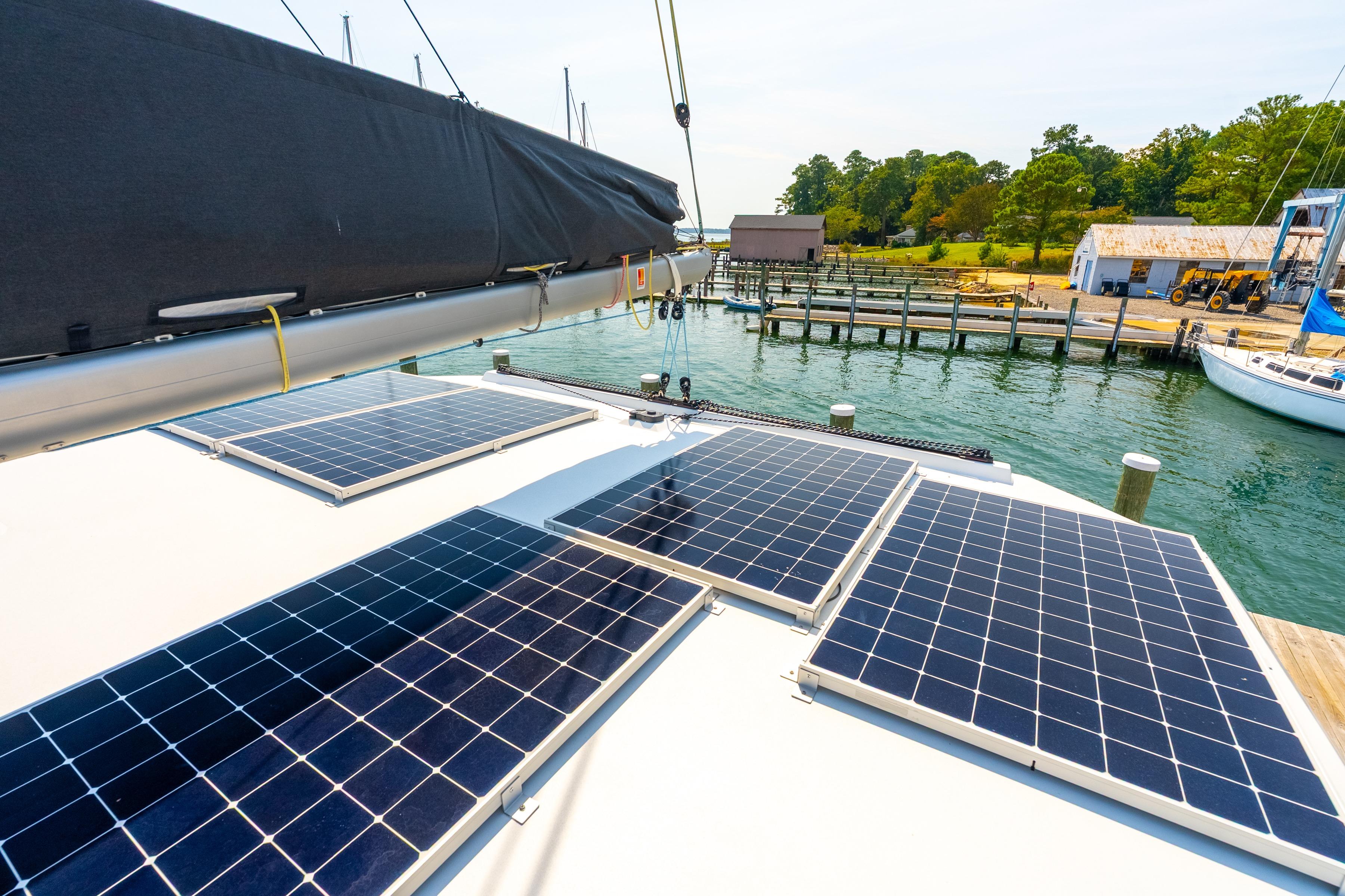 Twin 57hp Yanmar engines with 10kW electric motors for efficient, quiet cruising.
