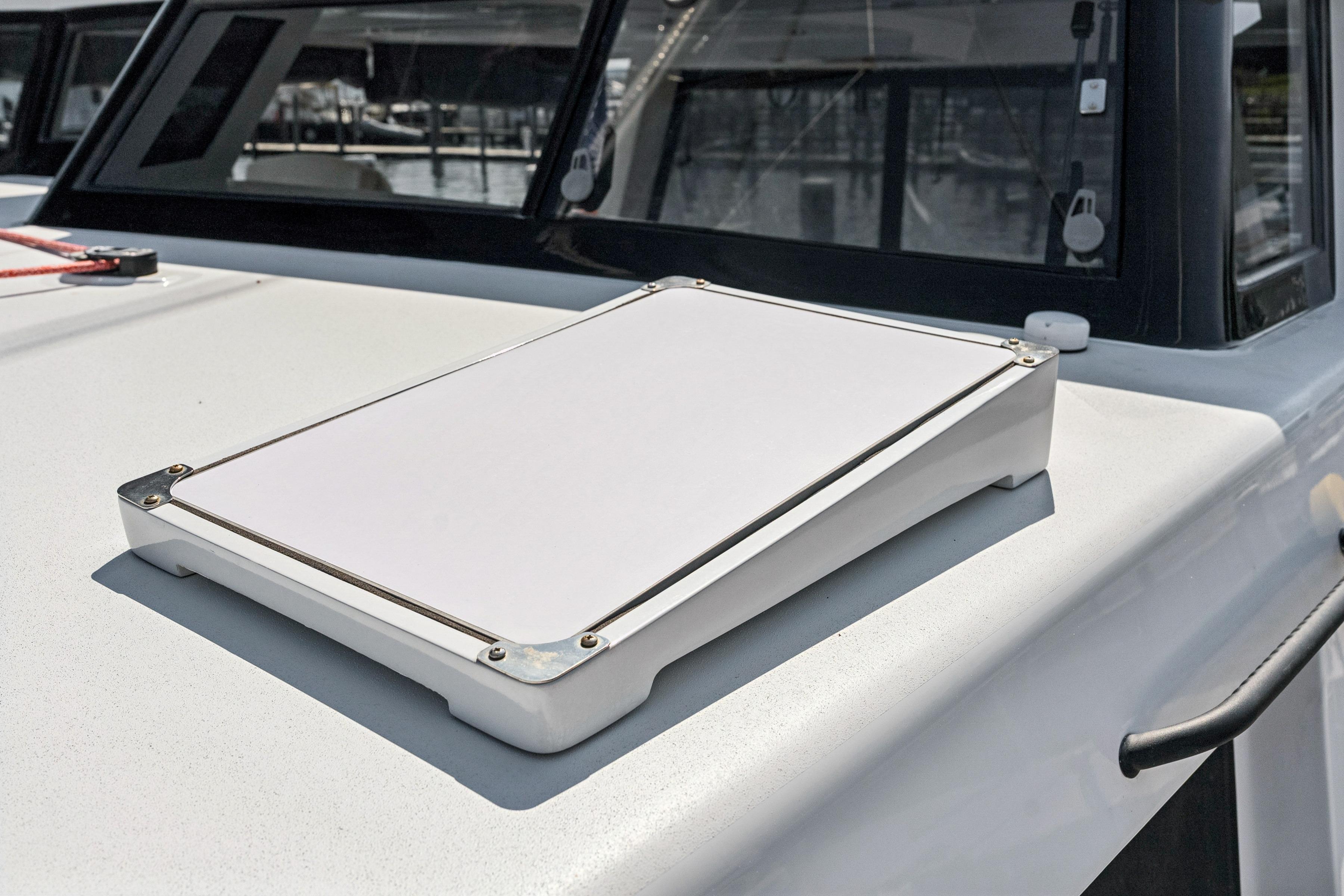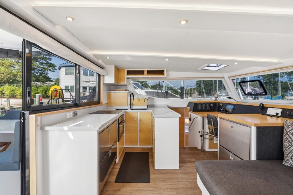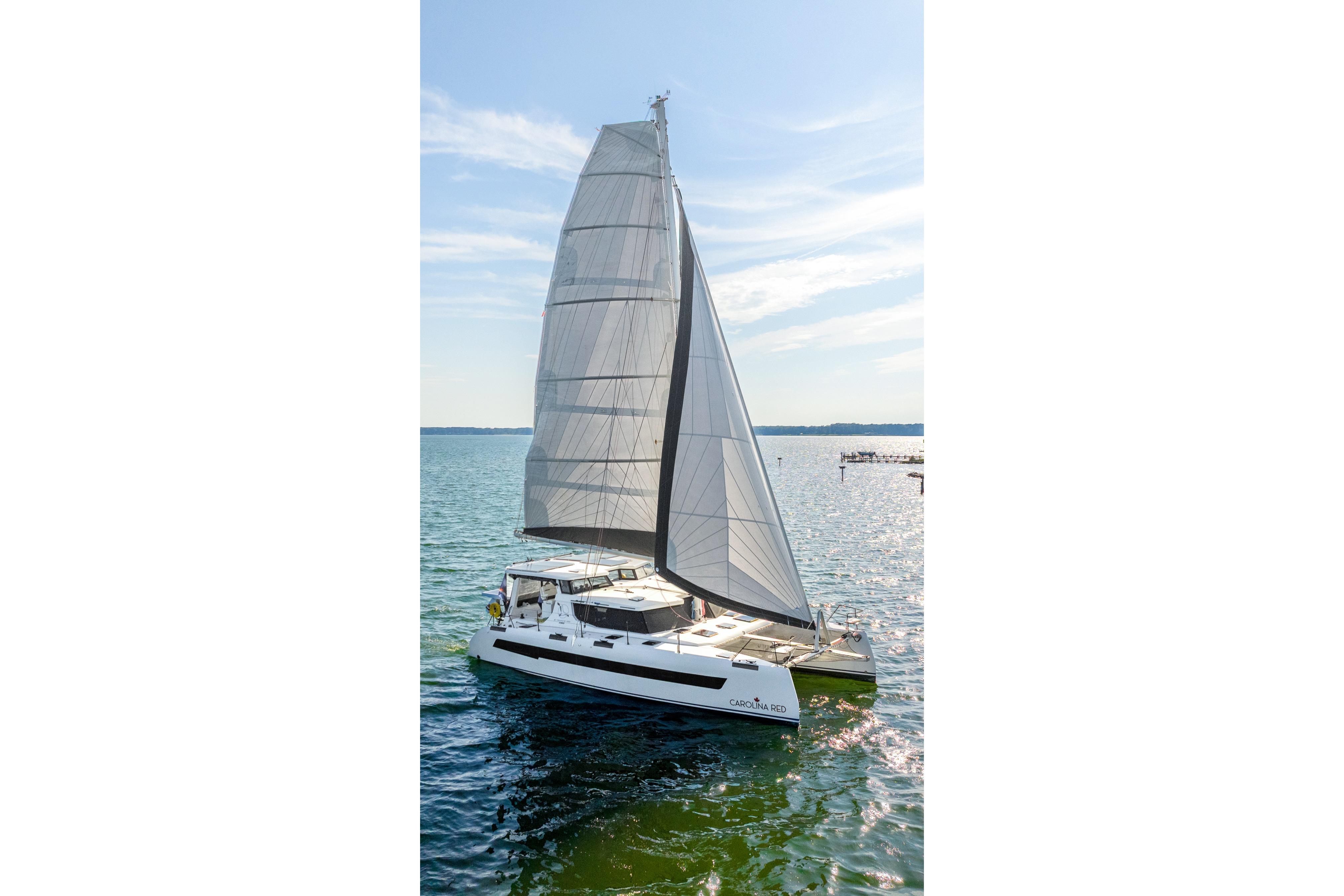Inside, the bright and modern interior is enhanced by oversized windows and deck hatches that connect the living space to the sea. Every element of Carolina Red has been designed for comfort, safety, and serious cruising. She is guaranteed to deliver grace, space, and pace in every nautical mile.
