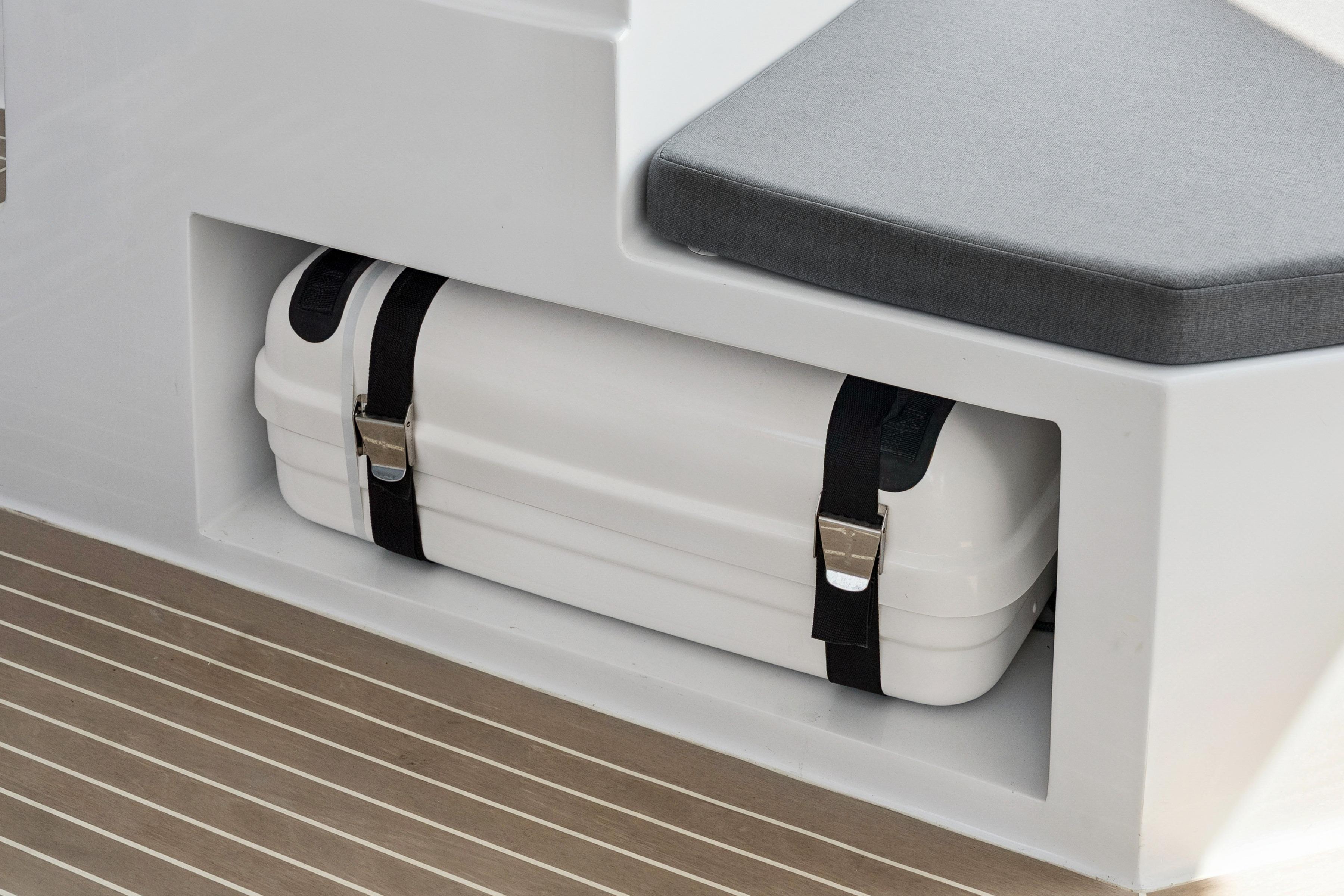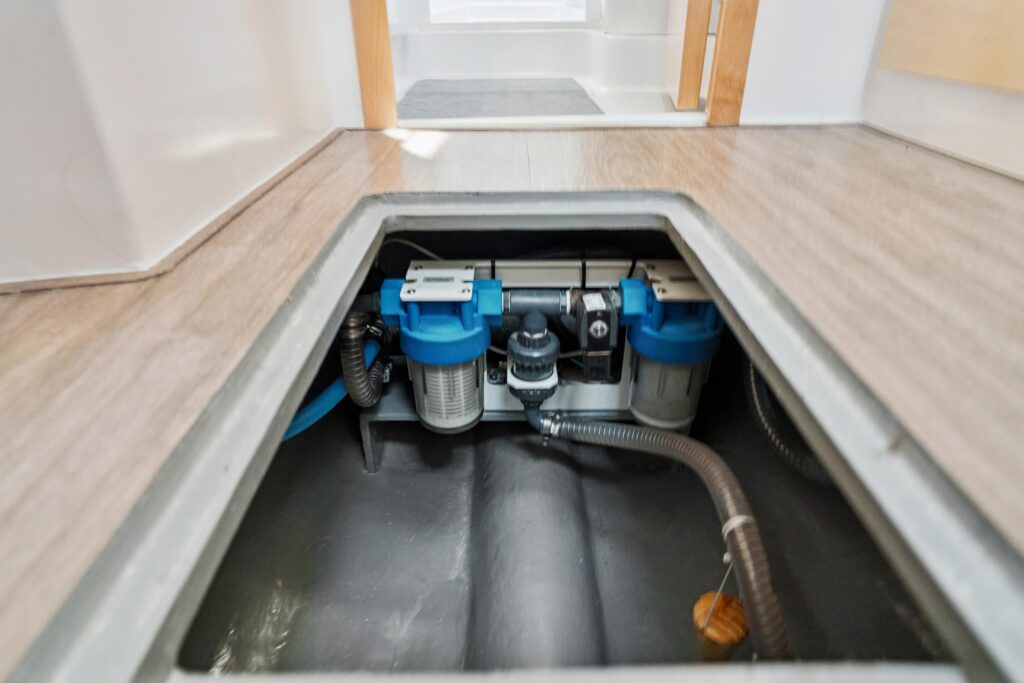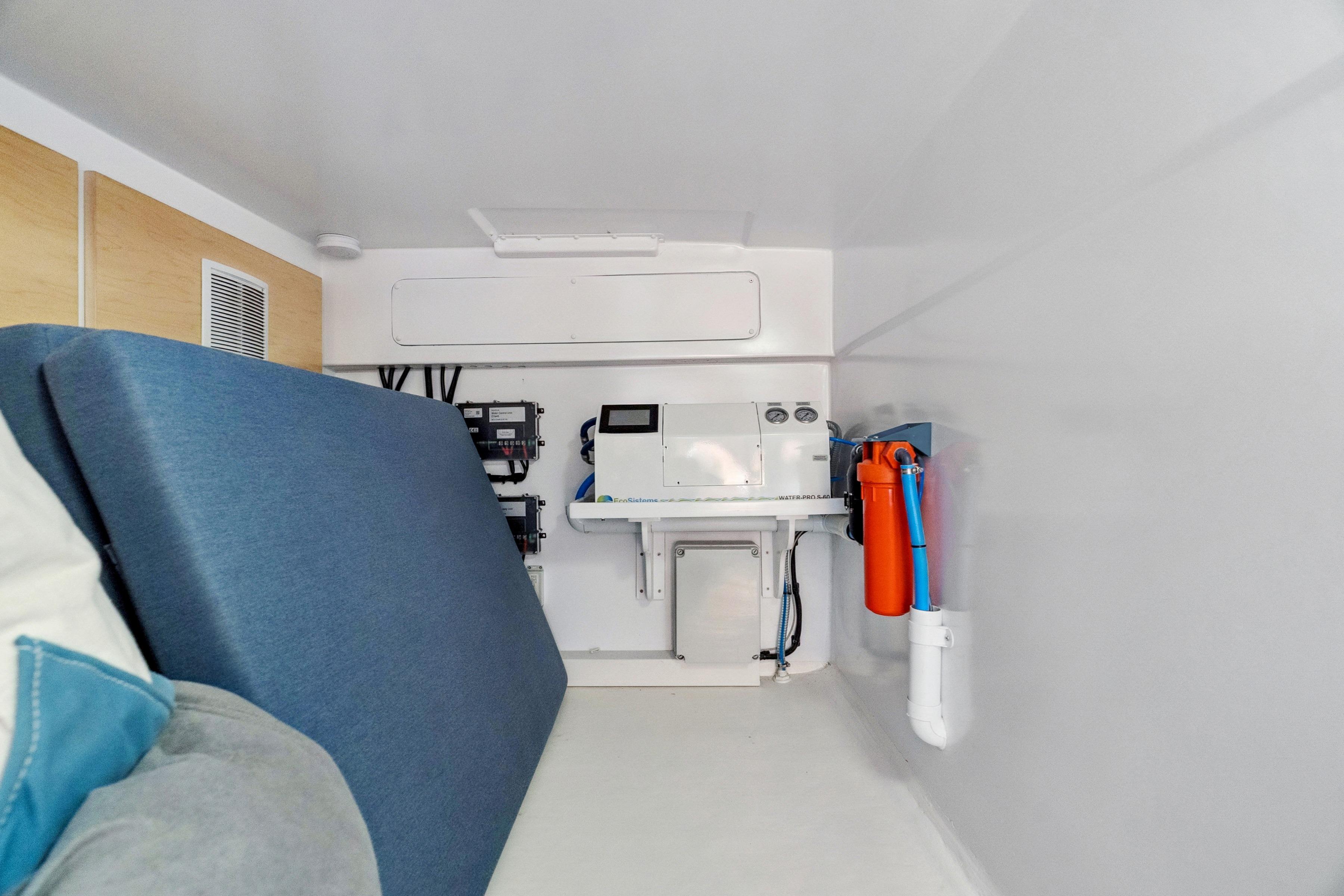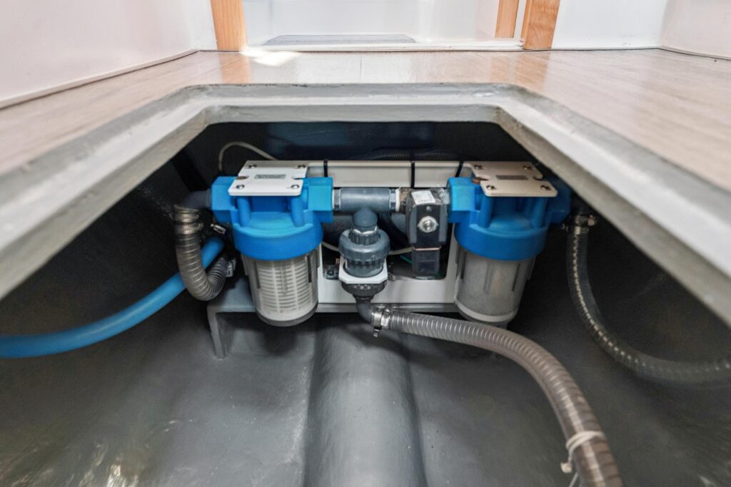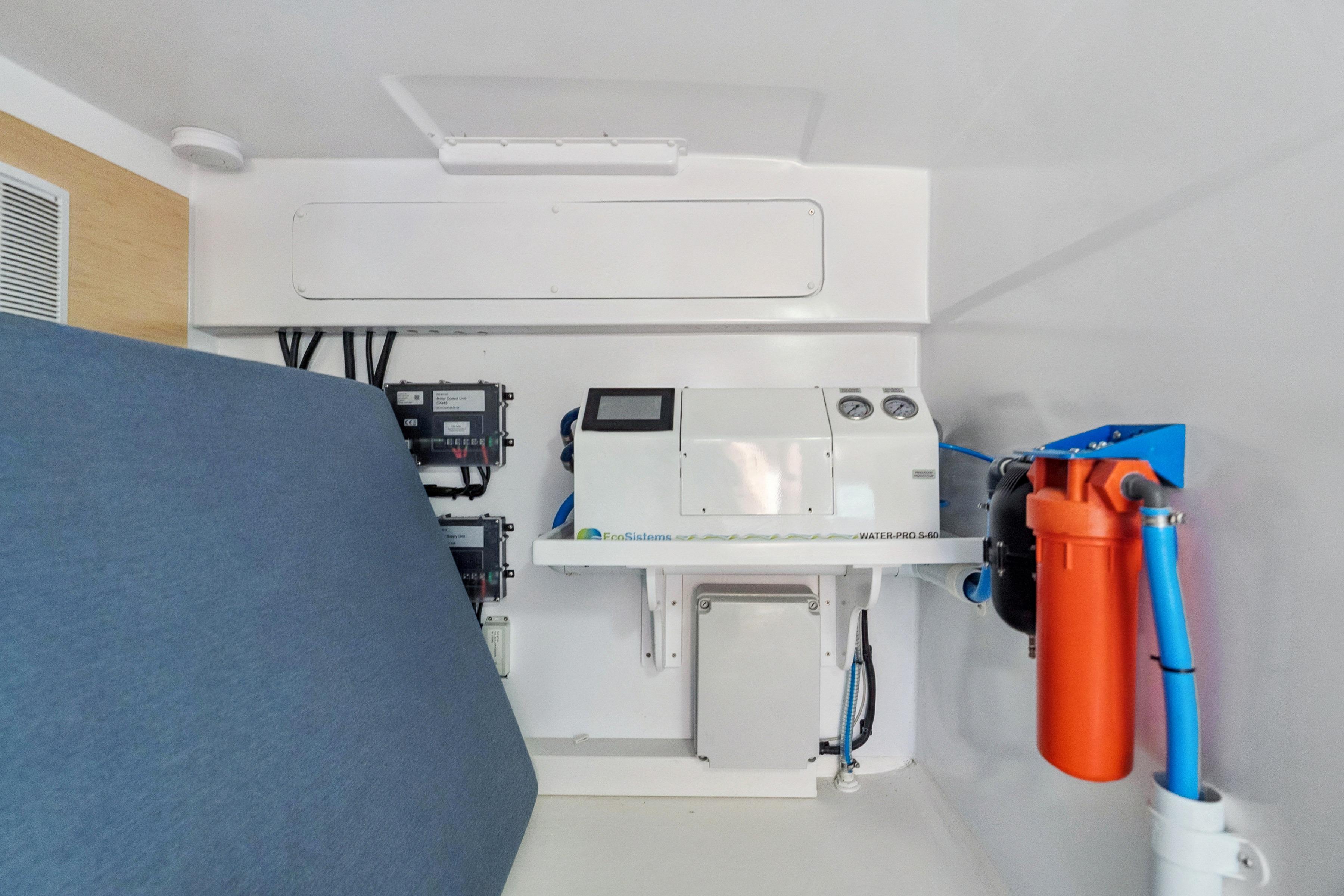 Includes fuel polishing, a high-output watermaker, fire suppression, and advanced tank monitoring.