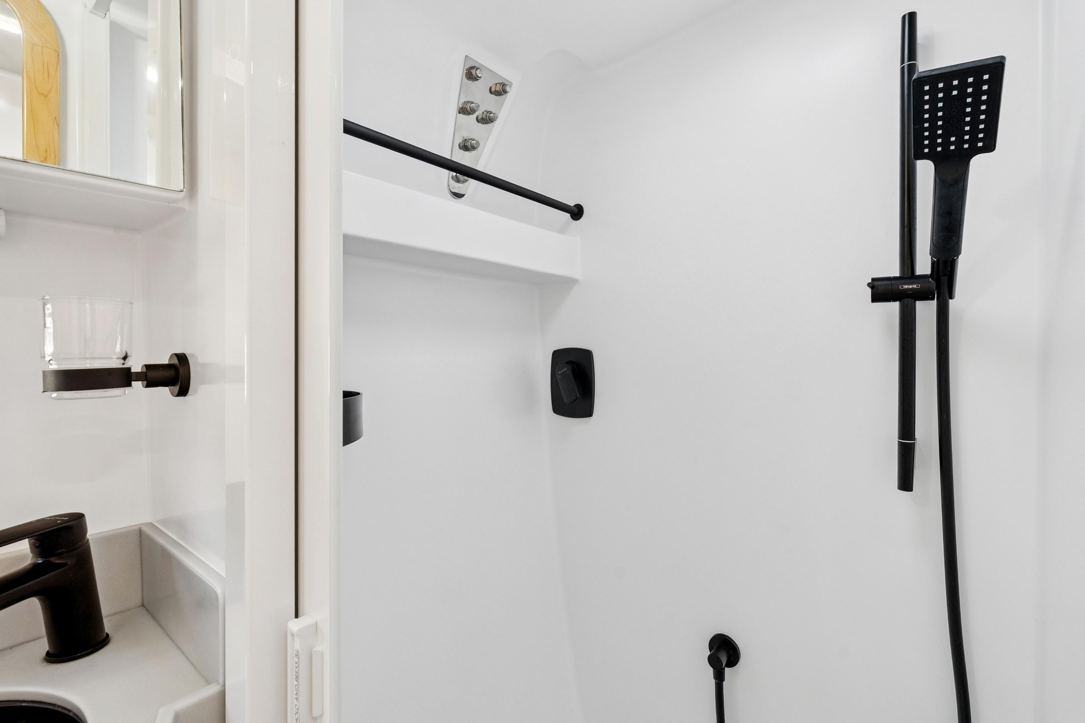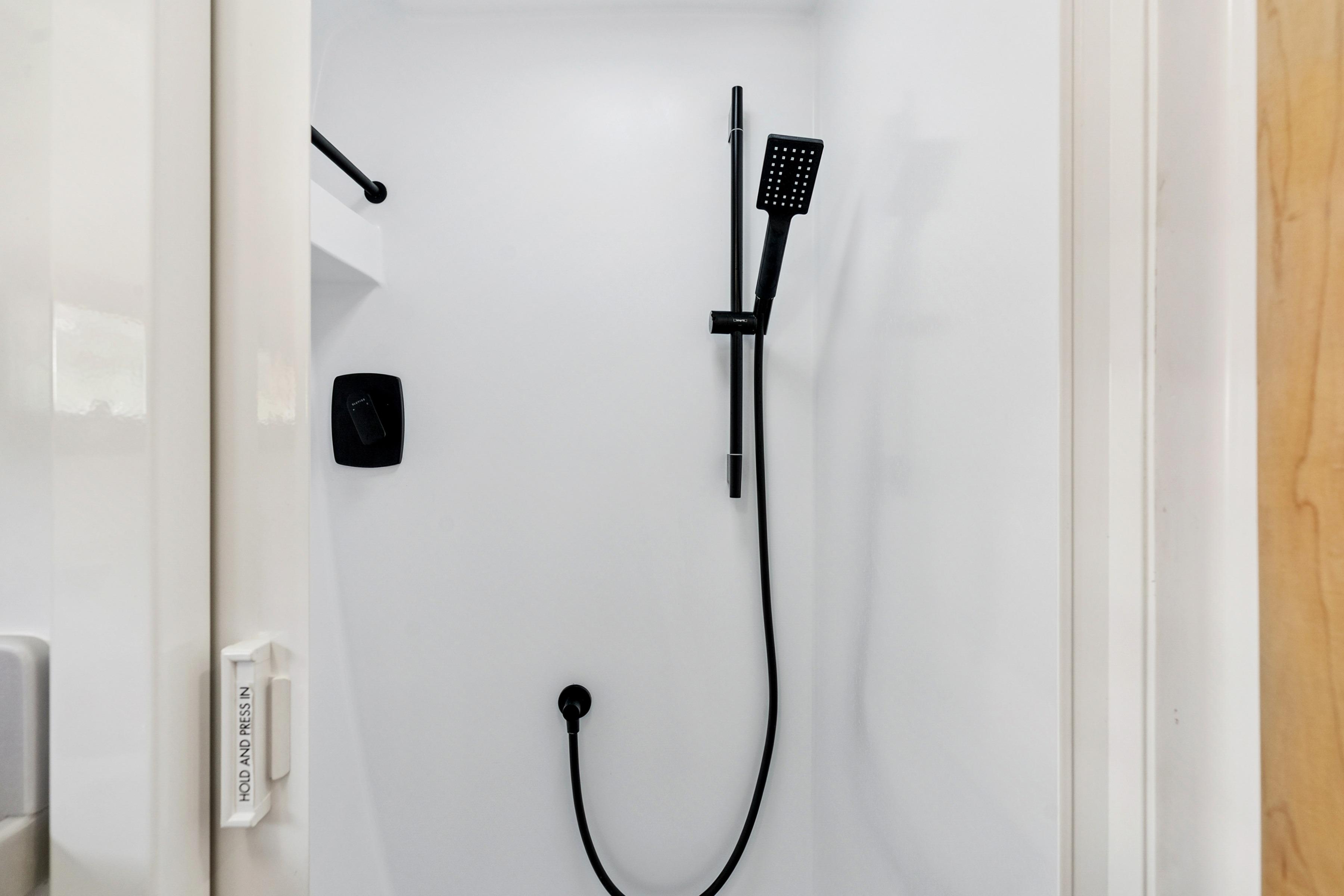 Single shower with sliding door