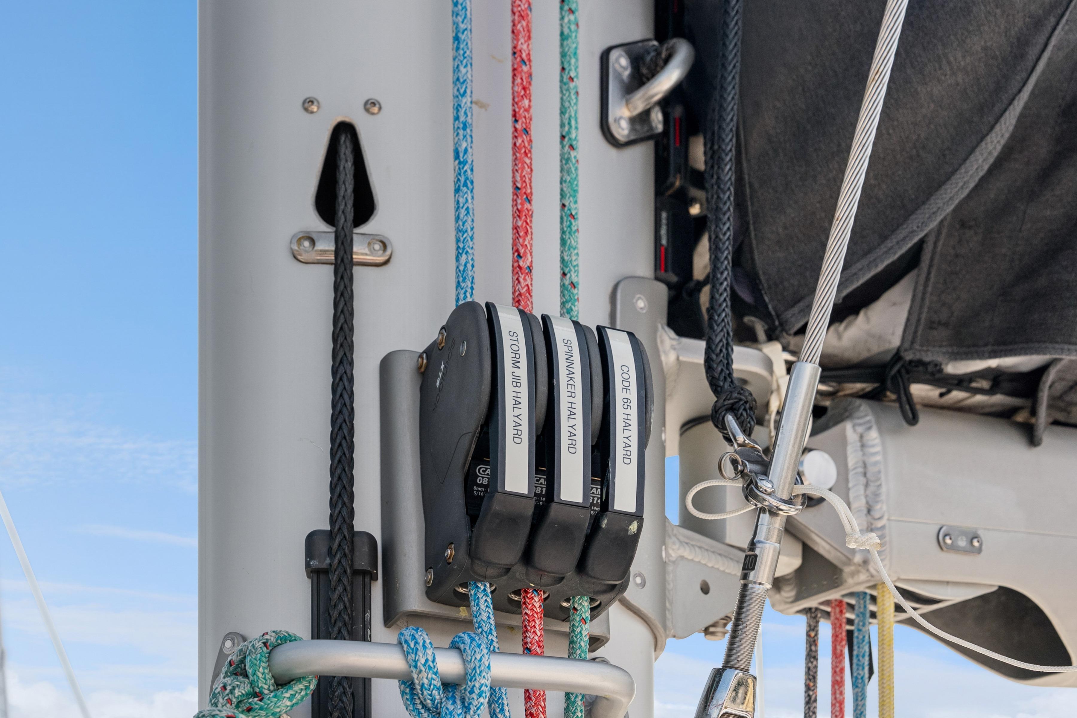 5 x Dyneema halyards: main, genoa, topping lift, code 65, storm jib