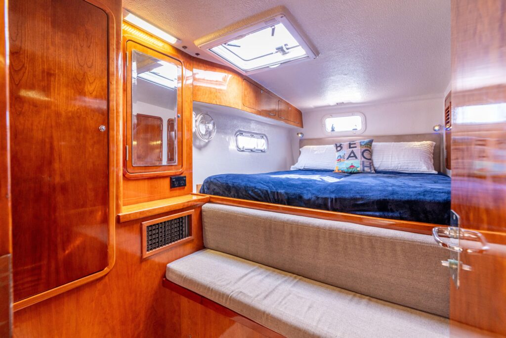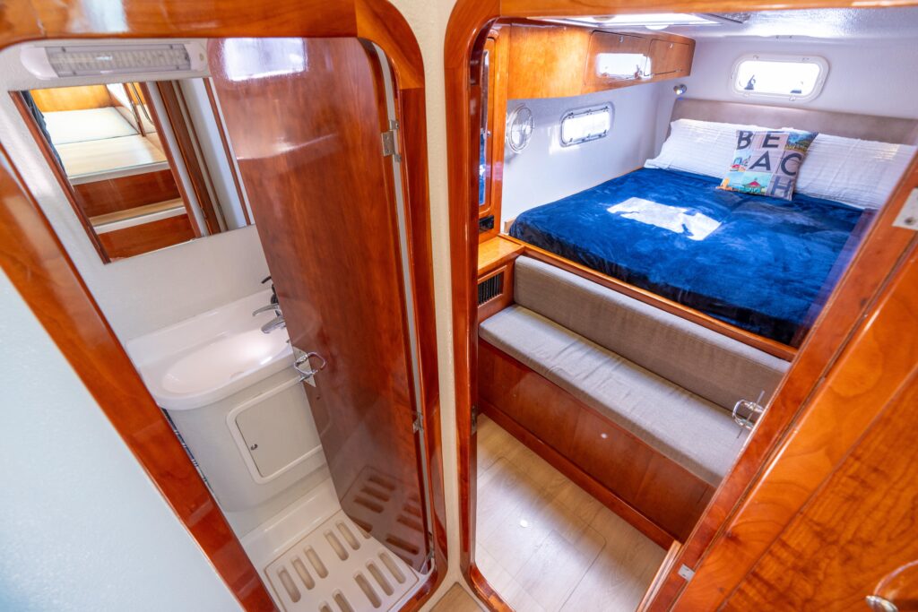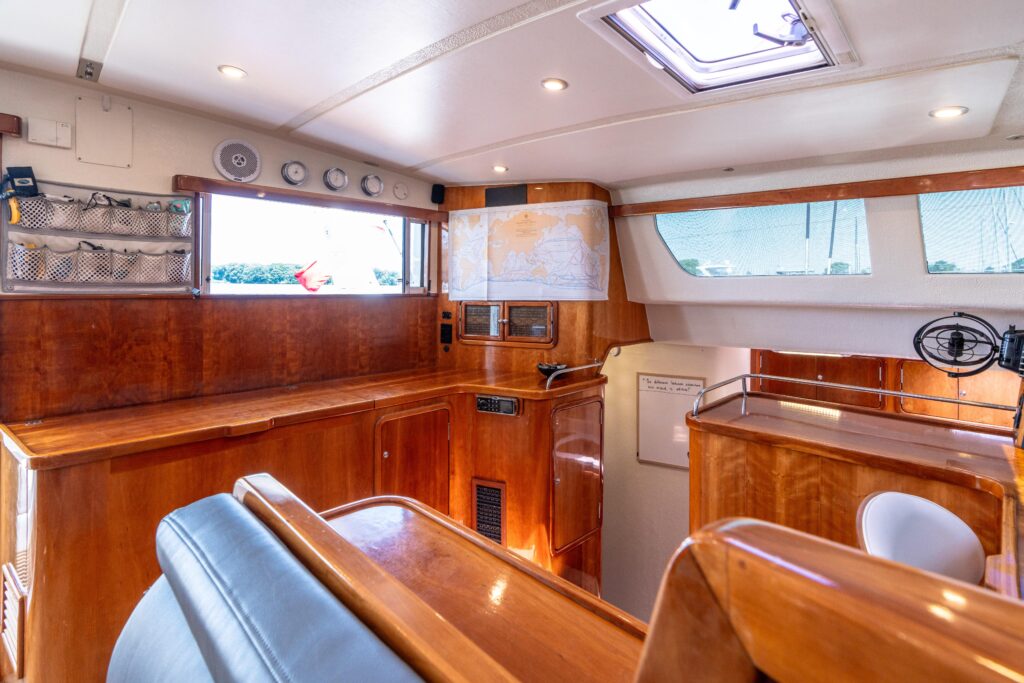 Atlas boasts high tankage with ~230 gallons of fuel and ~360 gallons of water, vast storage, and a protected center-cockpit helm that is ideal for shorthanded sailing. Her systems and layout are optimized for autonomy and comfort, whether on passage or at anchor.