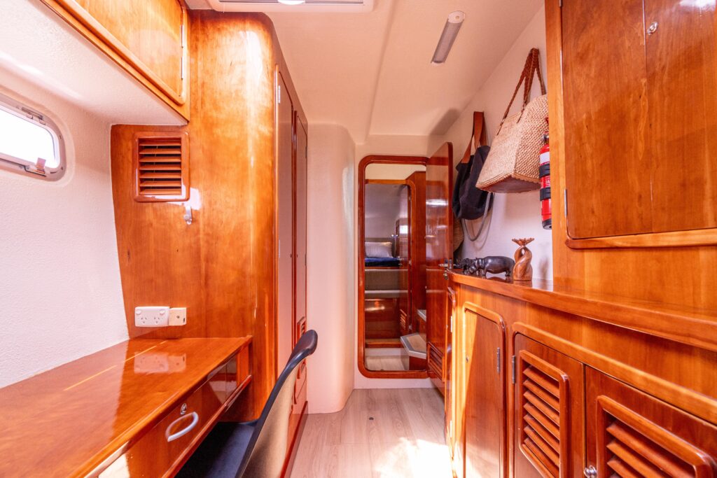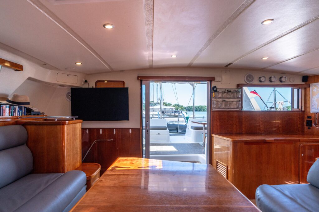 Atlas features a 4-cabin, 3-head, galley-down layout finished in elegant cherry wood, which was fully refinished in 2019. Like all St. Francis 50s, shes a semi-custom build constructed using vacuum-infused vinylester/epoxy resin and Corecell foam core, with CE Category A (Ocean) certification. The build quality, attention to detail, and structural integrity set her apart from production catamarans in this size range.
