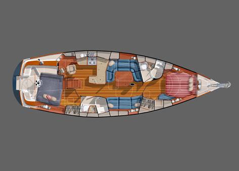 The hull design of the 4300 continues the Tartan trend of long waterline, slippery entry forward, full and flat aft quarters and carefully sculpted balanced volume to produce a yacht that is easily driven and powerful for maximum performance. Her long waterline length relative to over-all length provides a high theoretical hull speed and the full aft sections allow the 4300 to surf and extend her sailing and motoring length to provide fast and exhilarating passage making. By maintaining balanced volume in the hull, the 4300 heals predictably and evenly, unlike many extreme designs that develop bad manners under difficult conditions. Through optimized hull design the 4300 will extend your daily range, expanding the possibilities for weekend cruising and offering long daily passages offshore. Safety and comfort aboard require a thoughtfully designed deck and cockpit and as with past Tartans, the 4300 will excel in this area.Visibility, wide and uncluttered sidedecks, and a deep and secure cockpit are essential elements of the 4300. Additionally, the Tartan 4300 deck offers an abundance of ventilation through 14 opening portlights, 6 deck hatches and 4 dorade vents.A hardtop dodger is available, with the traveler mounted clear of the cockpit and coachroof. 27? lifelines, extended bow and stern rails and handrails with in easy reach offer on deck security and comfort. A convenient walk through transom with platform provides access for swimming or for stern boarding from a dinghy. The 4300 is fit with the best hardware from the best suppliers in the industry to assure that lines run free and easy. Trimmed with just the right amount of exterior teak, the 4300 is classic without being a burdensome taskmaster.