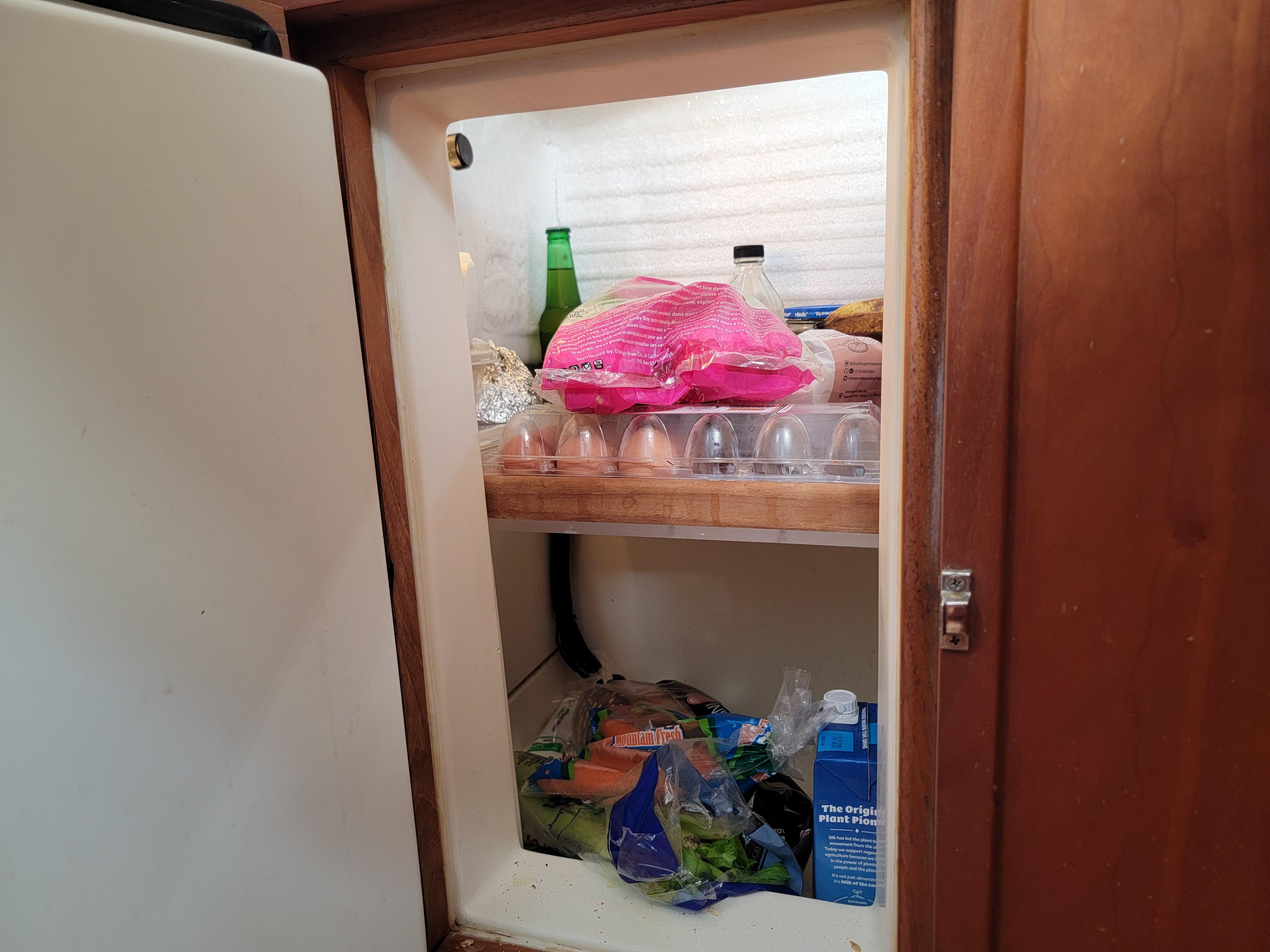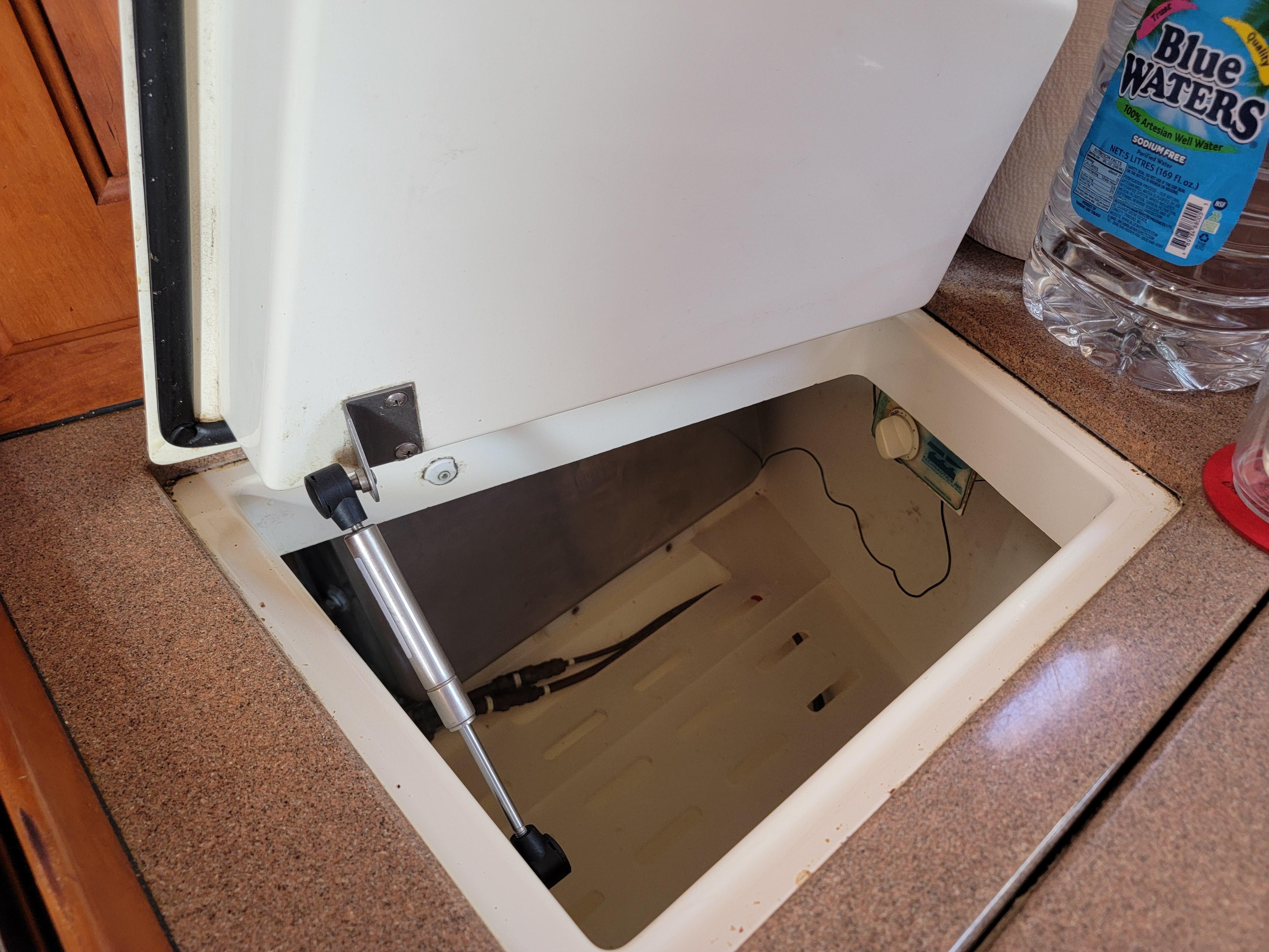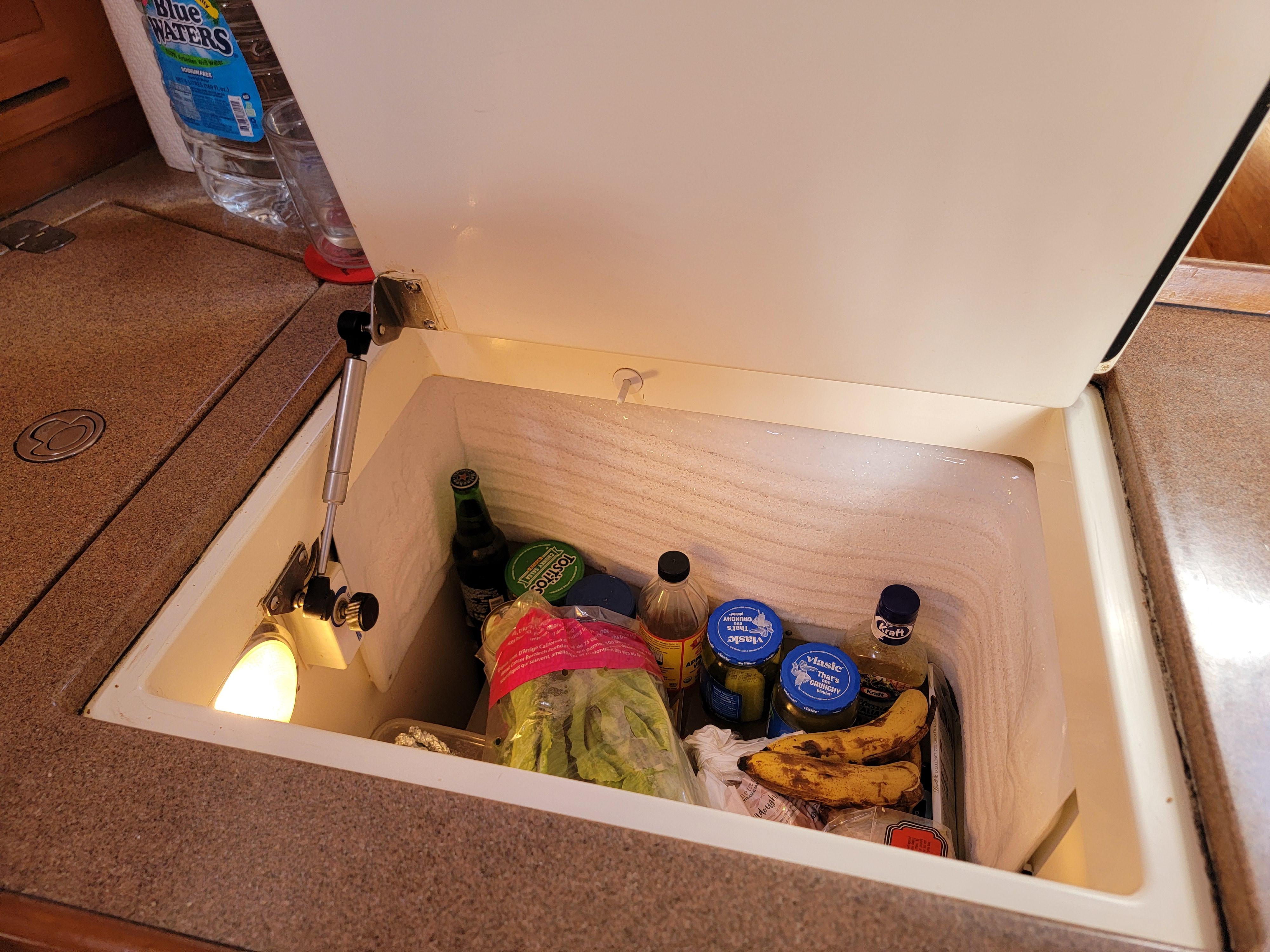 The U-shaped galley is one of the most efficient I have ever seen. The solid molded double sink is on an island-ish cabinet facing the aisle where you have access to both sides. It also has a versatile pull-out faucet, handy for rinsing dishes. The fridge is a convenient top loading AND front-loading model. There is also a separate top loading efficient freezer. There is plenty of counter space, cabinets and ventilation. I love this galley!