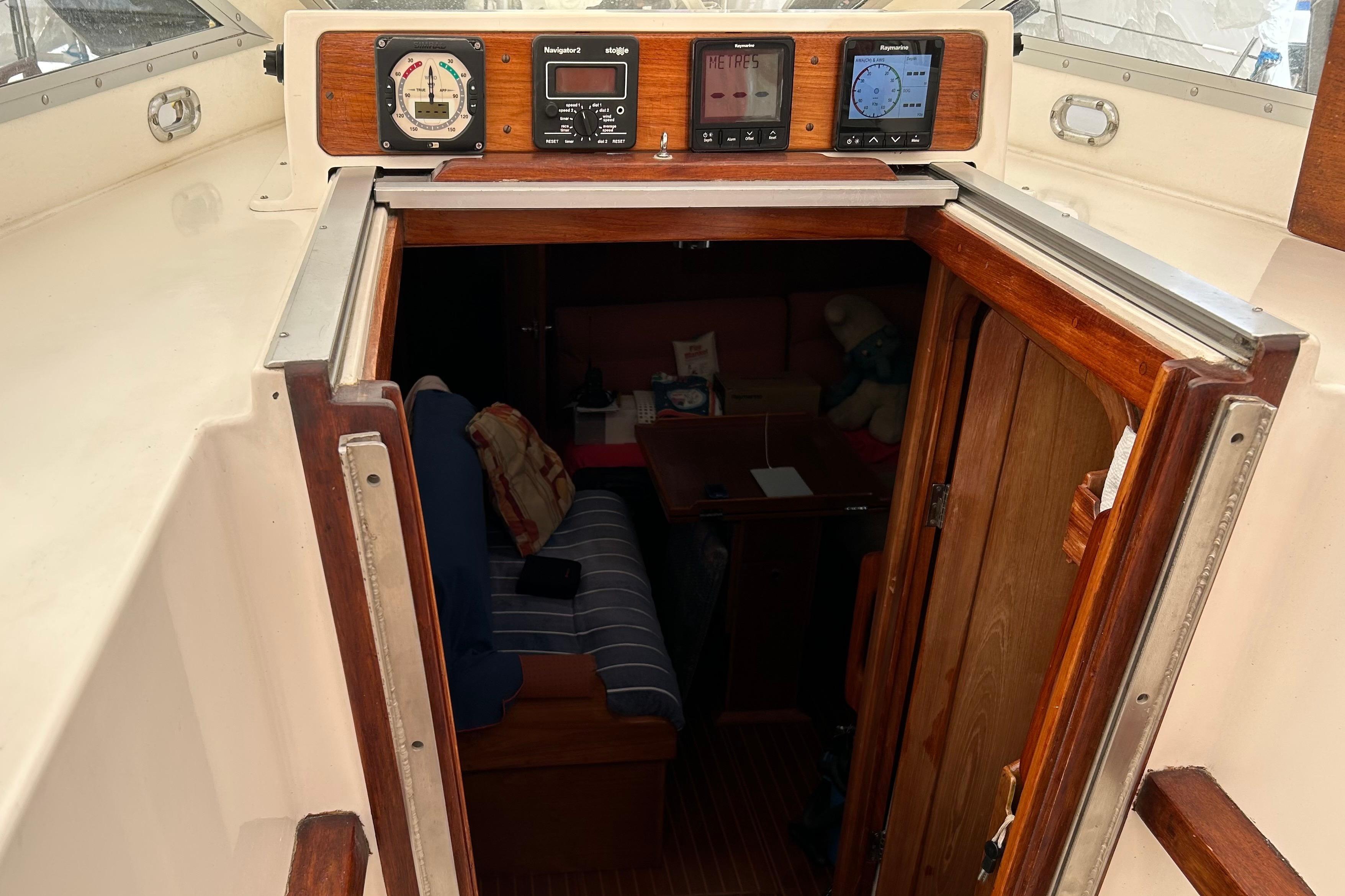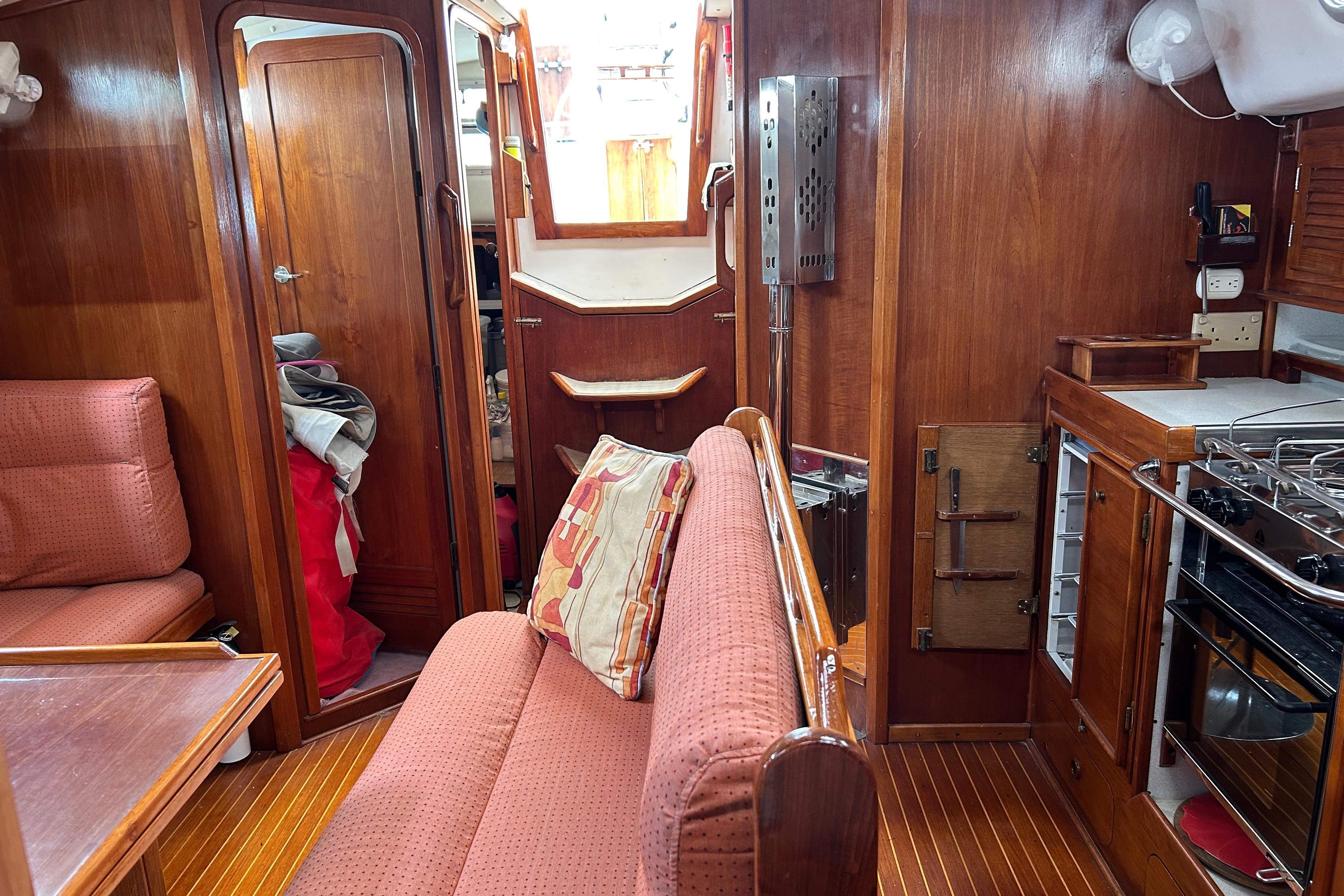 workshop. She now boasts a large forward master cabin, a double cabin on the aft port side and a sea berth in the