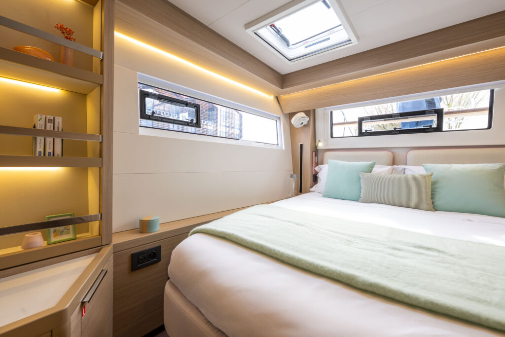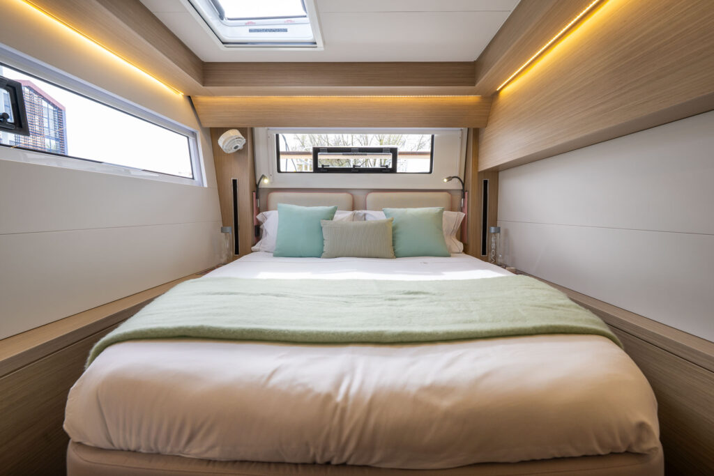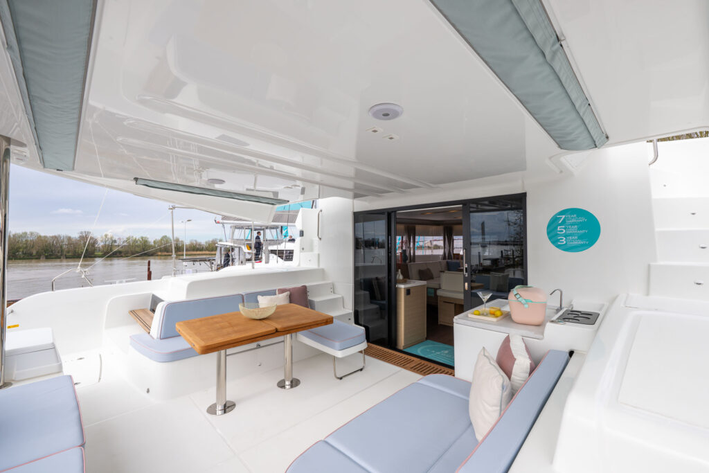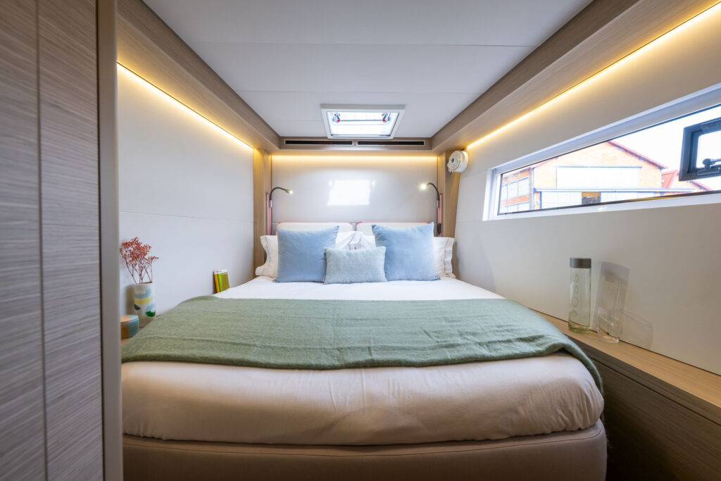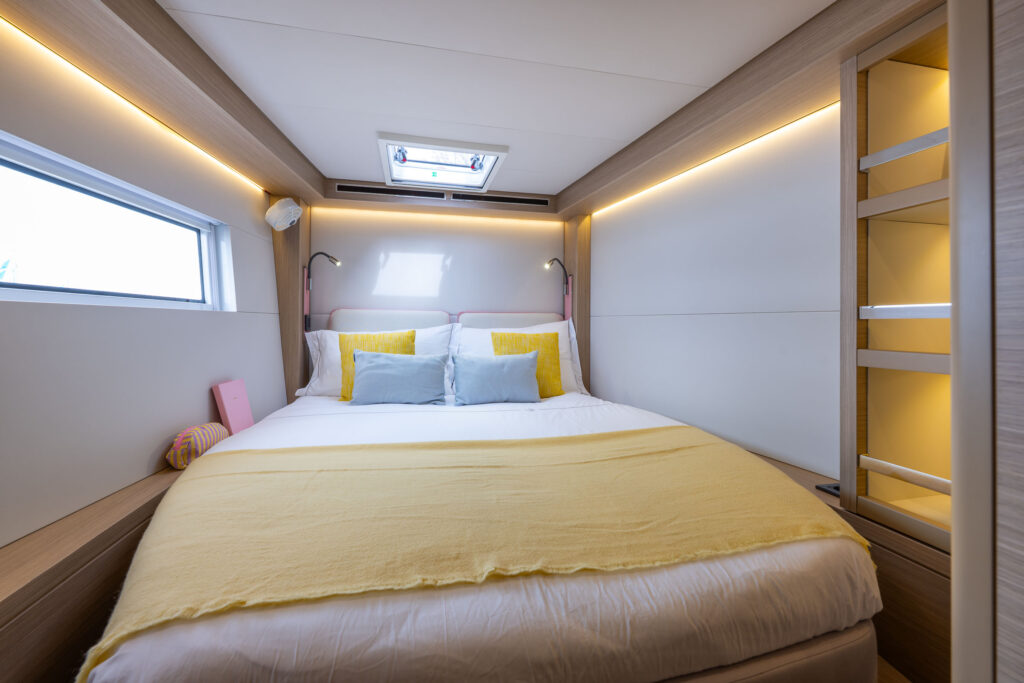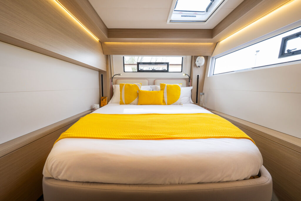 Unveil the upgraded version of your beloved catamaran, showcasing fresh design touches and a completely reimagined forward living space.