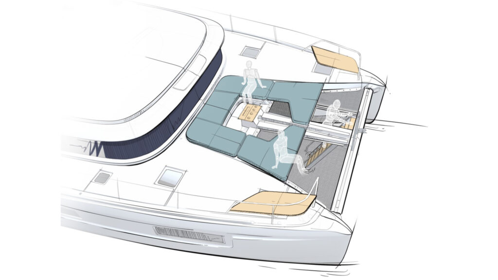 The new lounge area offers additional sun pads and a secure, redesigned access to the sea, complete with a forward swim ladder for the perfect anchoring experiences ahead.
