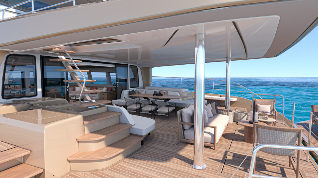 Each detail is designed to be personalized. The EIGHTY 3 features the spirit of a motor yacht with the distinctive personality of a Lagoon, with bespoke choices for furnishings, upholstery, and accessories.