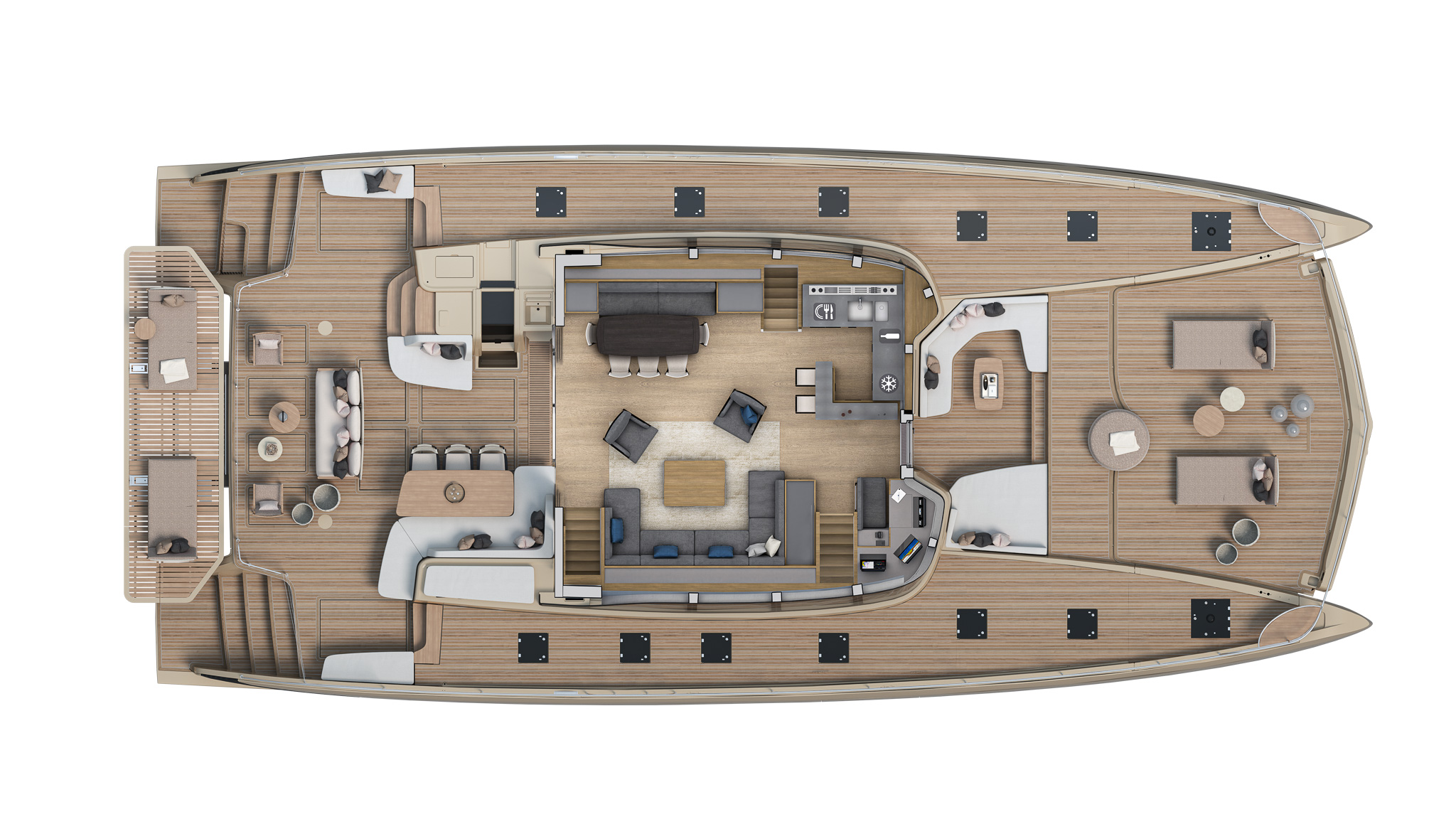 Inspired by contemporary architectural codes, each living space on board invites you to take full advantage of the natural light and breathtaking 360° ocean views.